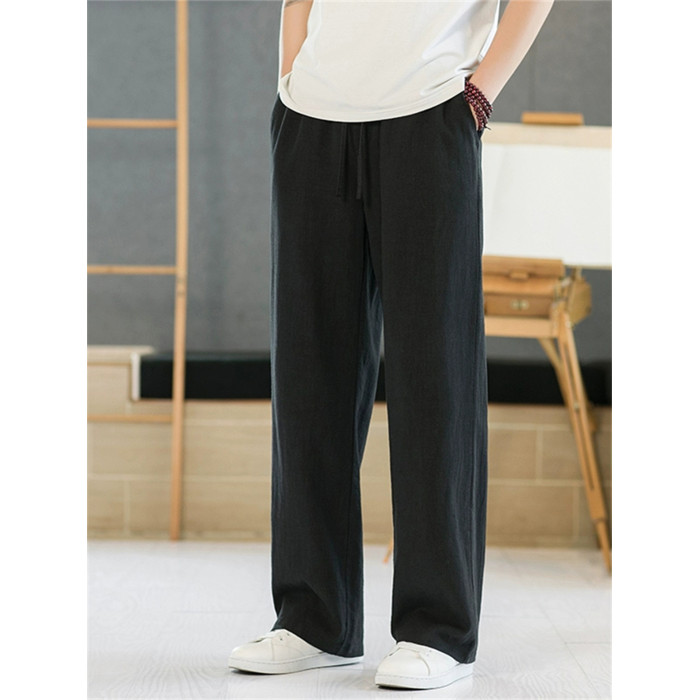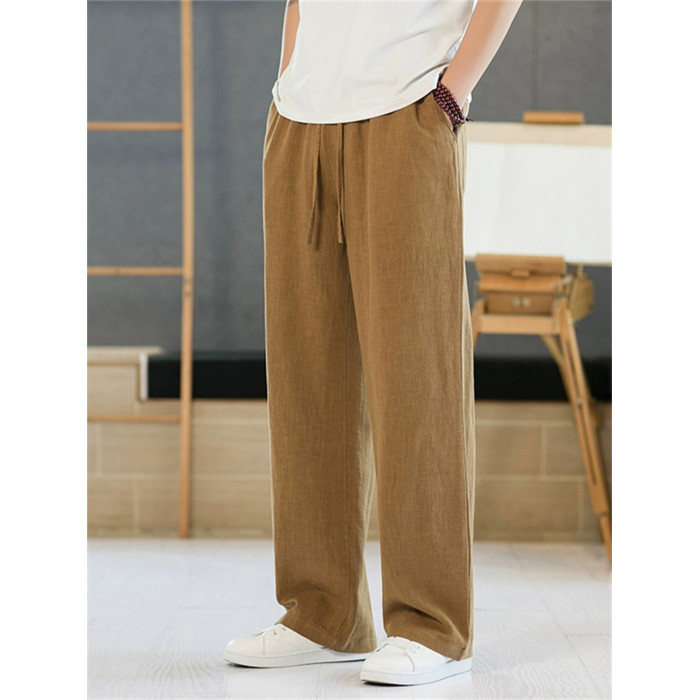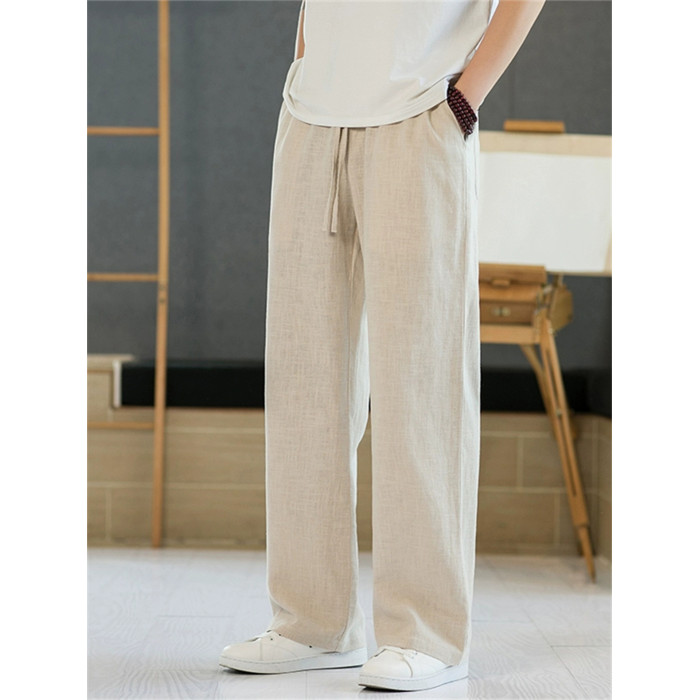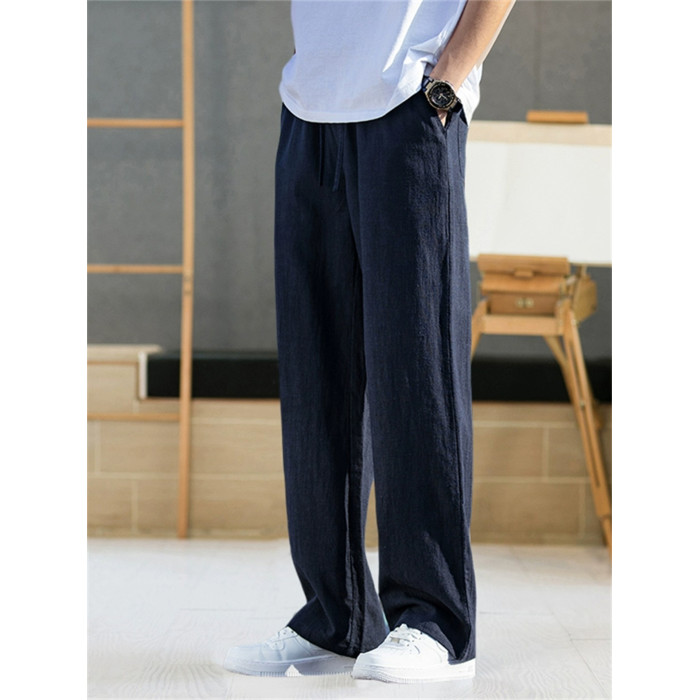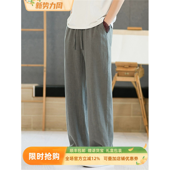 高級亞麻褲男夏薄款棉麻褲子男款夏季直筒寬松濶腿褲男士休閒長褲