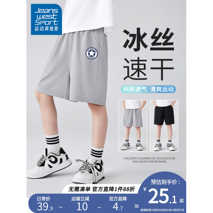 運動真維斯兒童短褲男童夏季冰絲薄款男孩速乾寬松夏褲中大童外穿