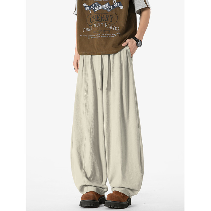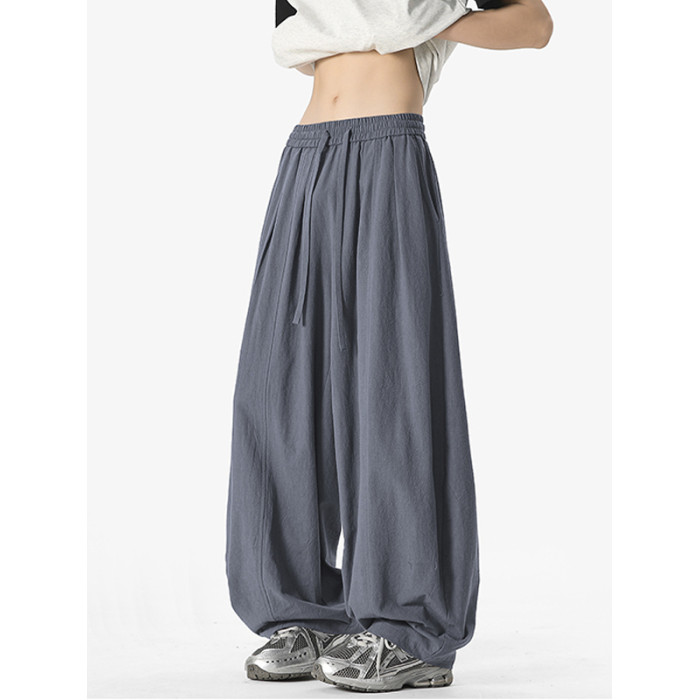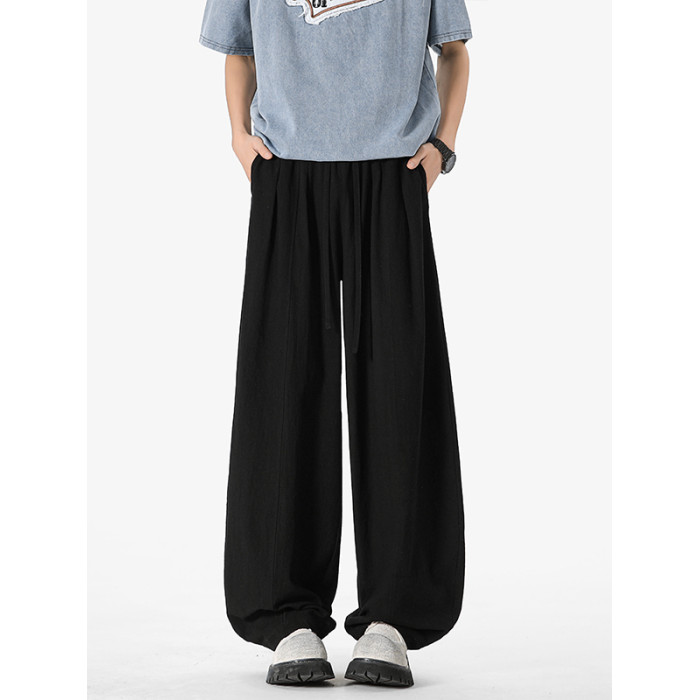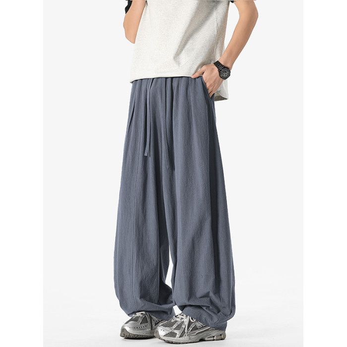 青少年亞麻休閒褲男夏季薄款2025新款寬松初中學生直筒棉麻濶腿褲