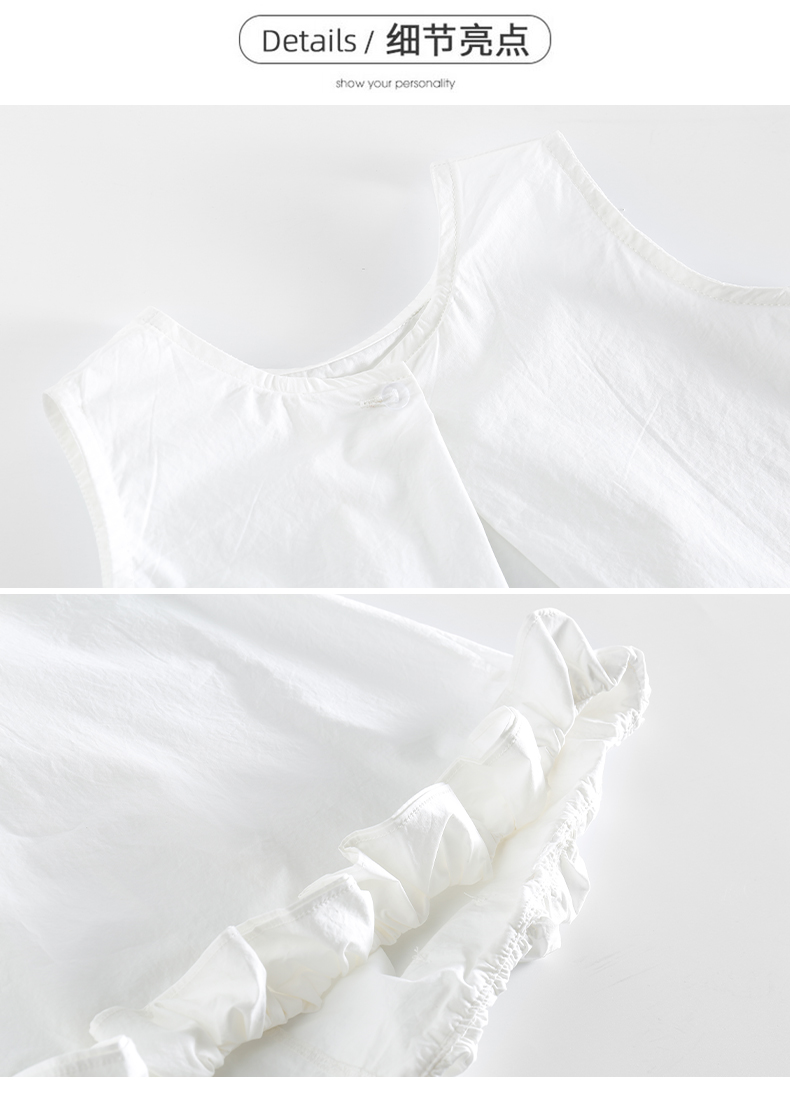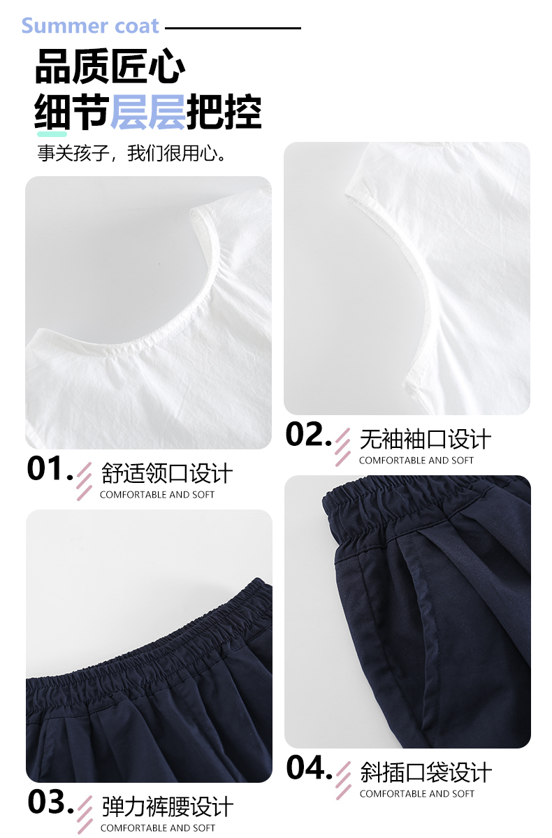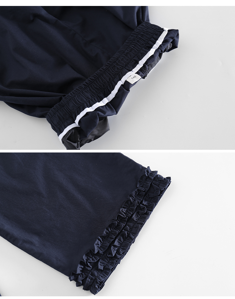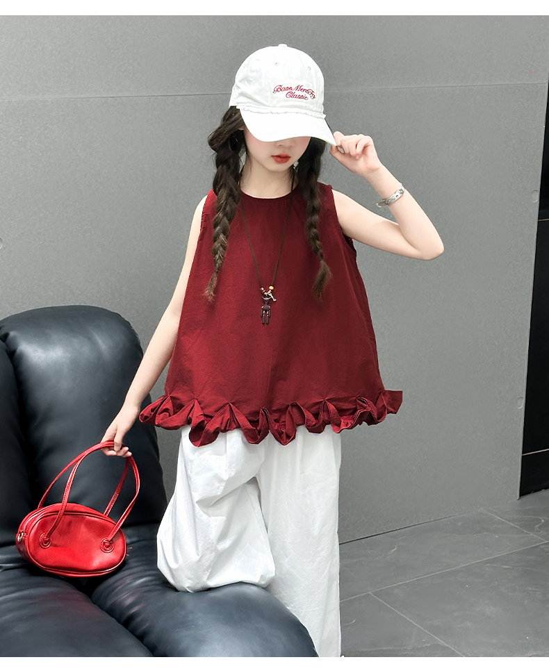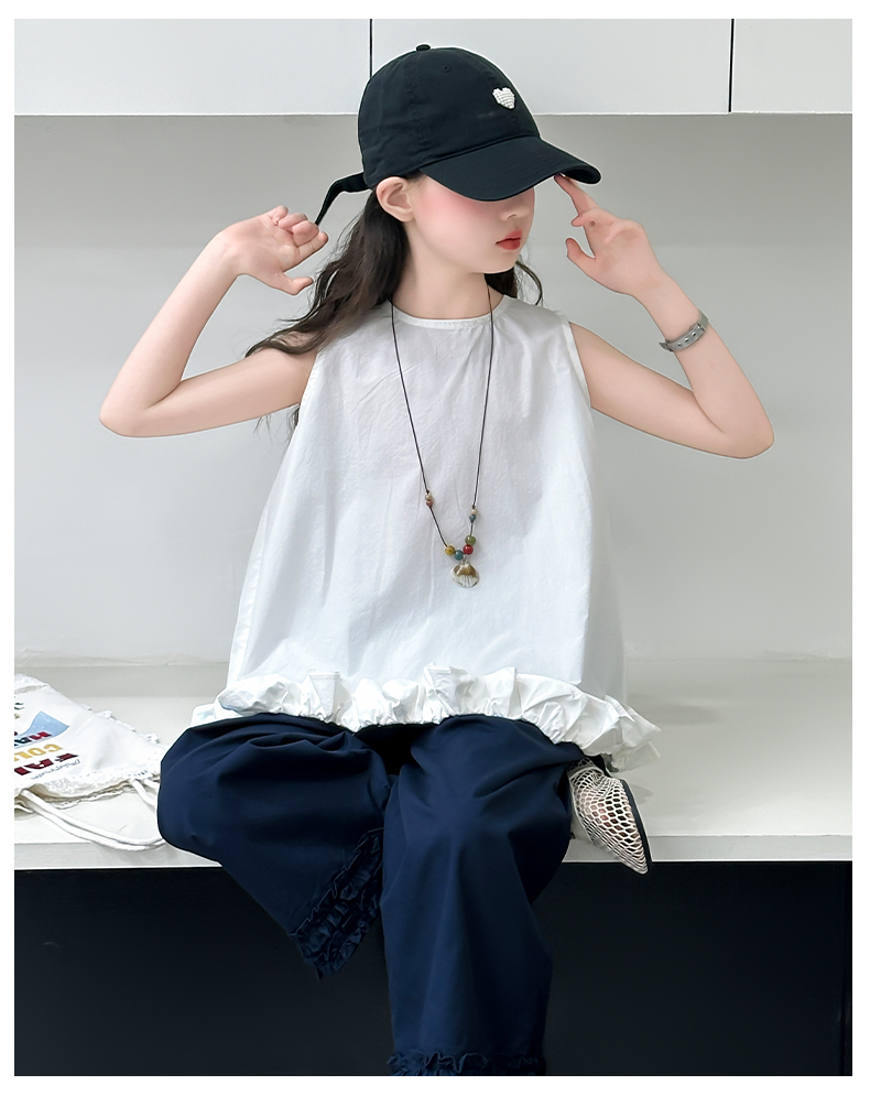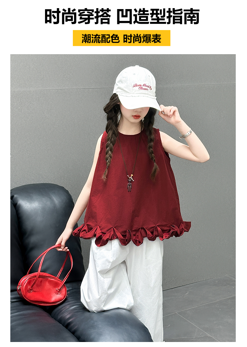 女童褲子夏季薄款洋氣寬松木耳花邊濶腿褲時髦娃娃衫九分褲兩件套