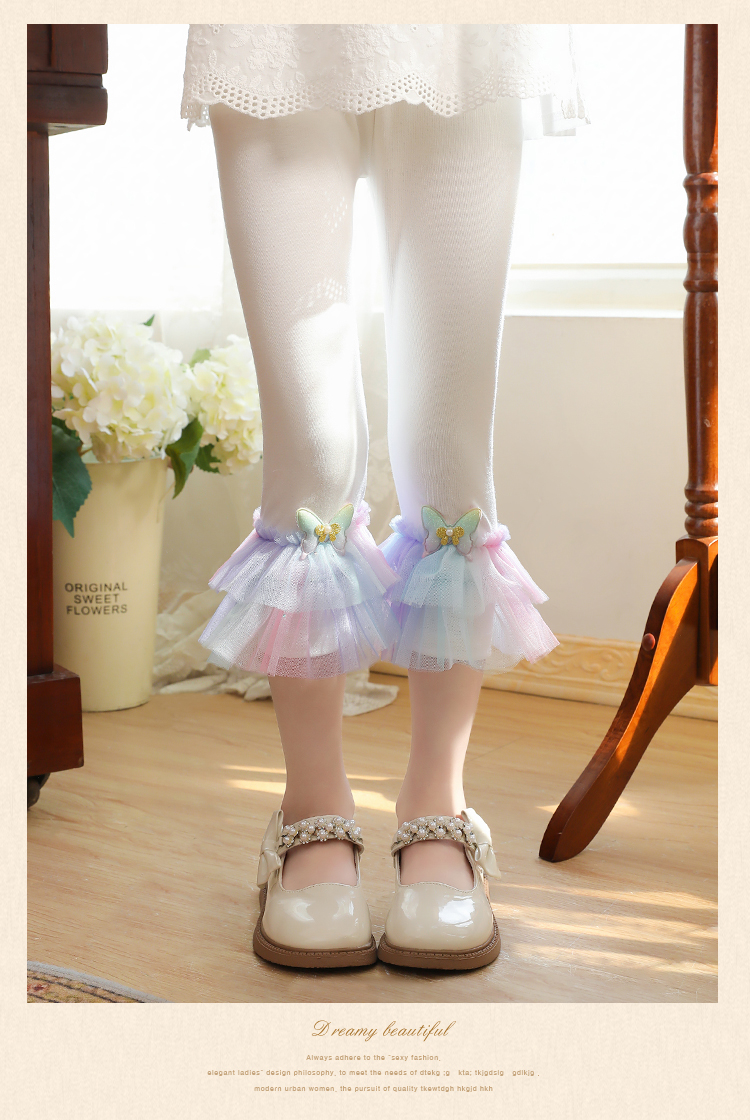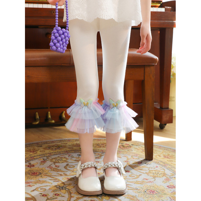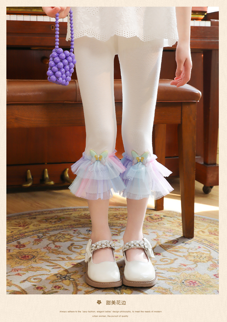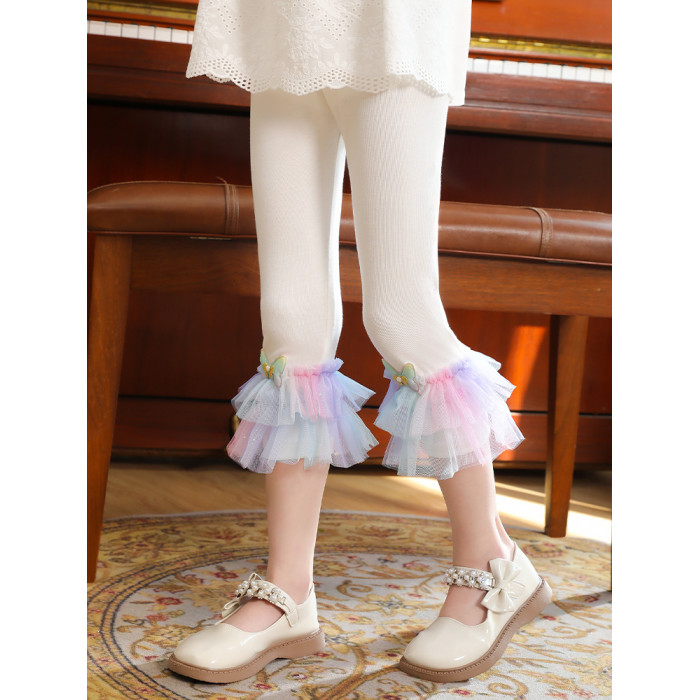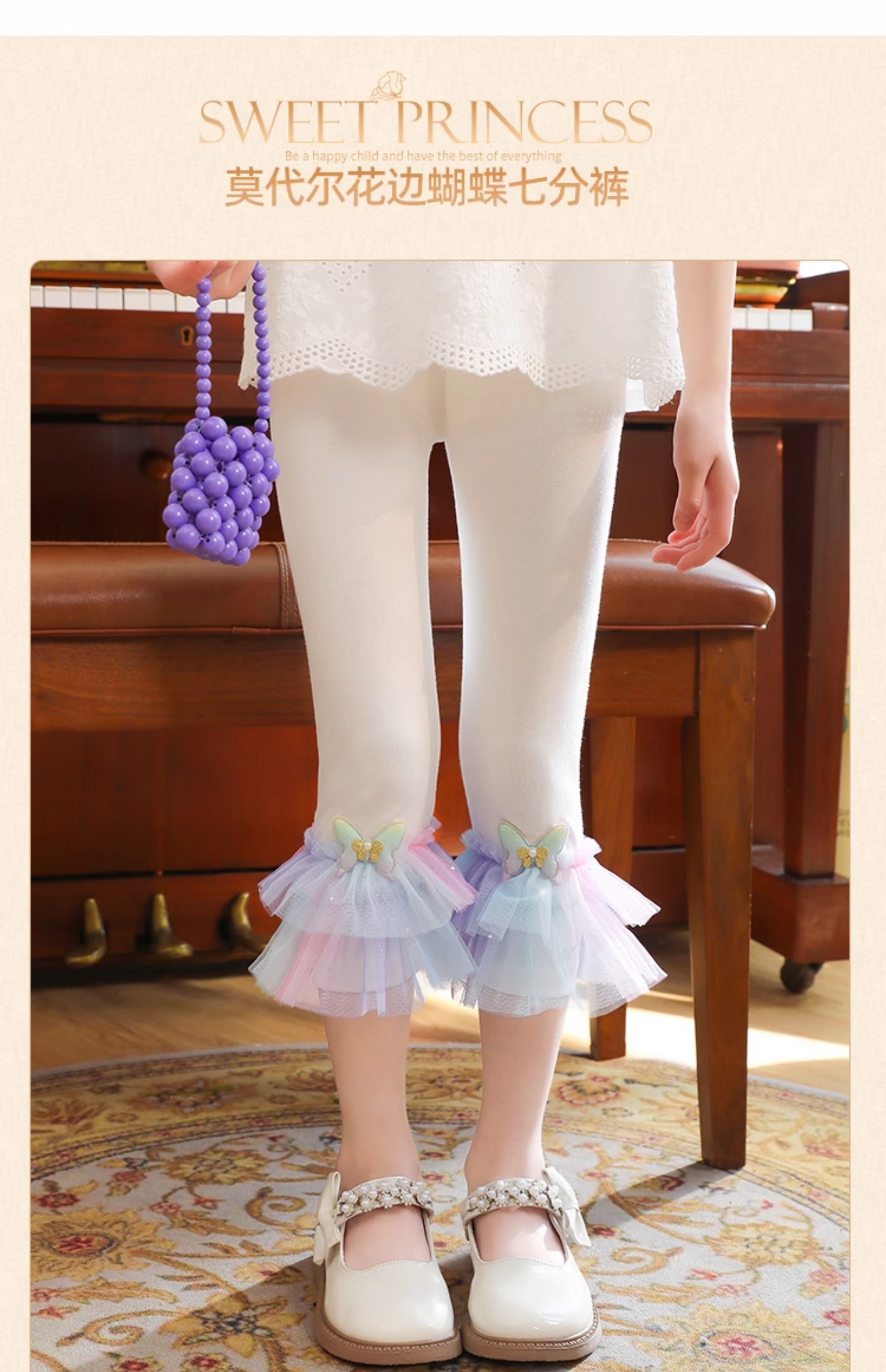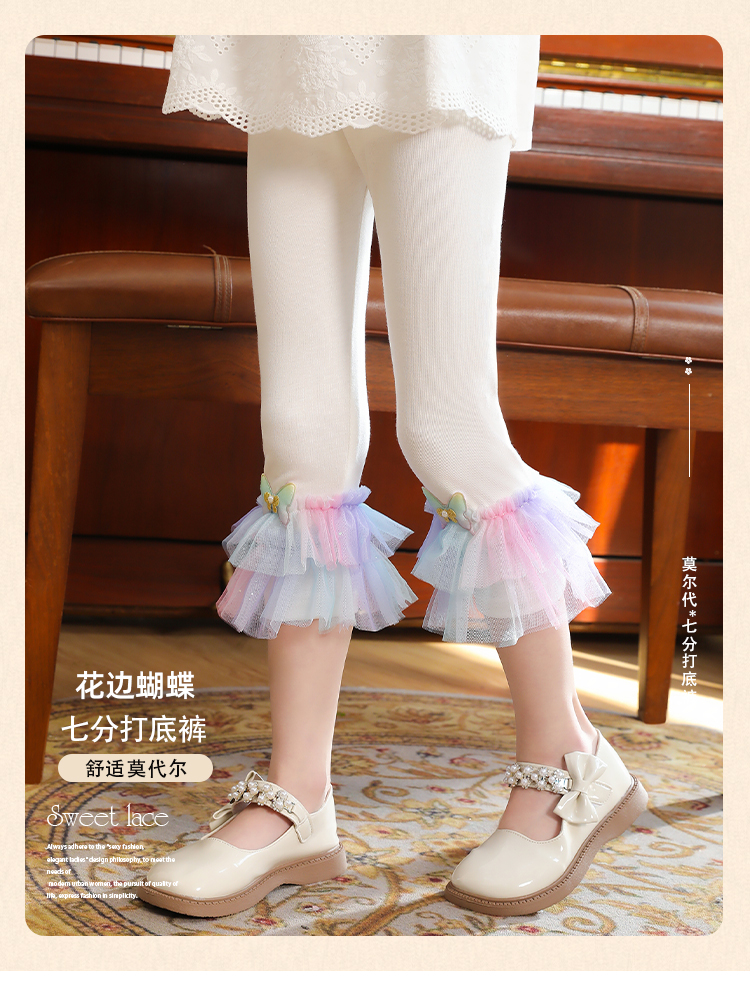 女童七分褲夏季薄款2025新款兒童洋氣彩虹蕾絲莫代爾打底褲小女孩
