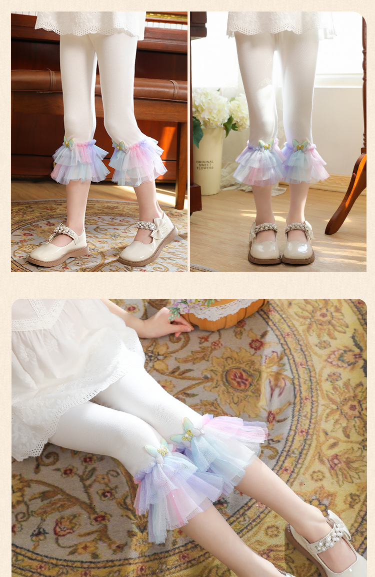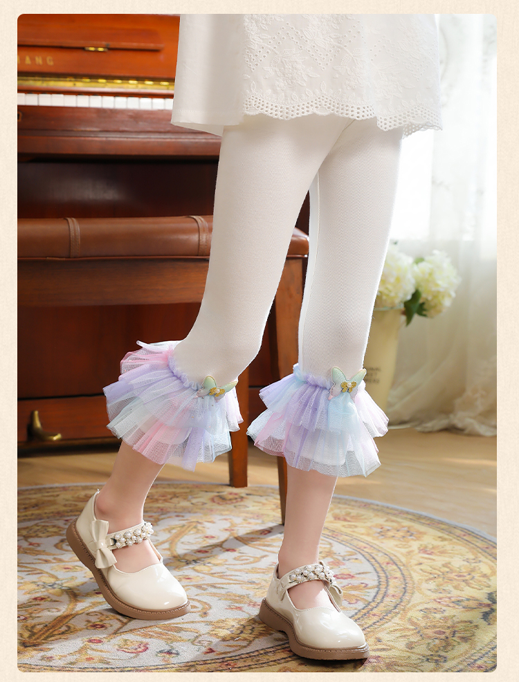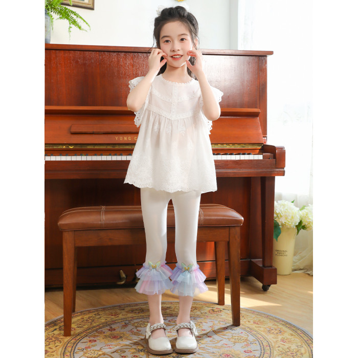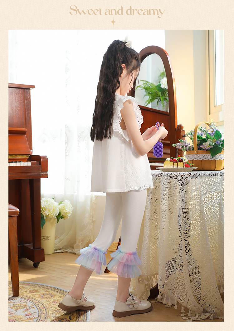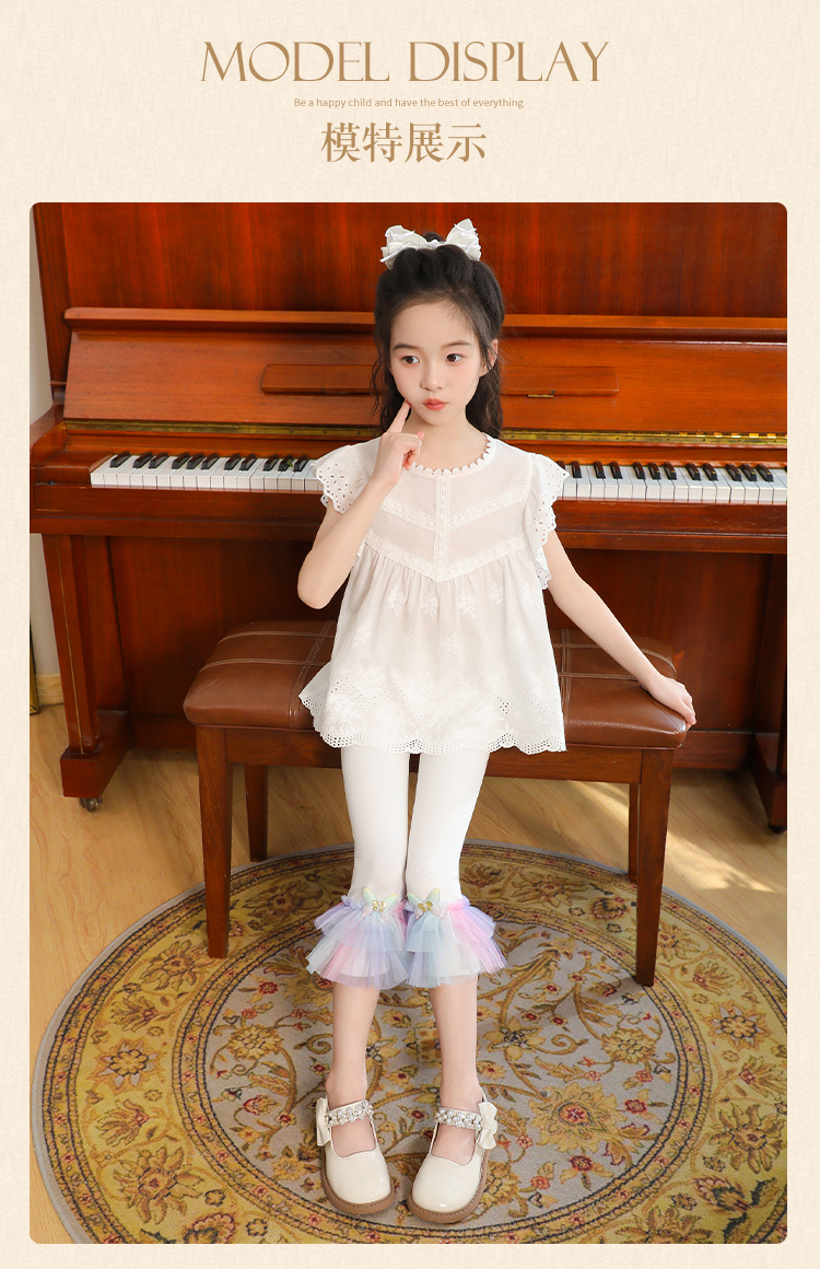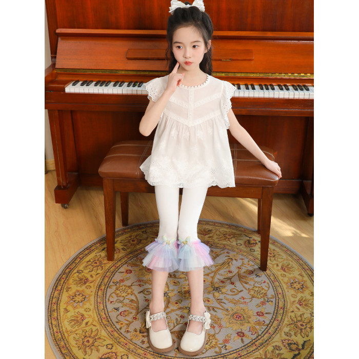 女童七分褲夏季薄款2025新款兒童洋氣彩虹蕾絲莫代爾打底褲小女孩