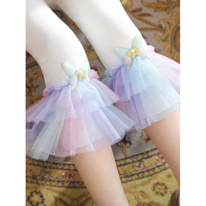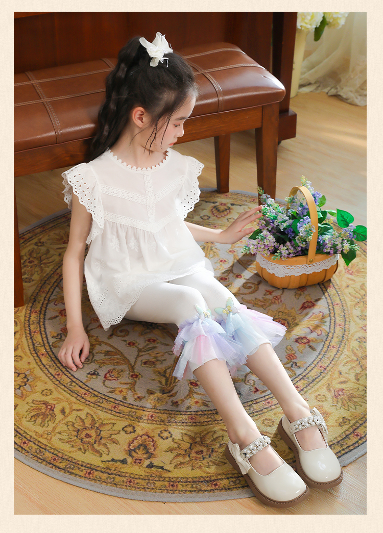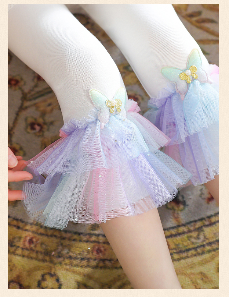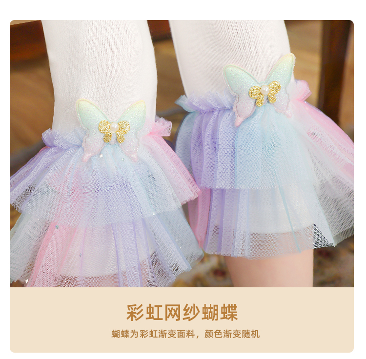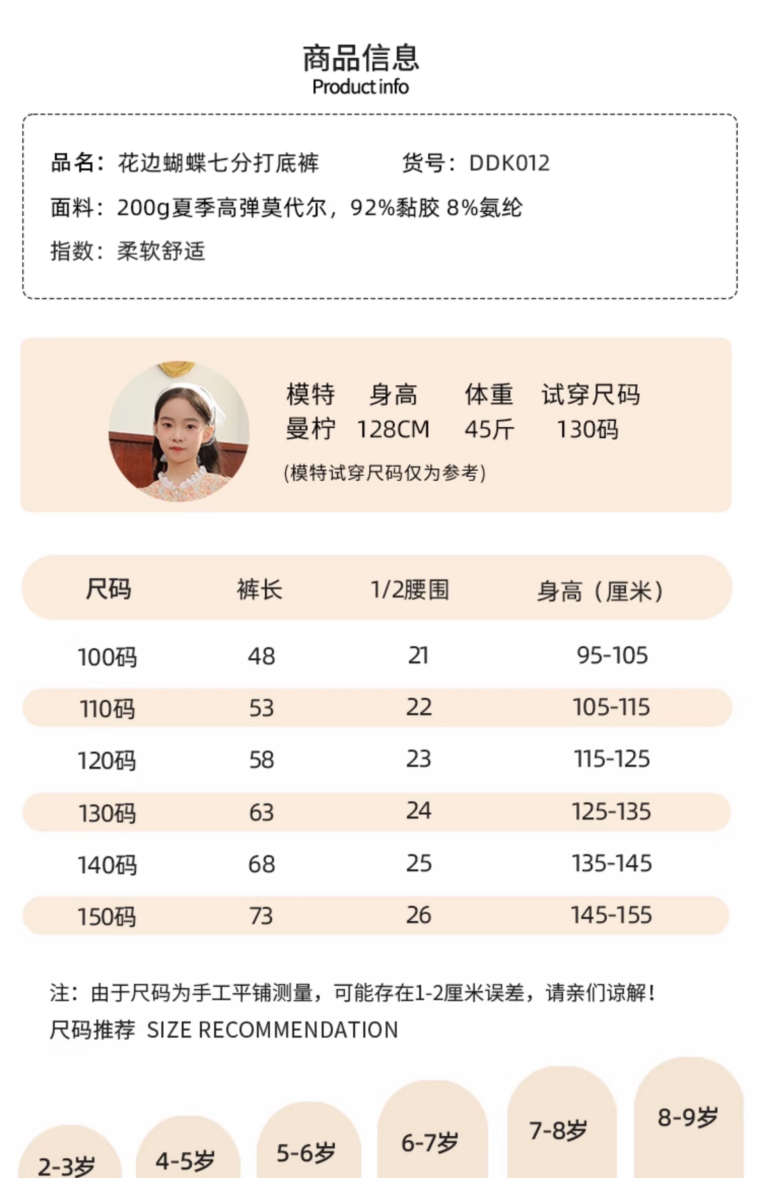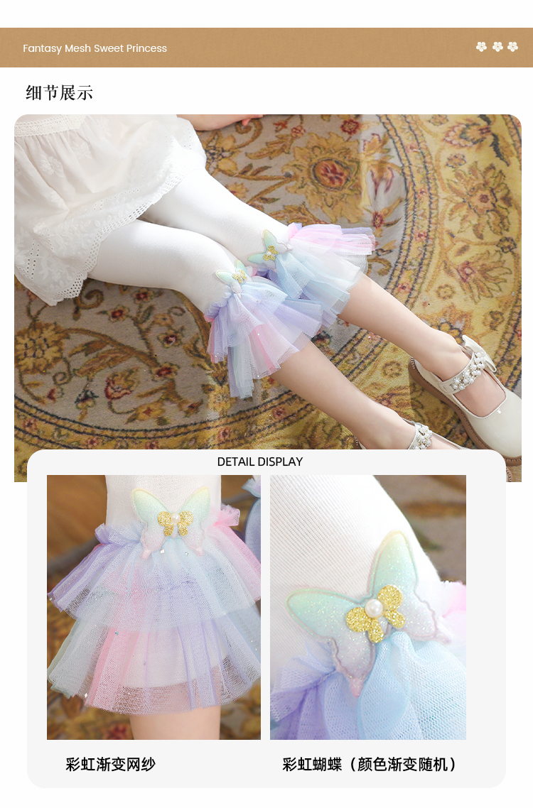女童七分褲夏季薄款2025新款兒童洋氣彩虹蕾絲莫代爾打底褲小女孩
