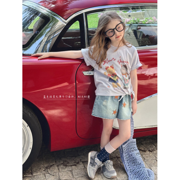 【星星】藍小爸童裝女童親子牛仔短褲夏季新款洋氣休閒寶寶褲子