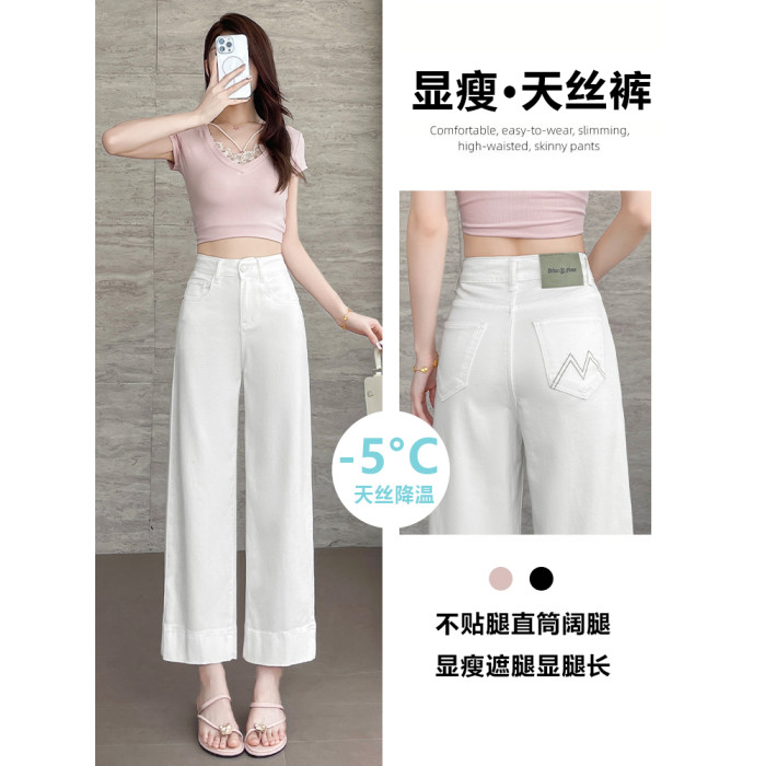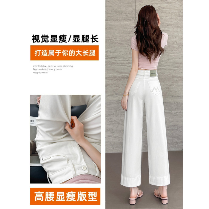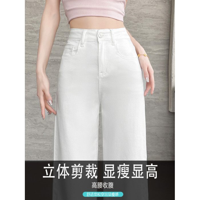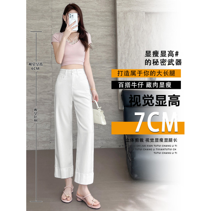 隅見丨白色直筒牛仔褲女2025新款夏季薄款超火小個子九分濶腿褲子