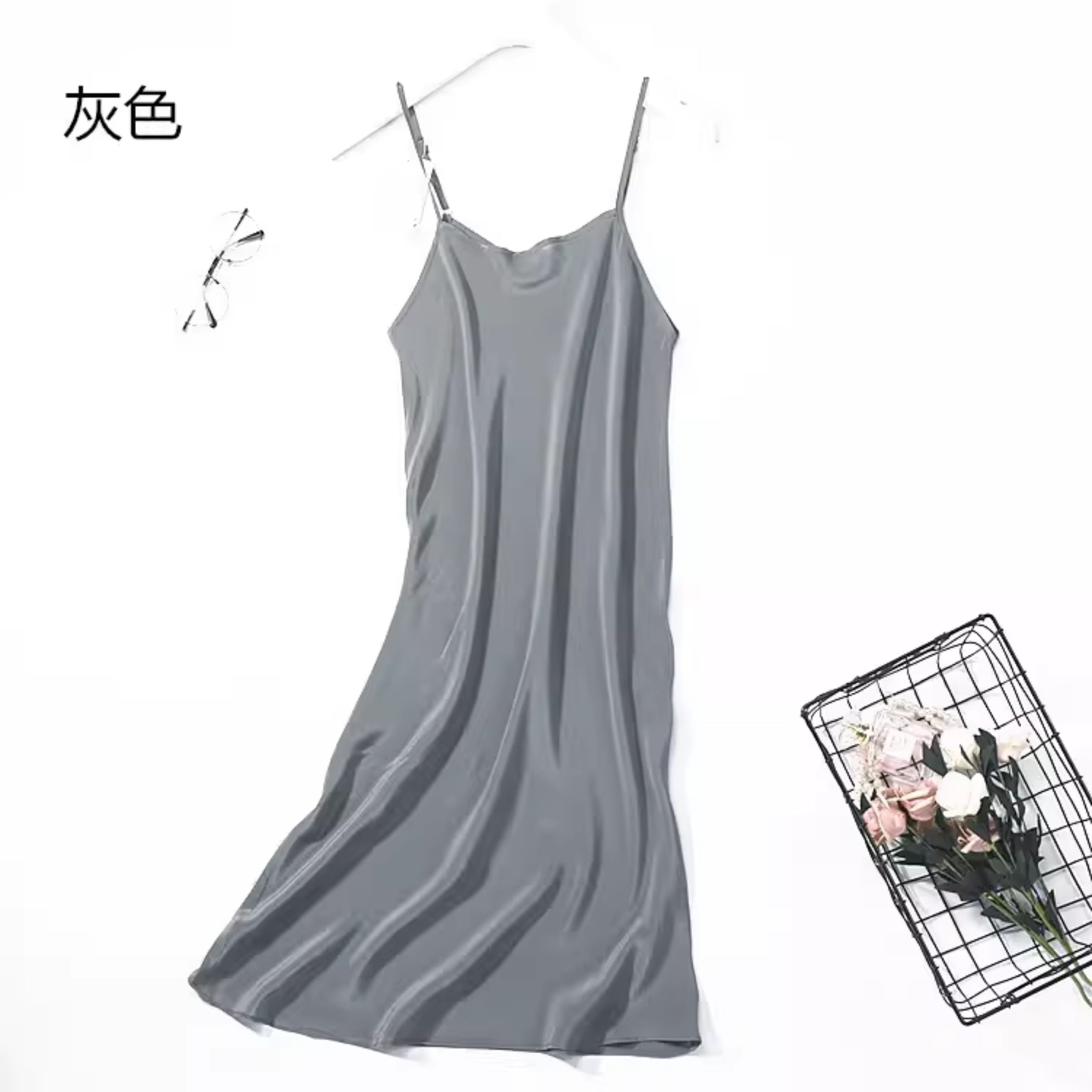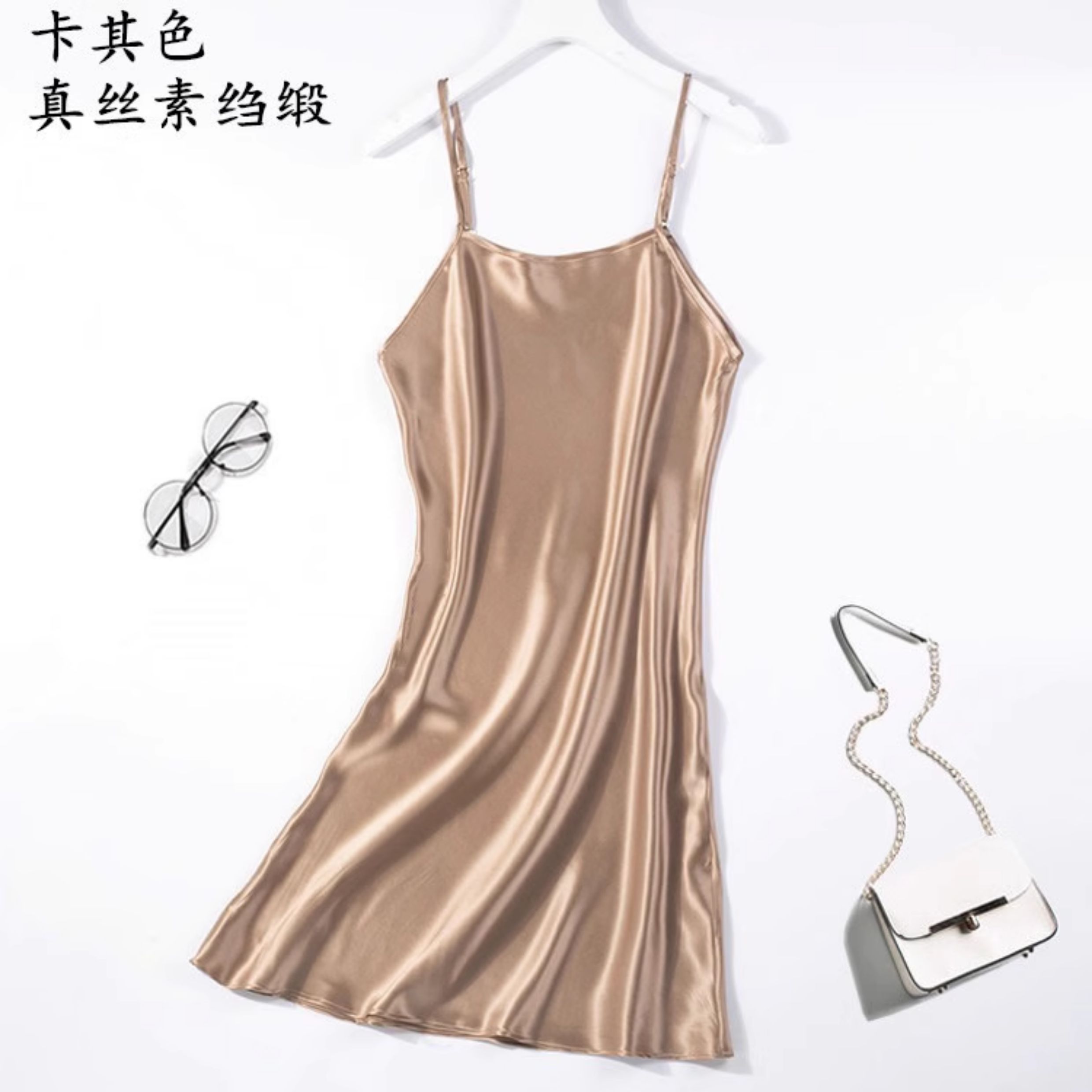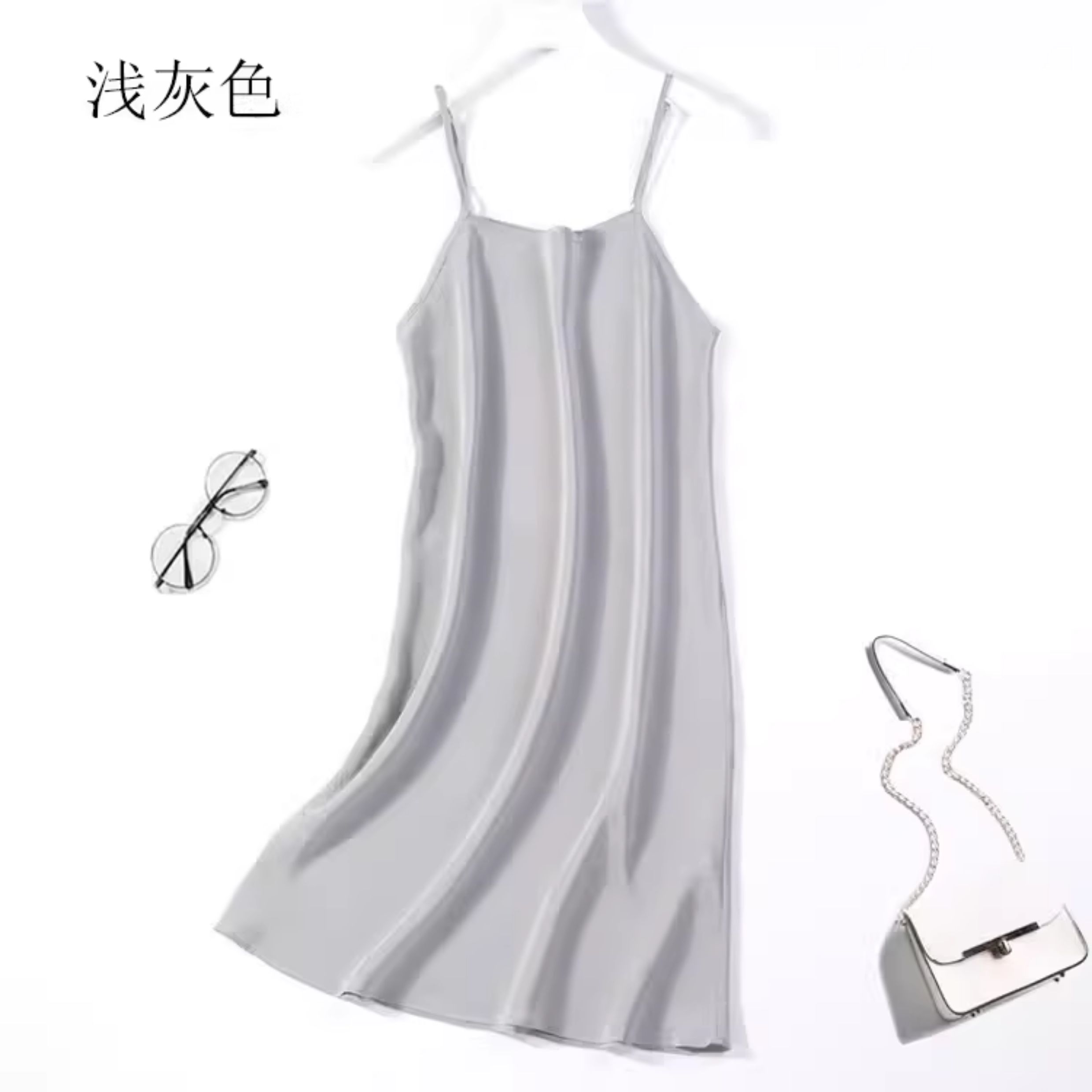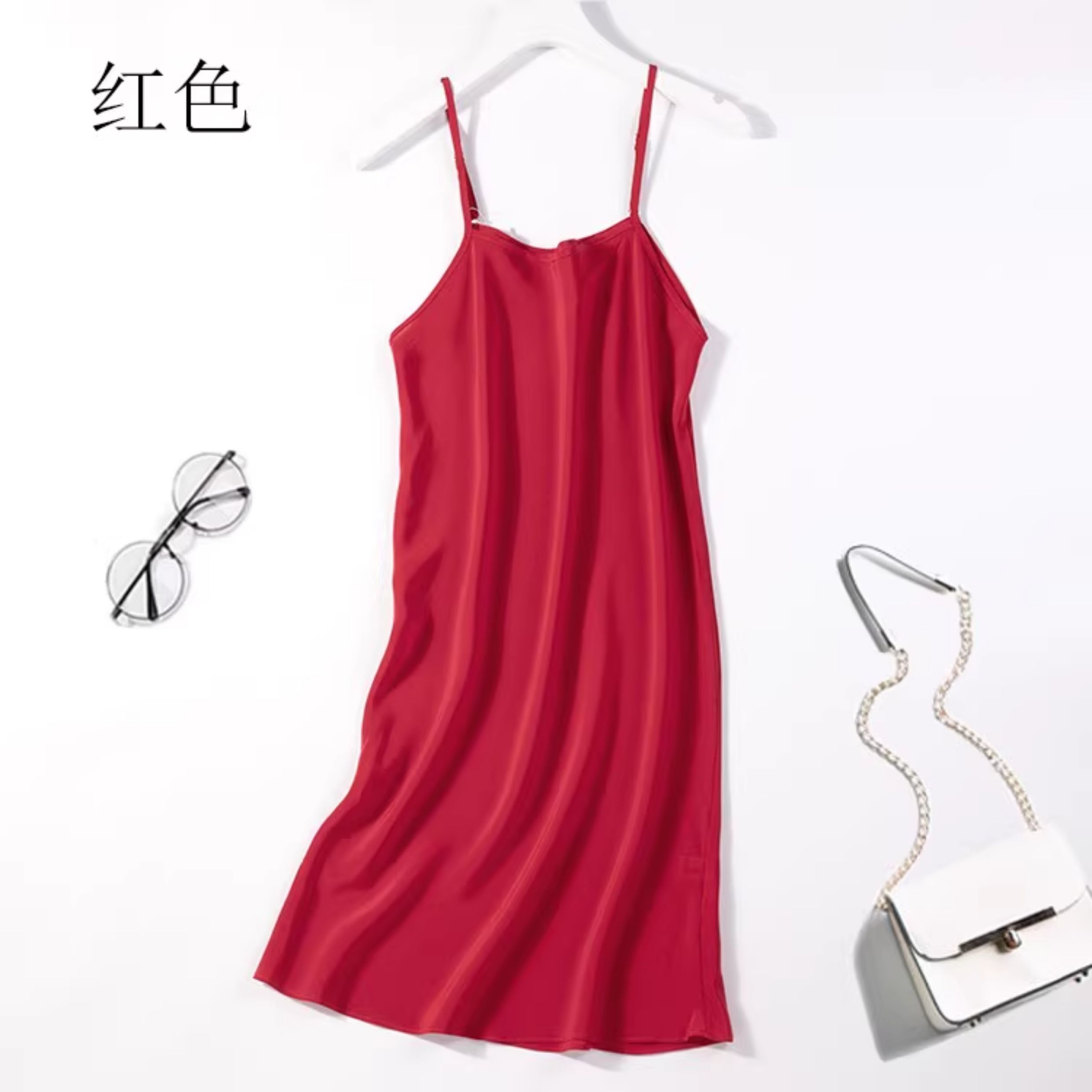 不拼接真絲吊帶裙夏季 100桑蠶絲中長打底連衣裙純色內搭防透襯裙