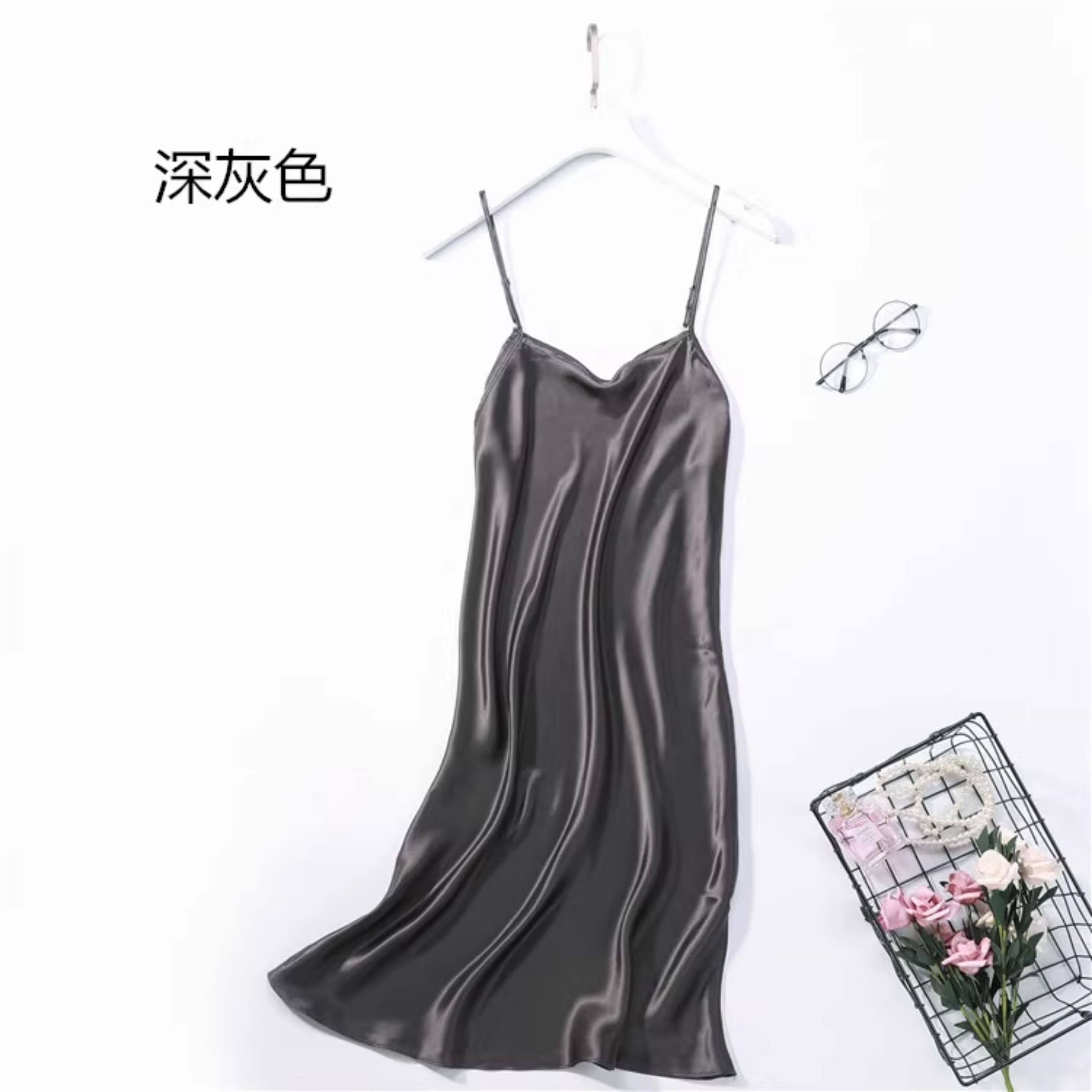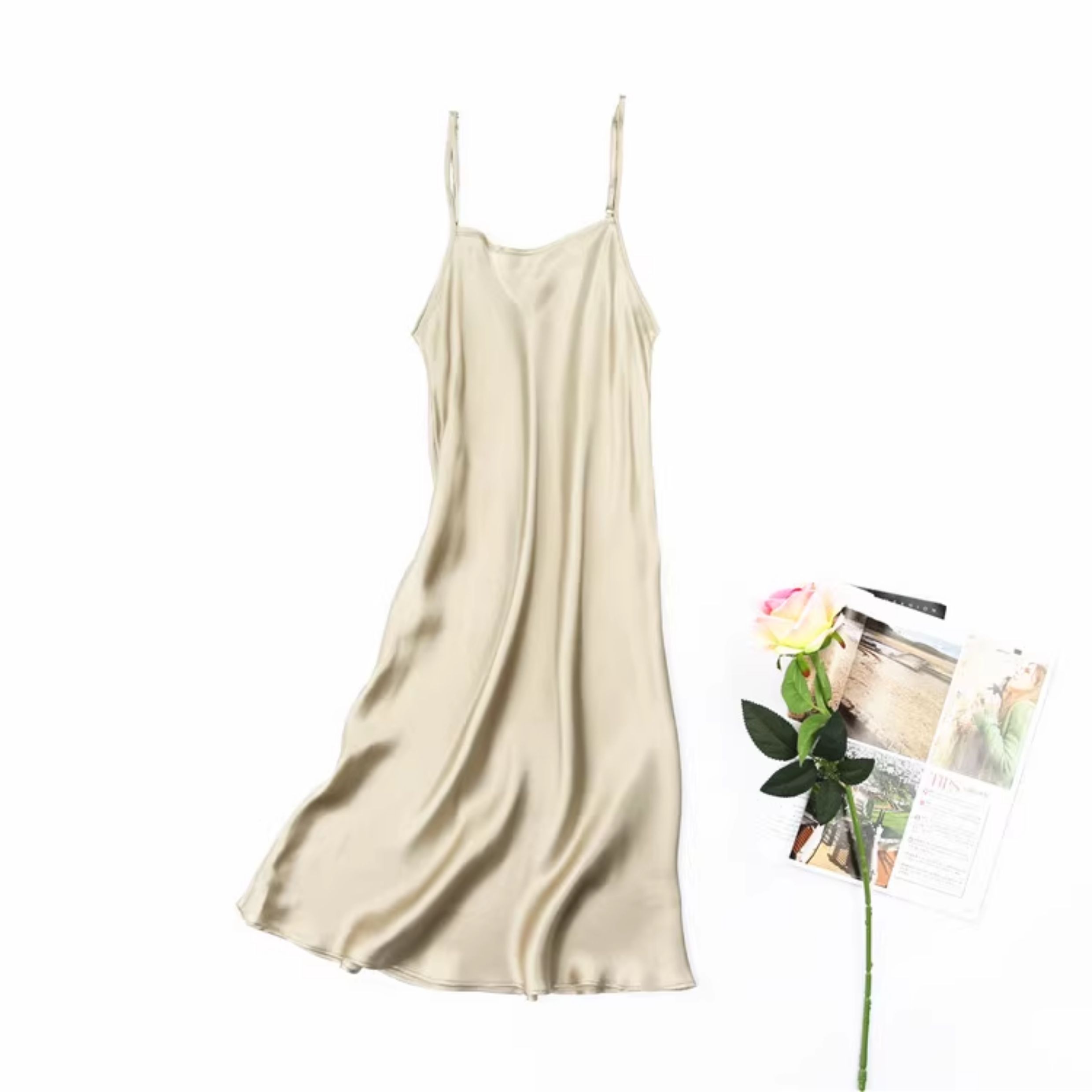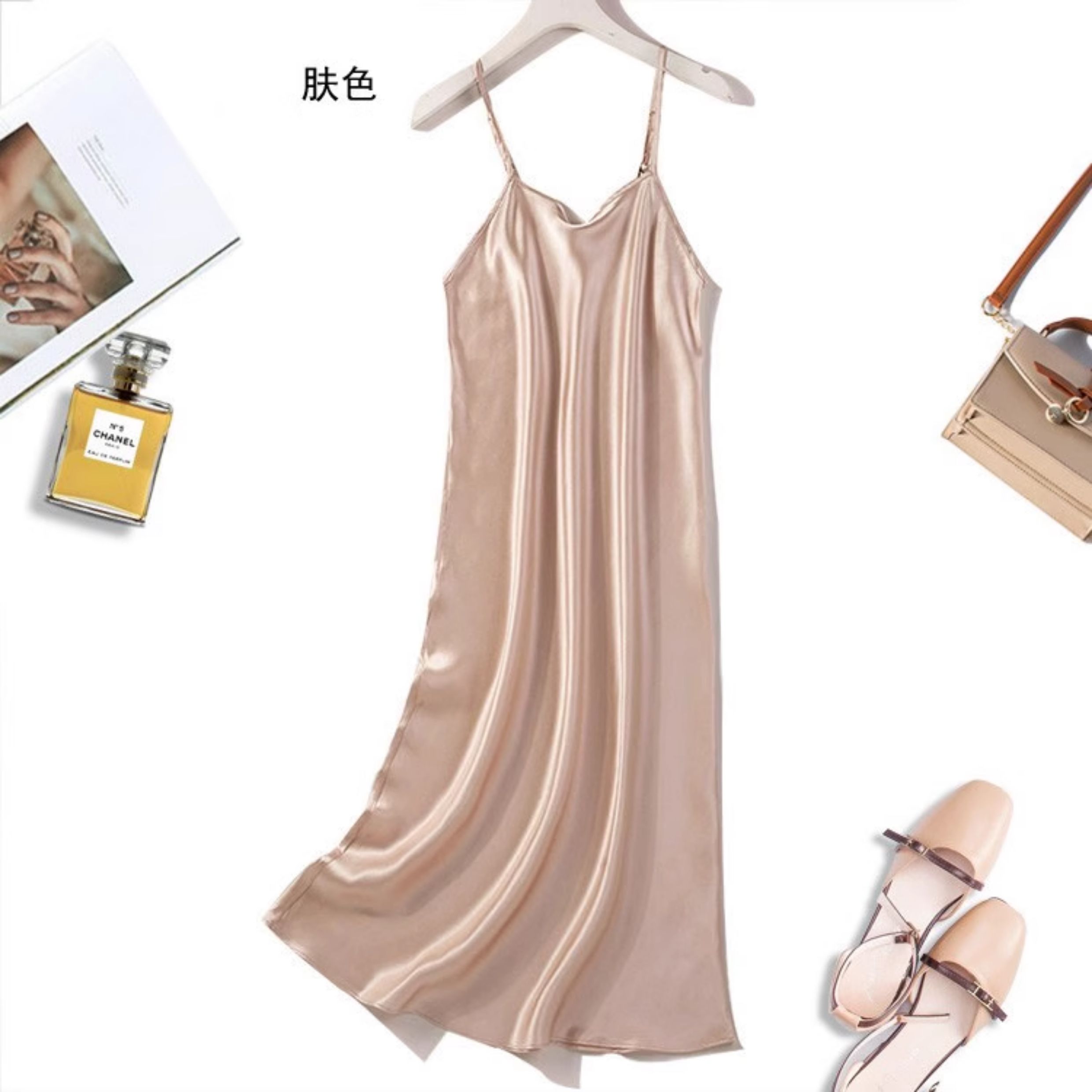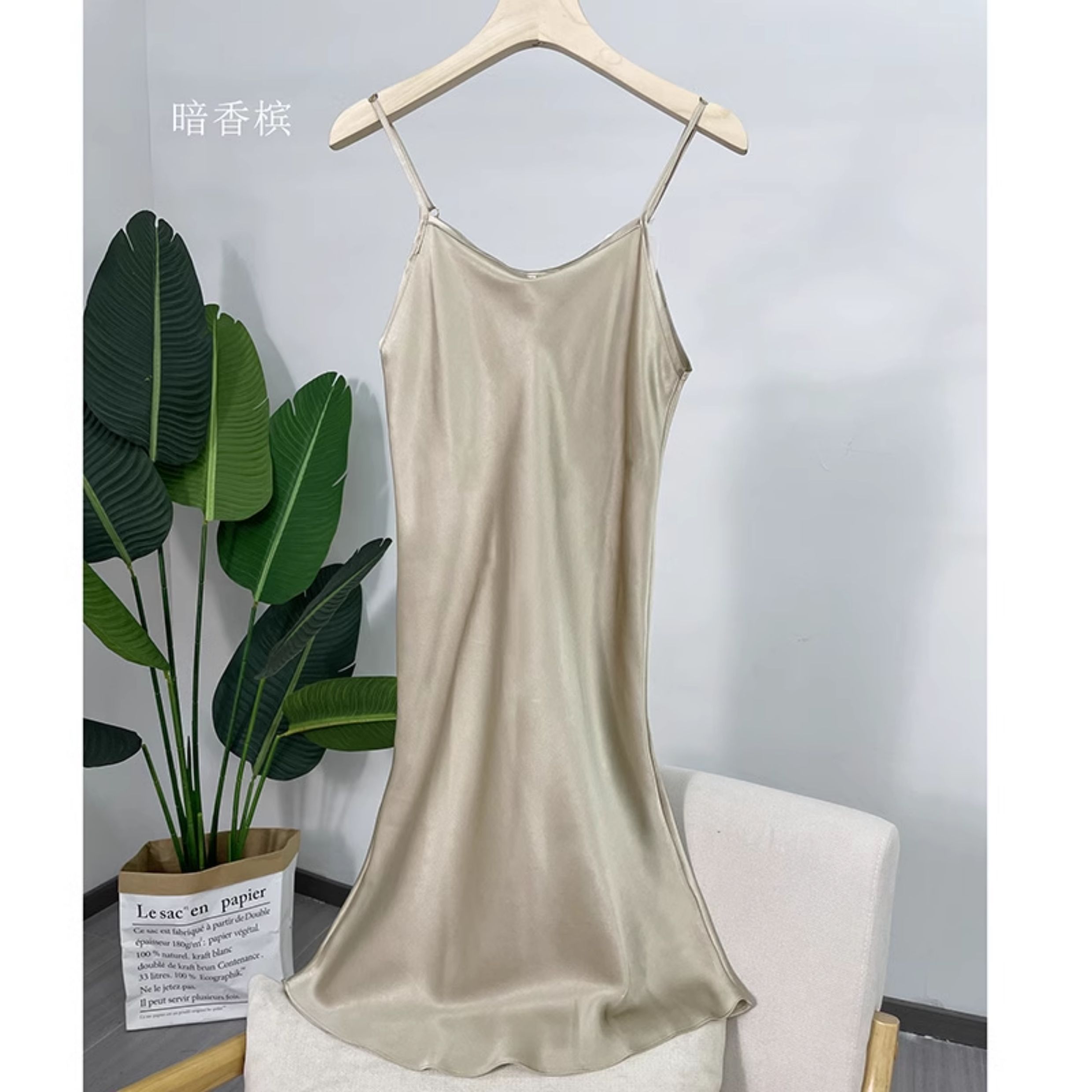 不拼接真絲吊帶裙夏季 100桑蠶絲中長打底連衣裙純色內搭防透襯裙