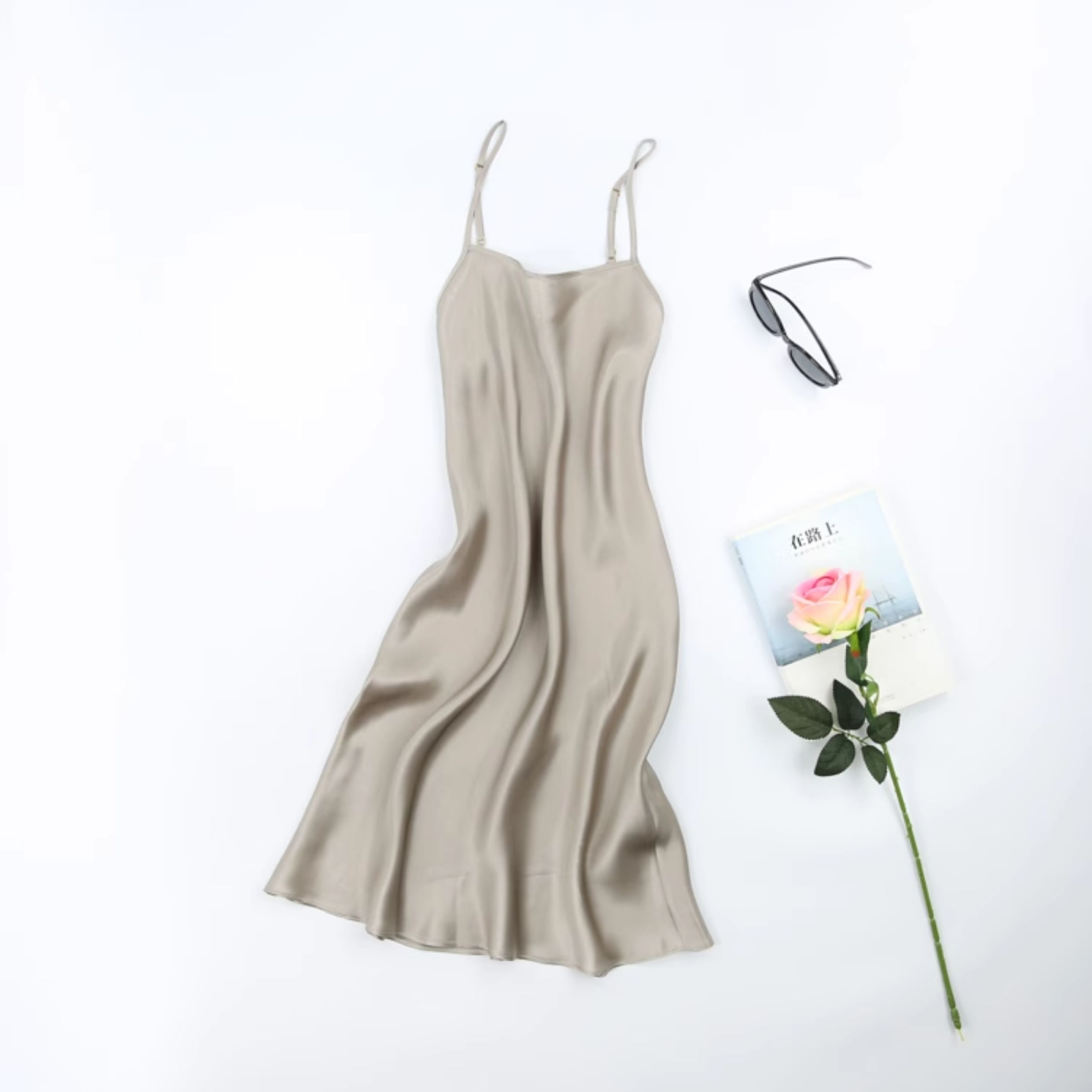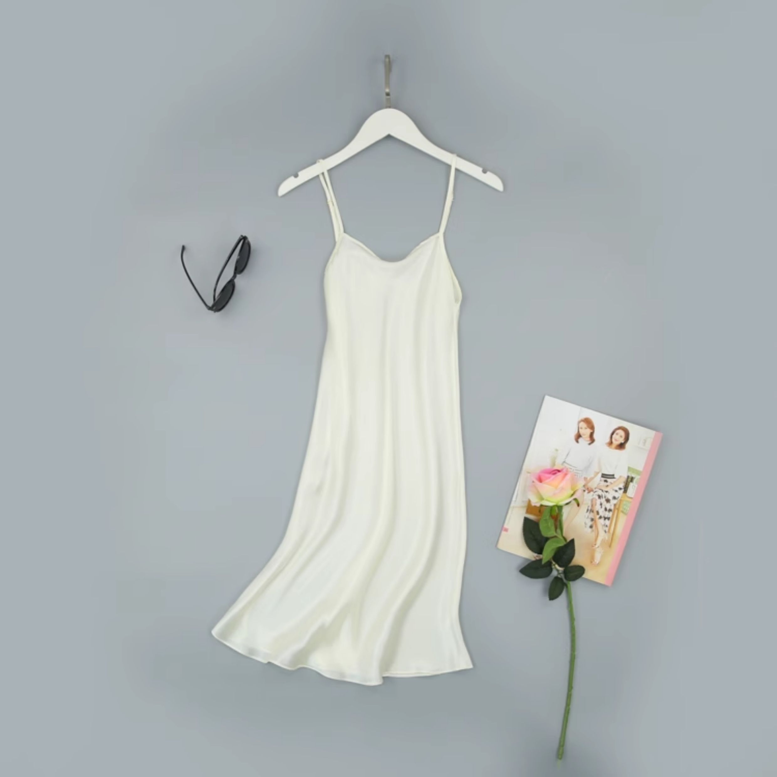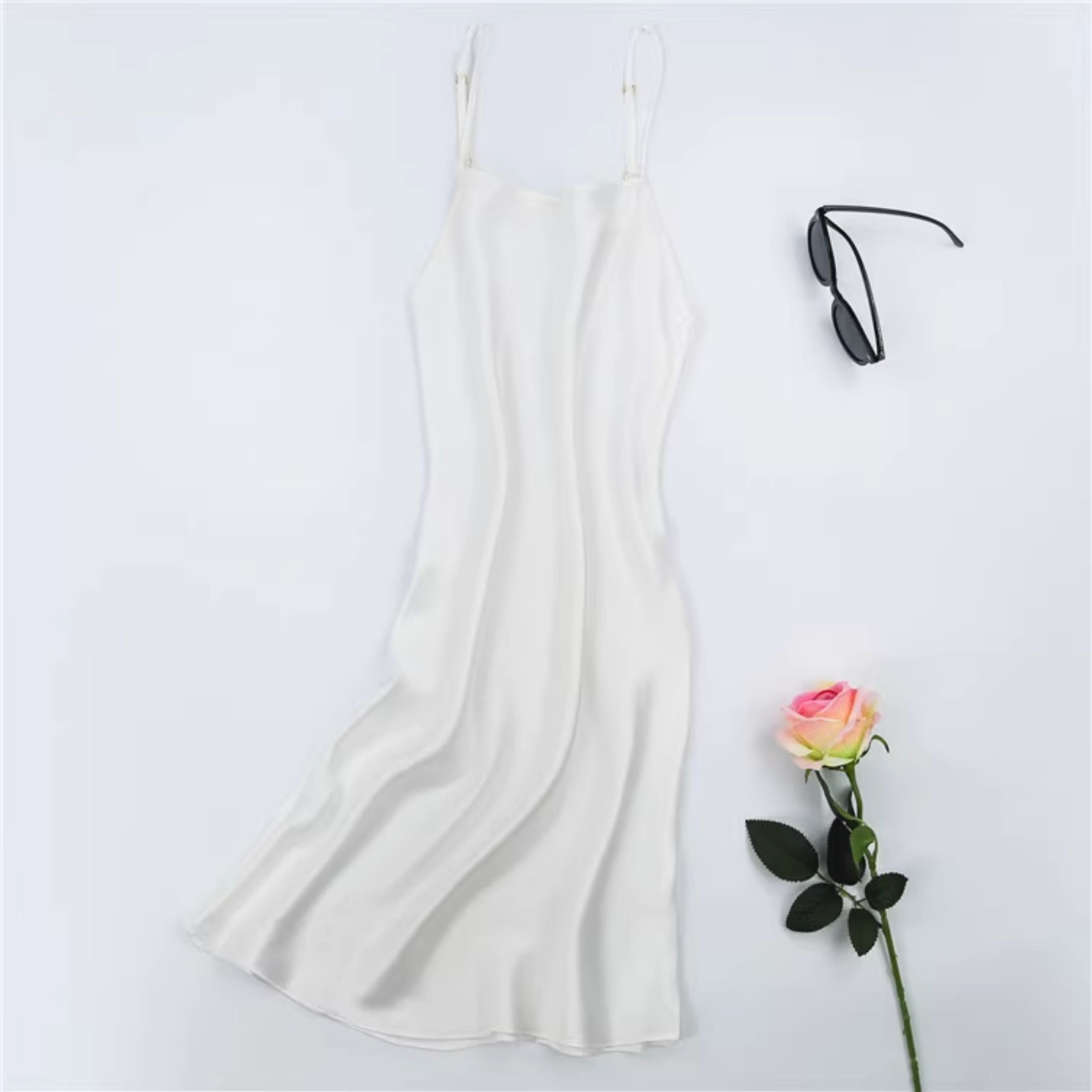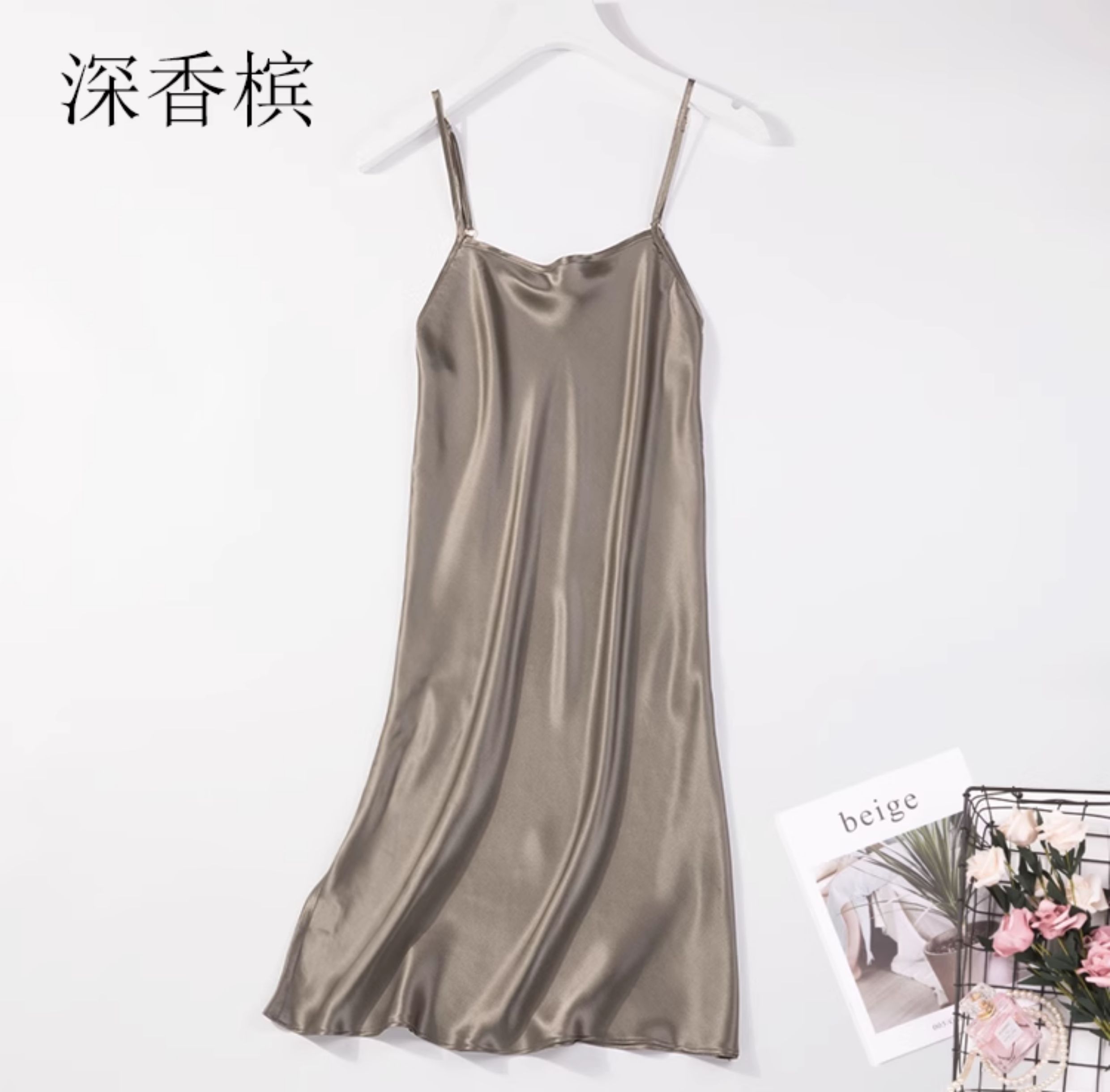 不拼接真絲吊帶裙夏季 100桑蠶絲中長打底連衣裙純色內搭防透襯裙