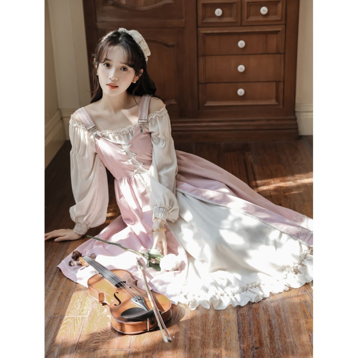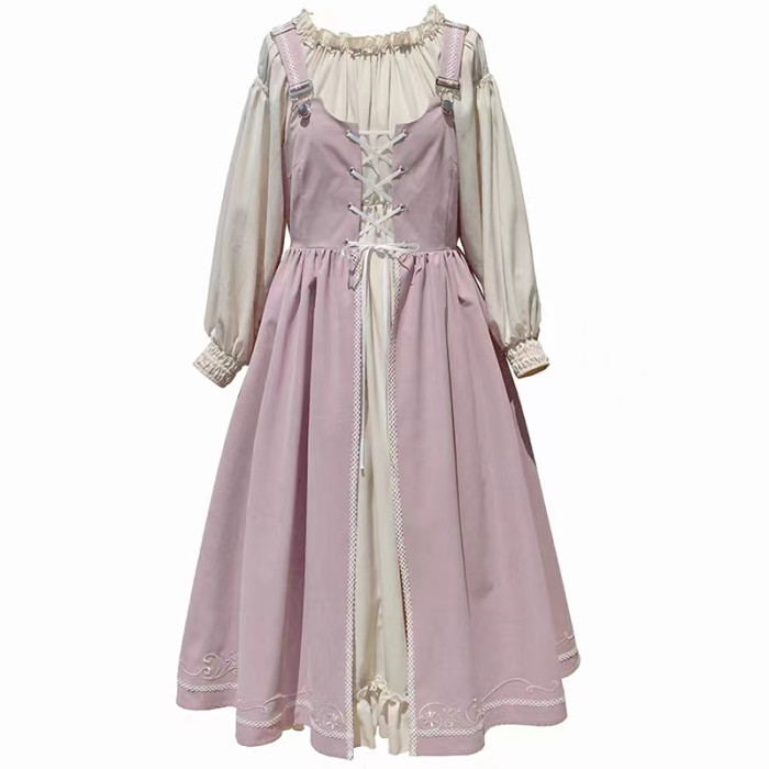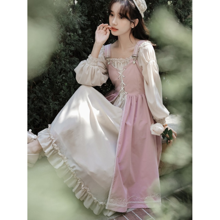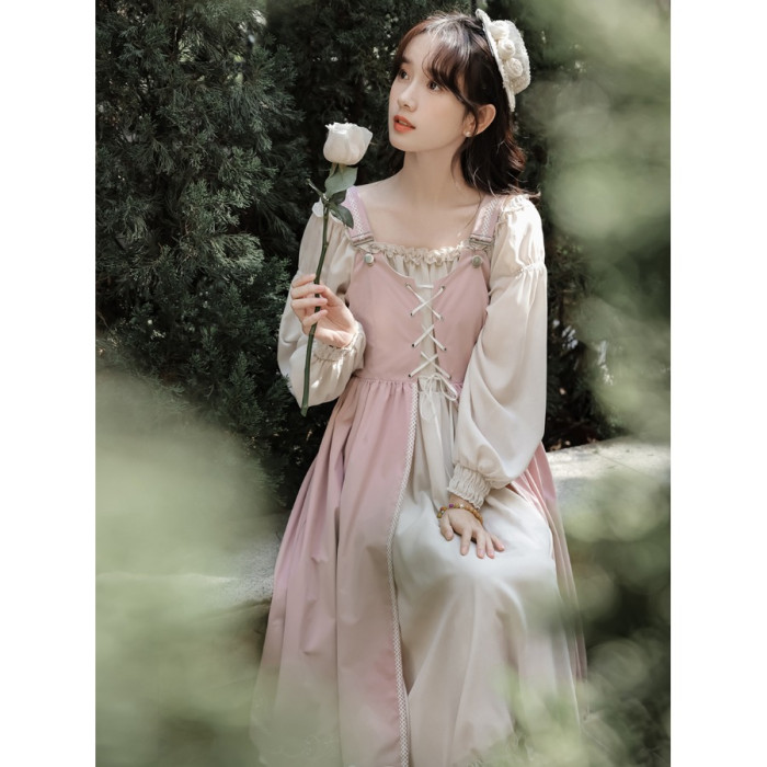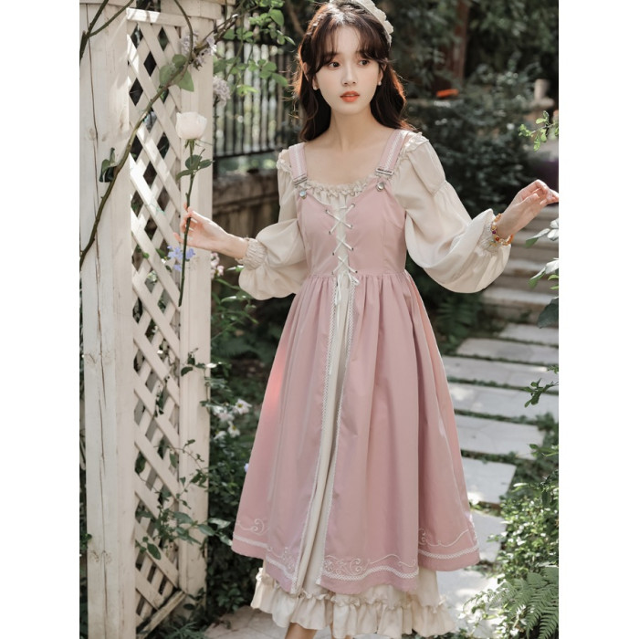 西廂記甜美lolita春夏可拆穿兩件套長裙茶系連衣裙在逃公主純欲裙