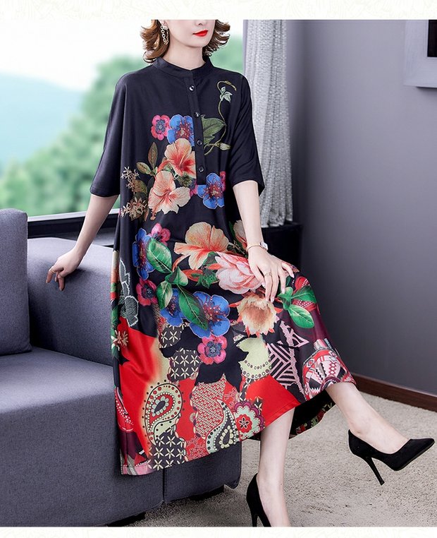廣州十三行女裝爆款連衣裙2025新款今年流行媽媽桑蠶真絲大碼裙子