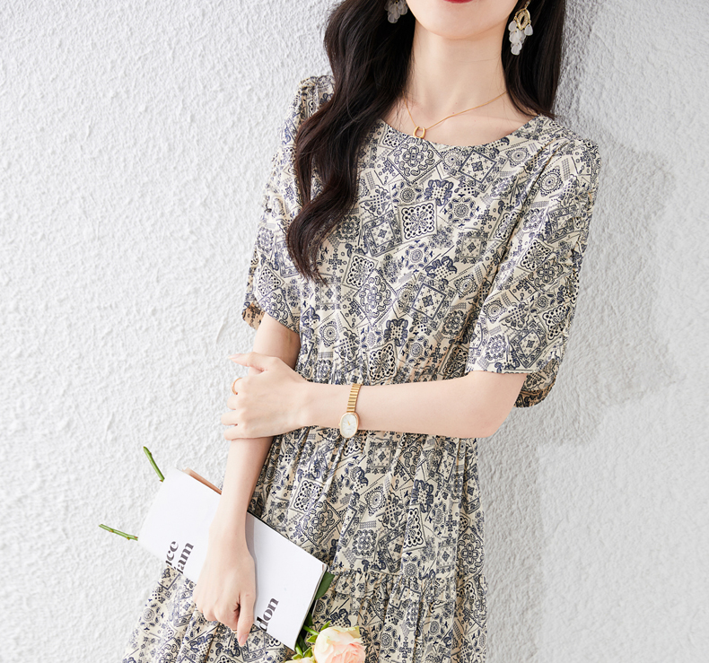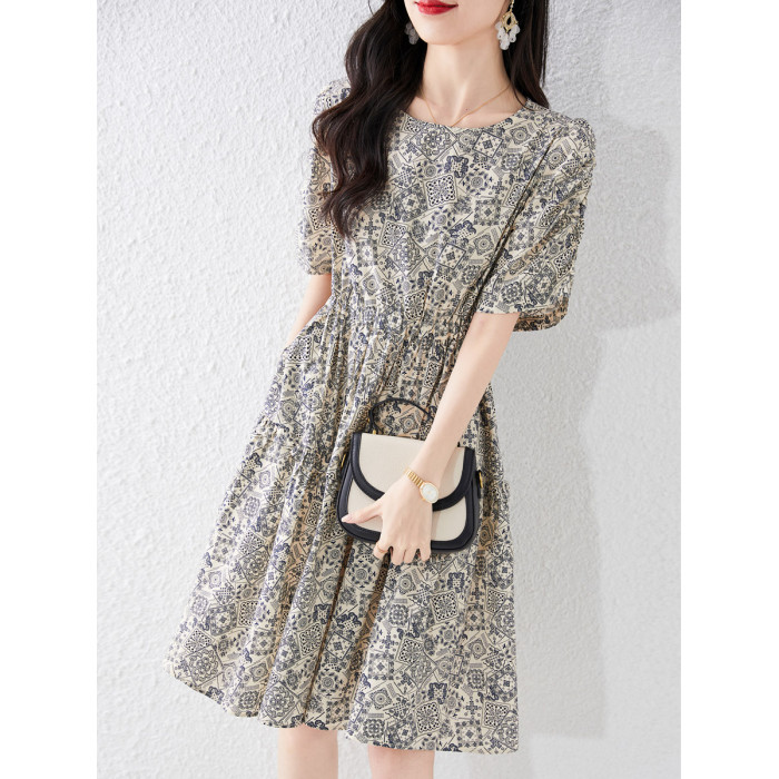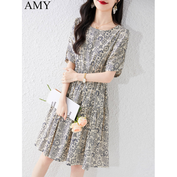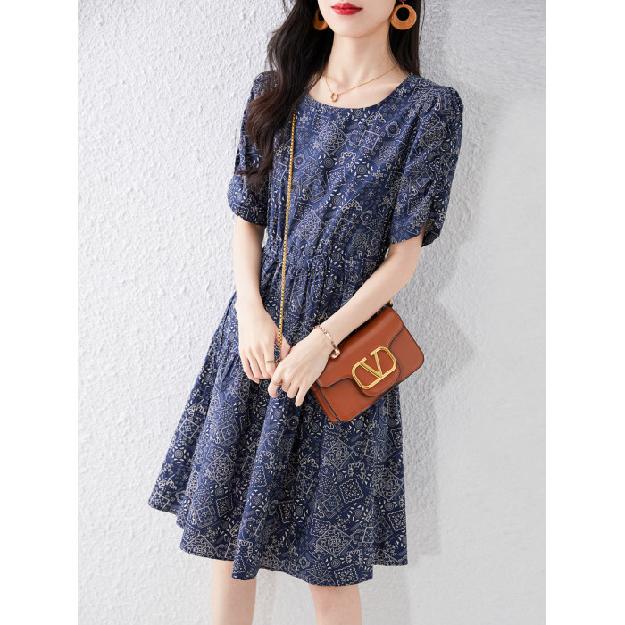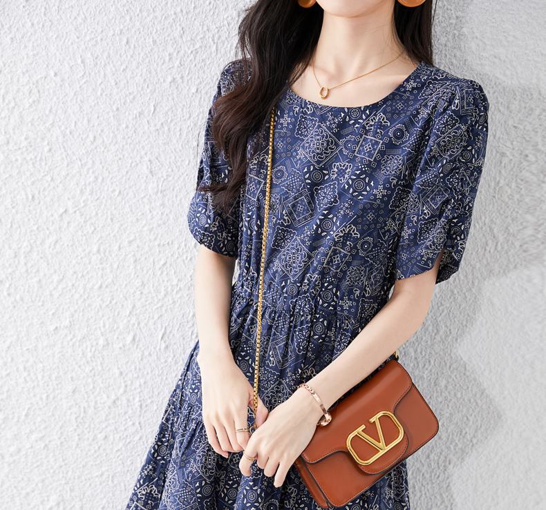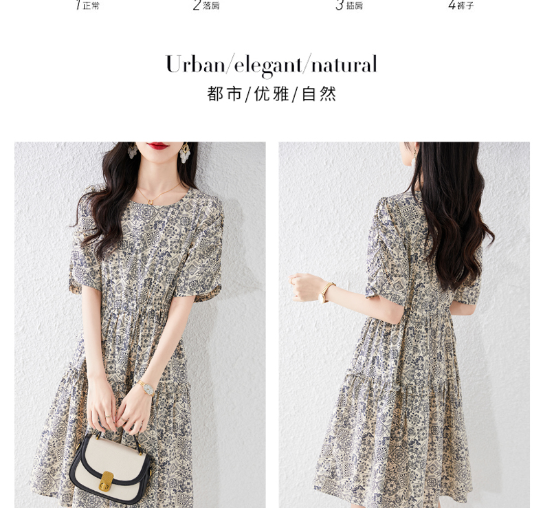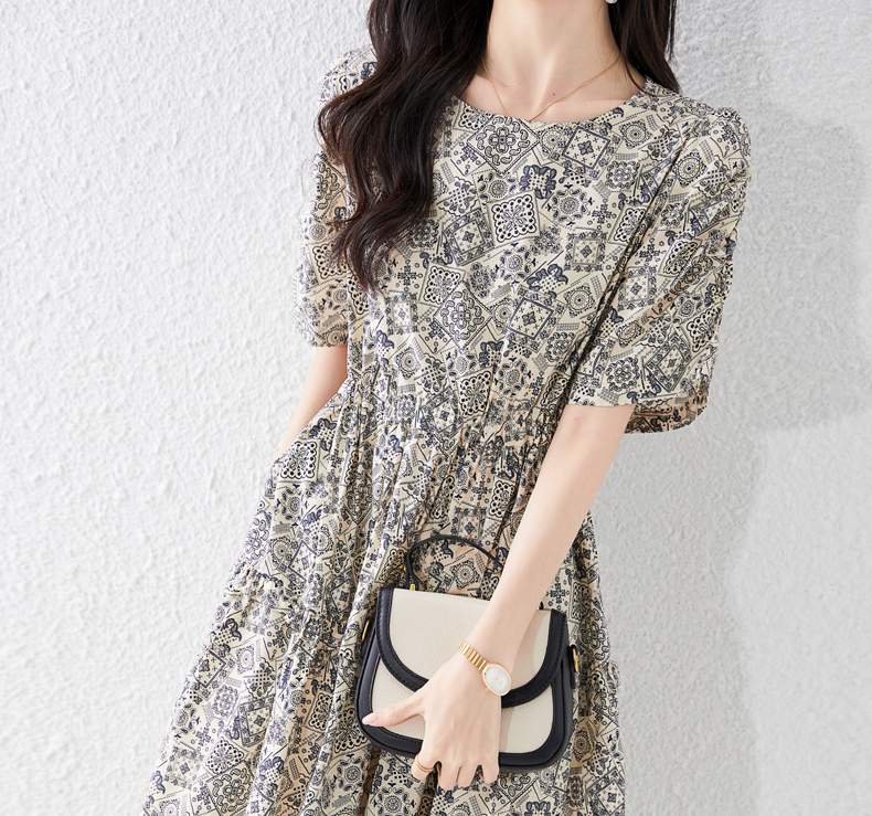 2025夏季新款復古寬松拼色小個子連衣裙洋氣休閒短袖顯瘦a字裙女