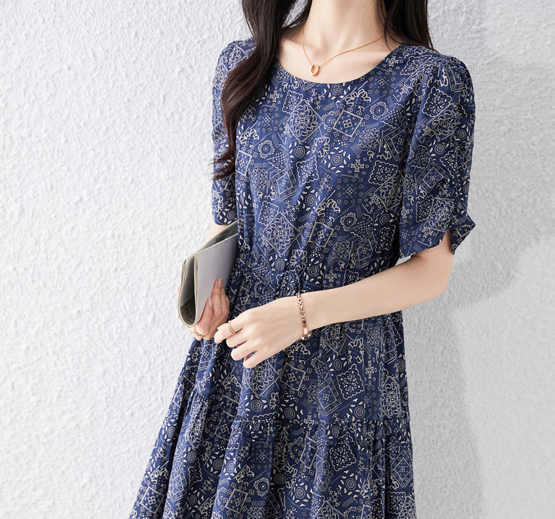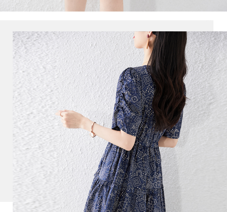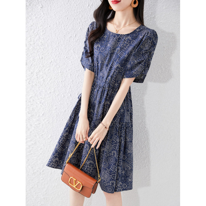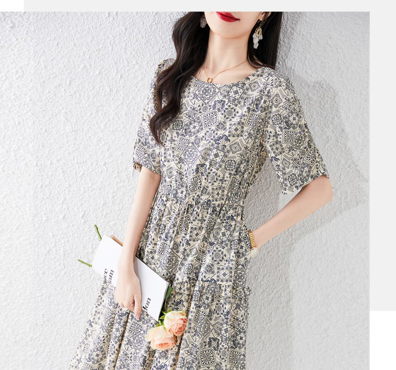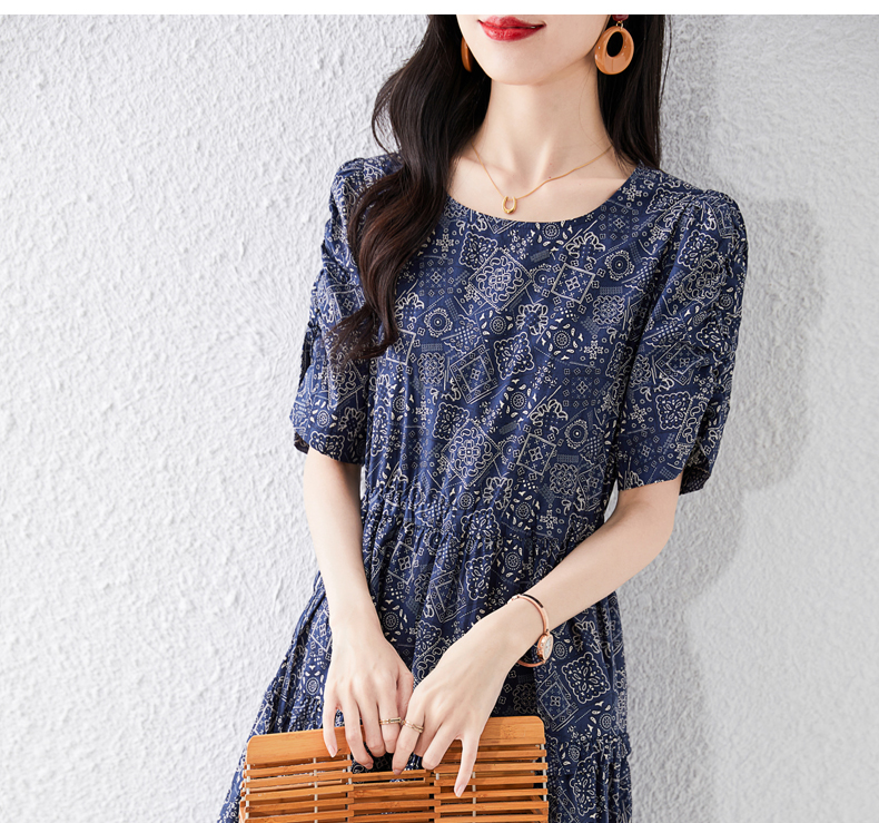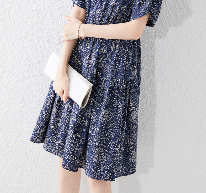 2025夏季新款復古寬松拼色小個子連衣裙洋氣休閒短袖顯瘦a字裙女