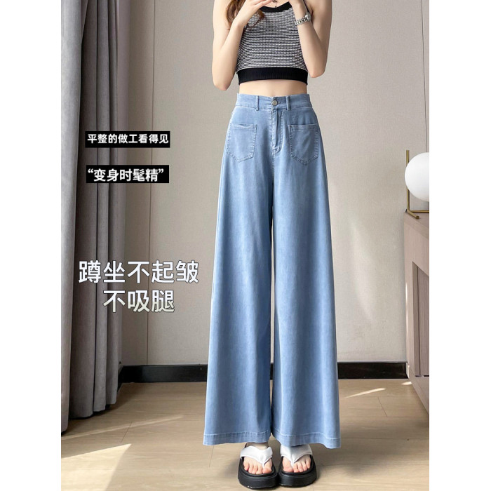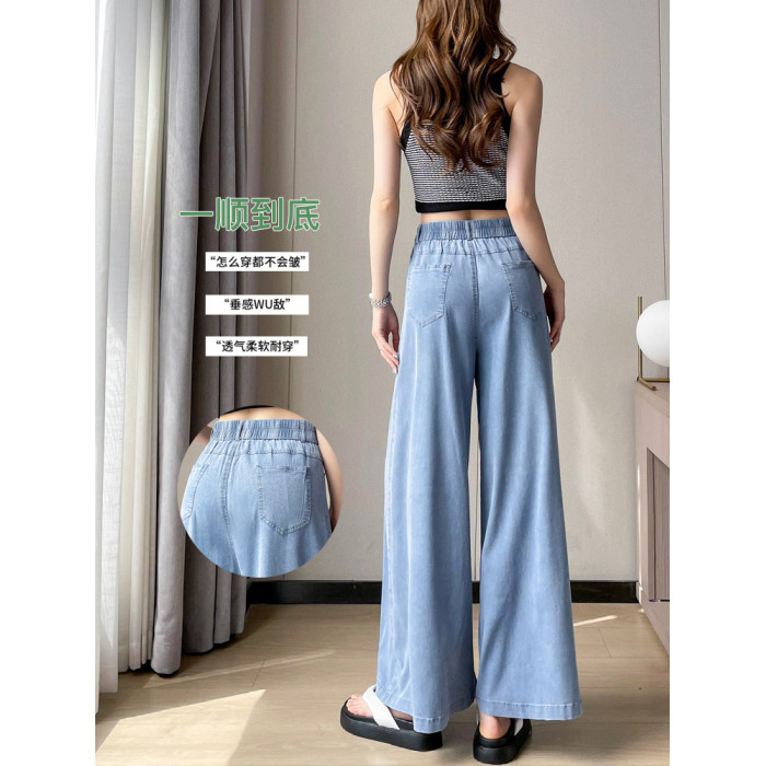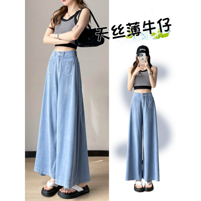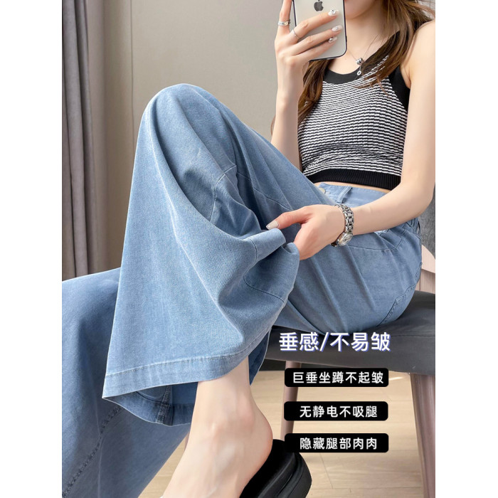 高腰天絲山本濶腿褲女2024夏季新款高腰寬松顯瘦薄款九分牛仔褲裙