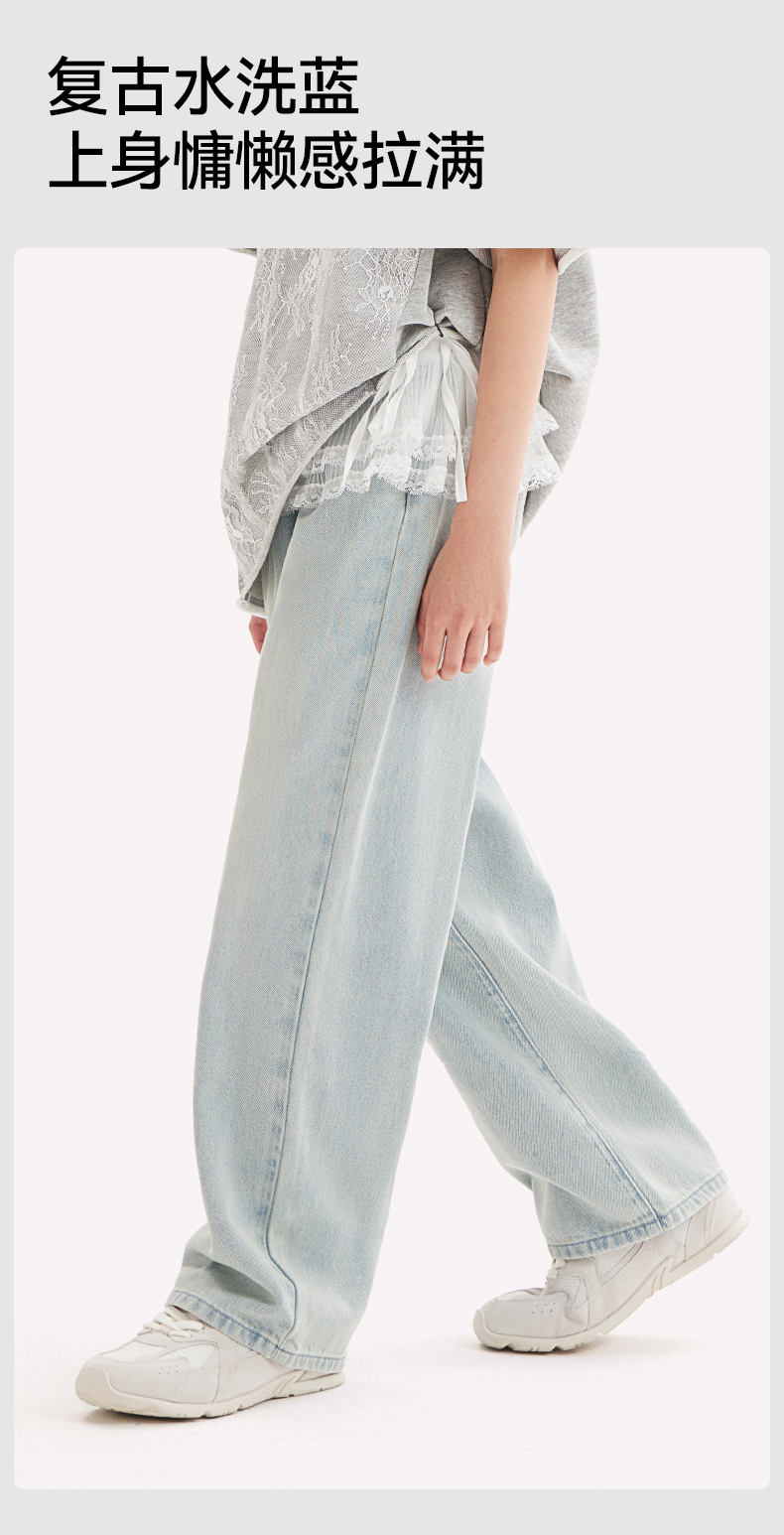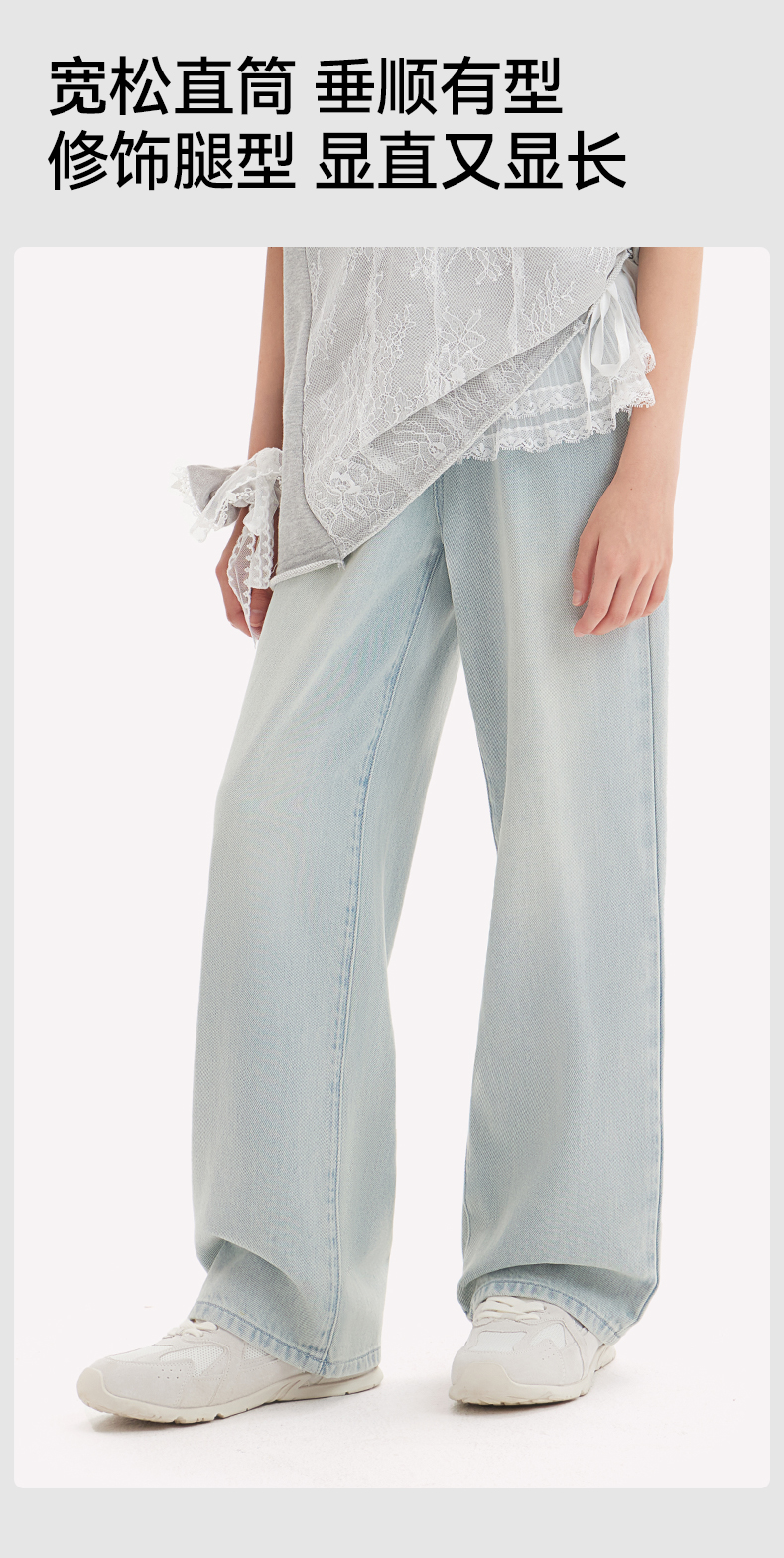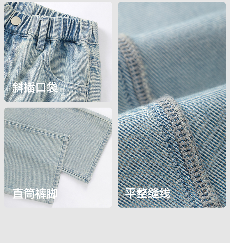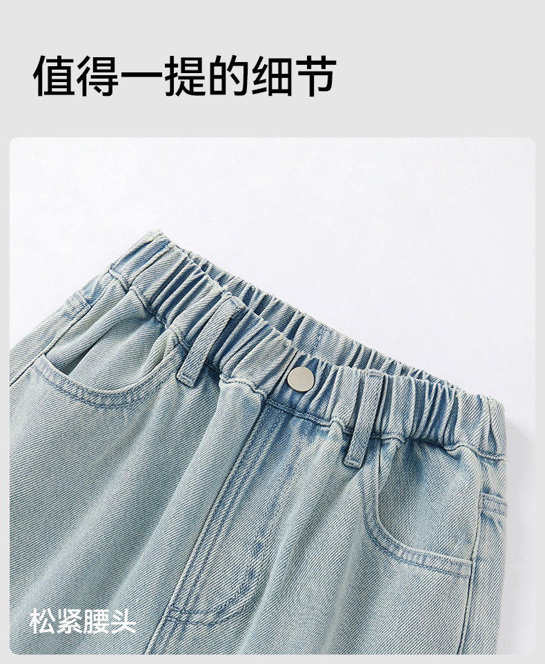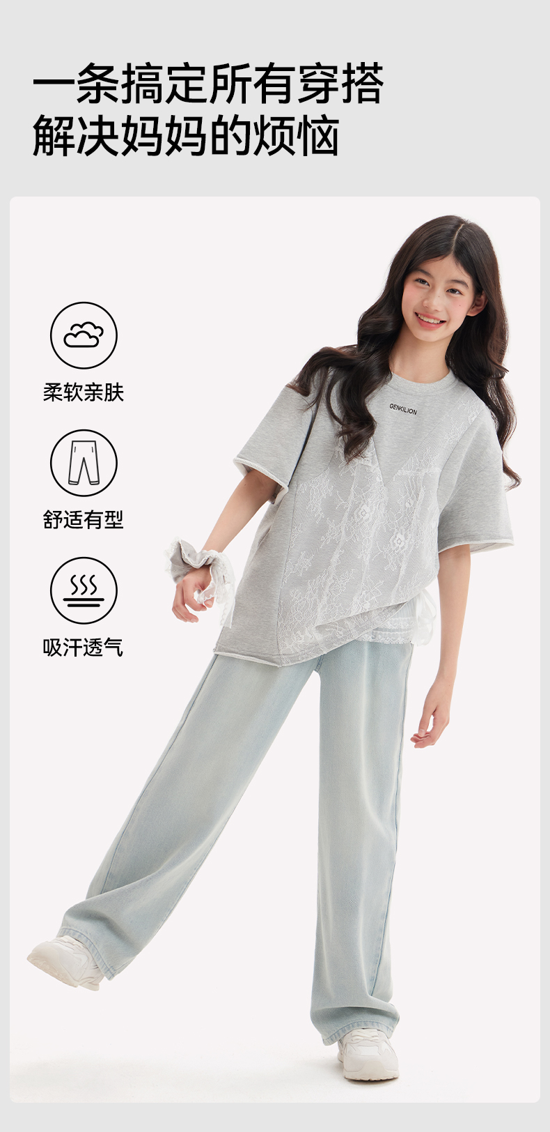 女童牛仔褲夏季2025初中生兒童復古軟牛仔濶腿褲中大童外穿休閒褲