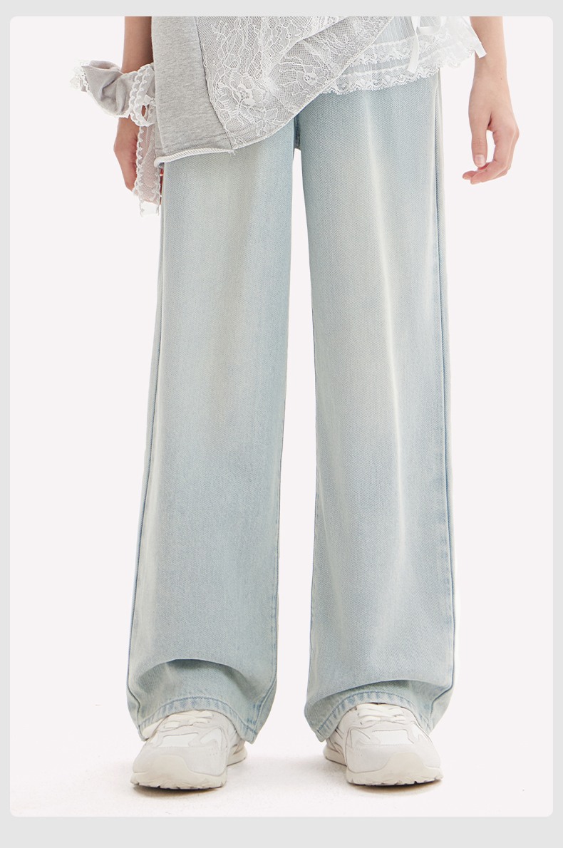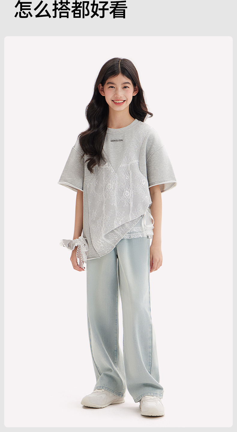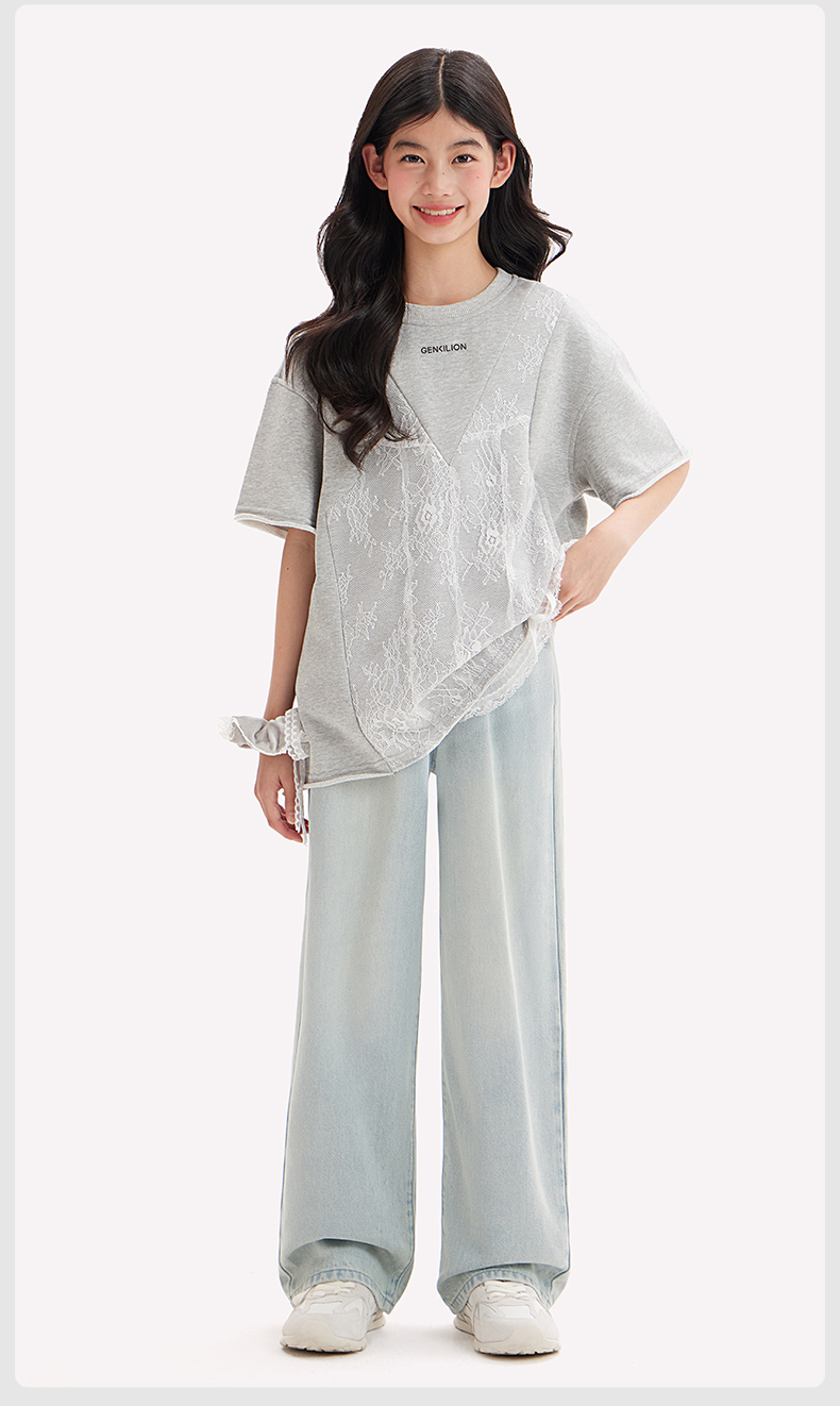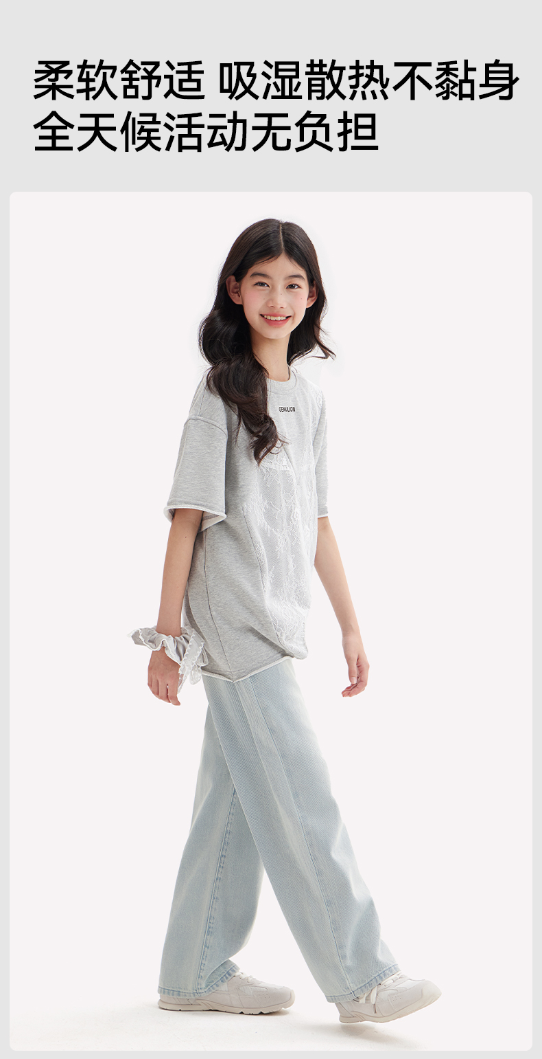 女童牛仔褲夏季2025初中生兒童復古軟牛仔濶腿褲中大童外穿休閒褲