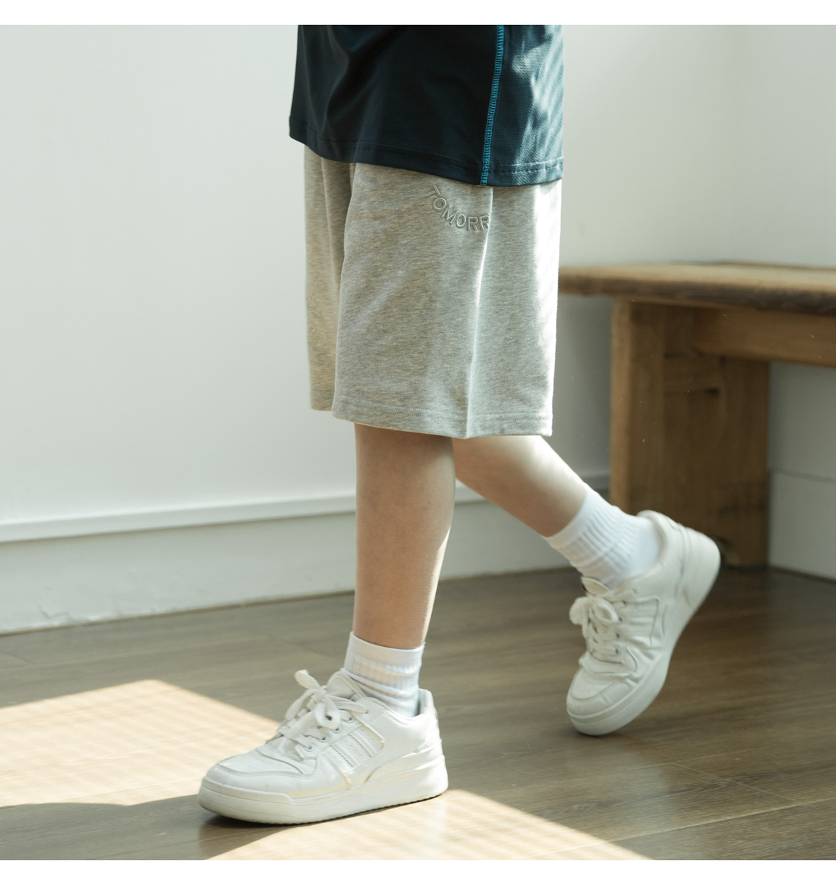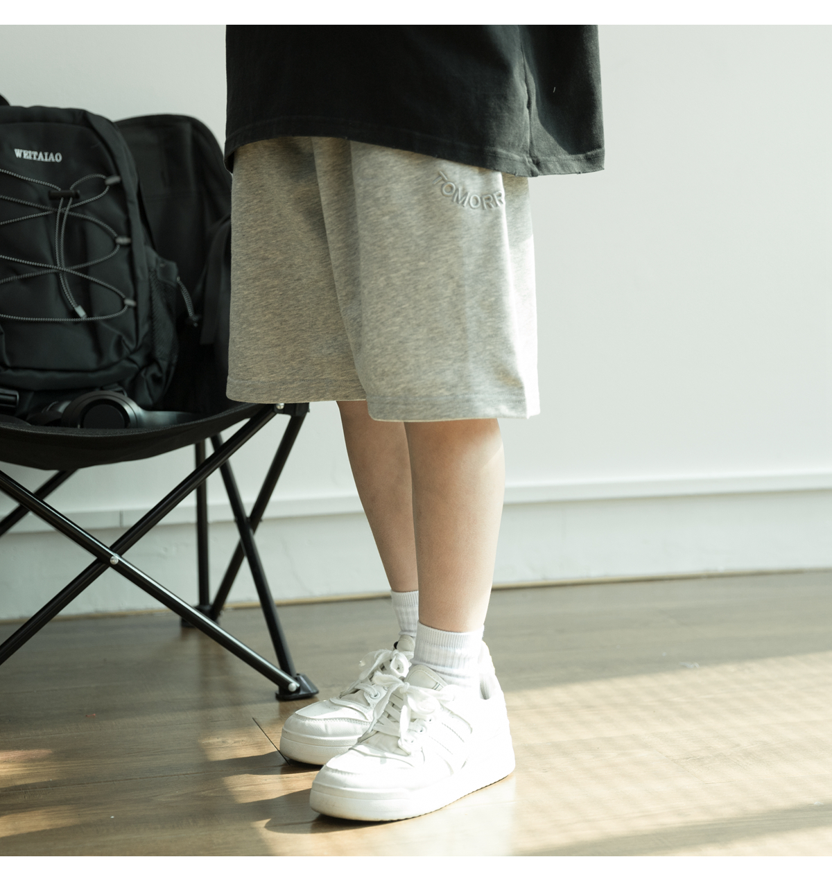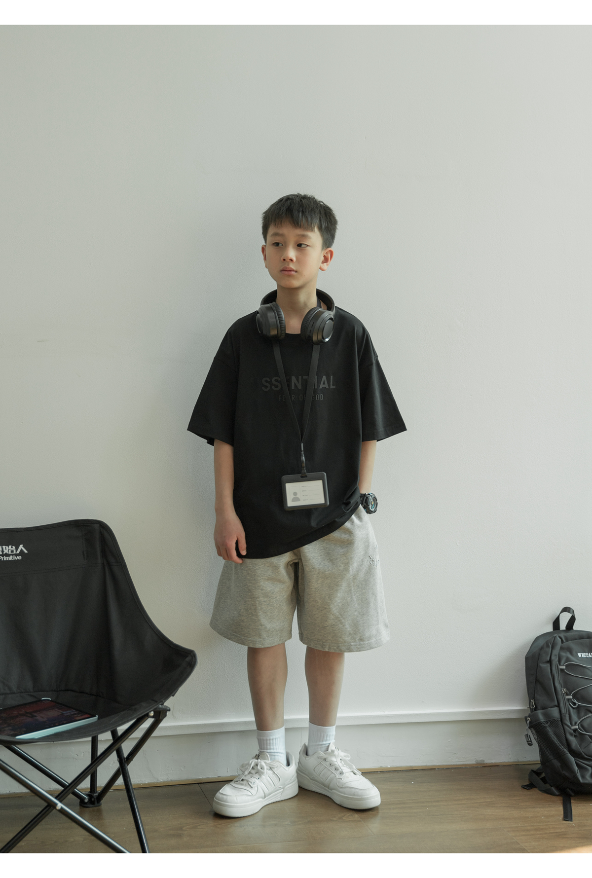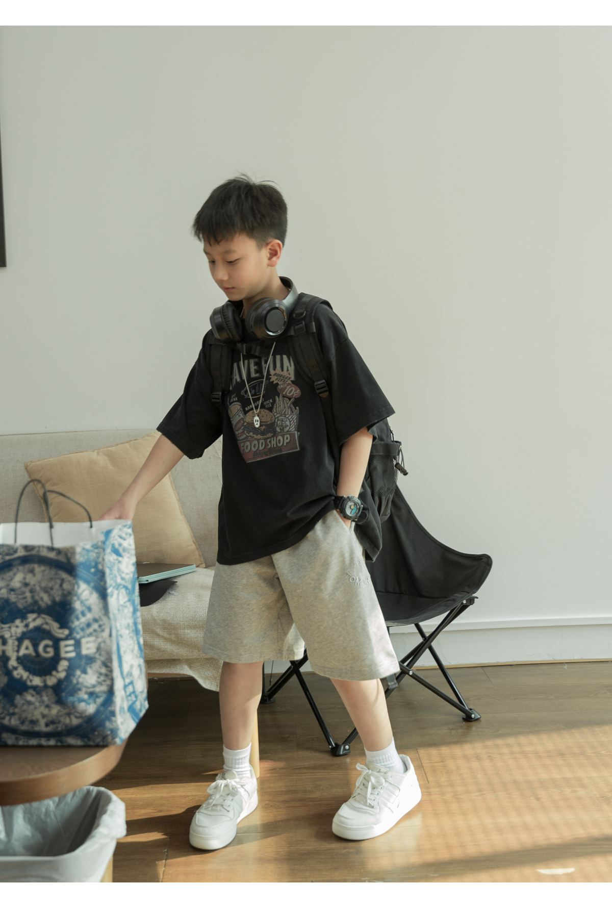男童褲子夏薄款五分褲親子裝大童夏季寬松衛褲黑色短褲灰色休閒褲
