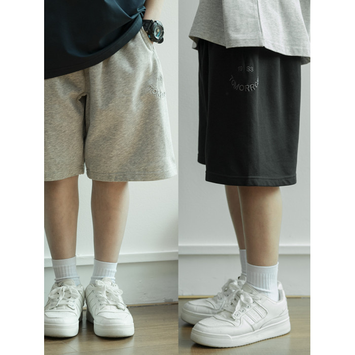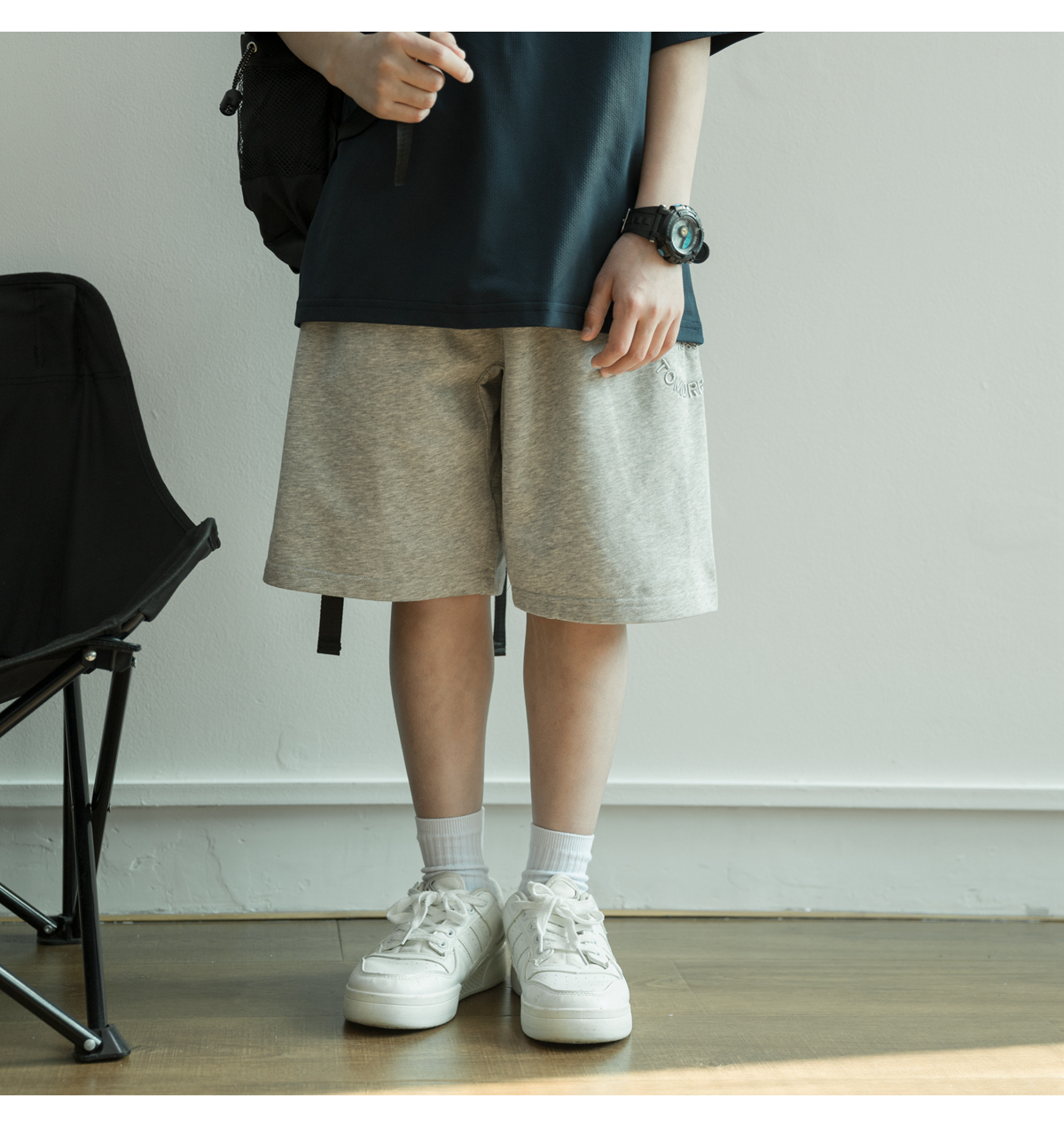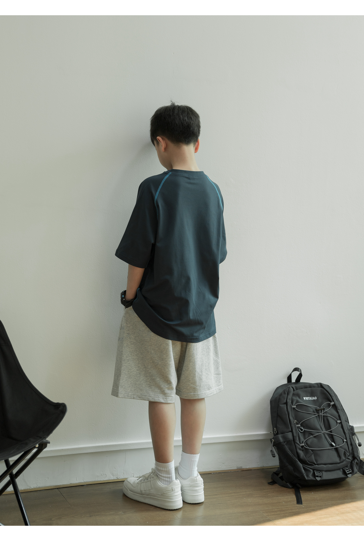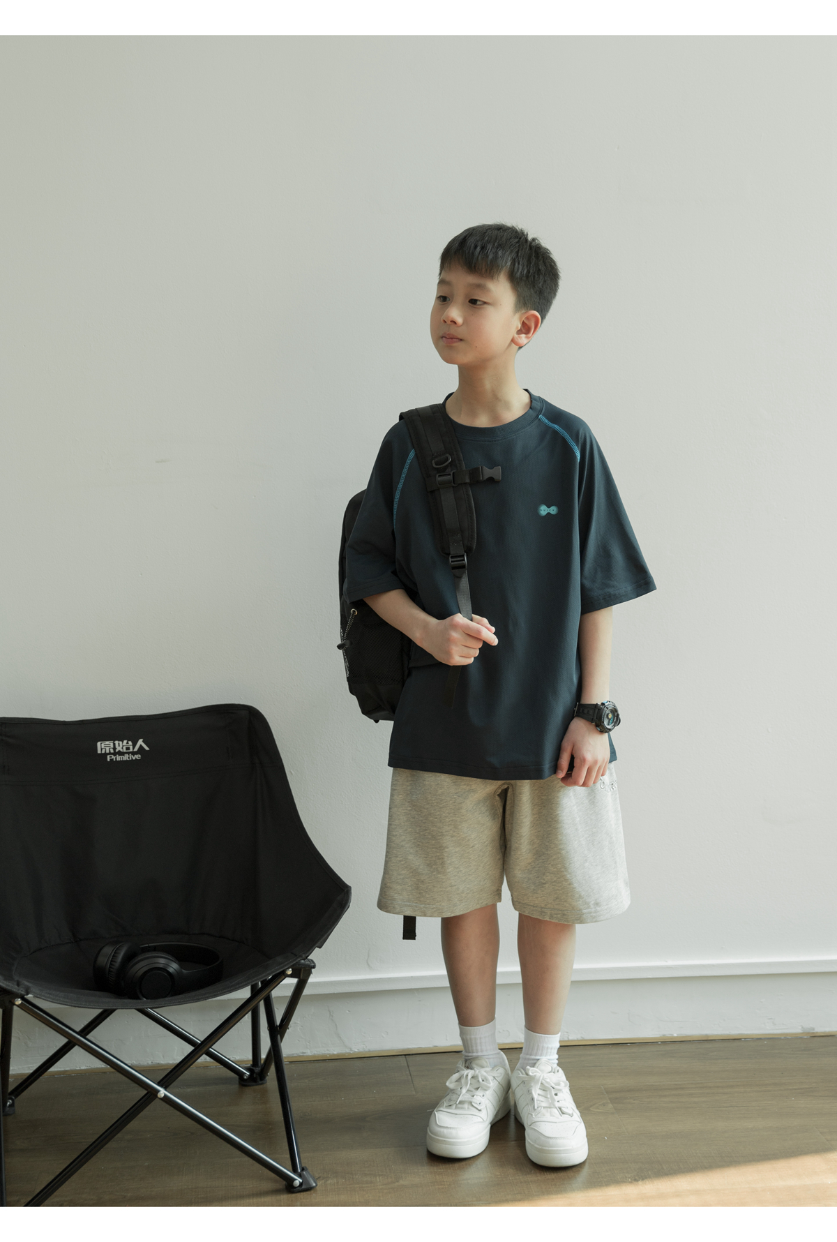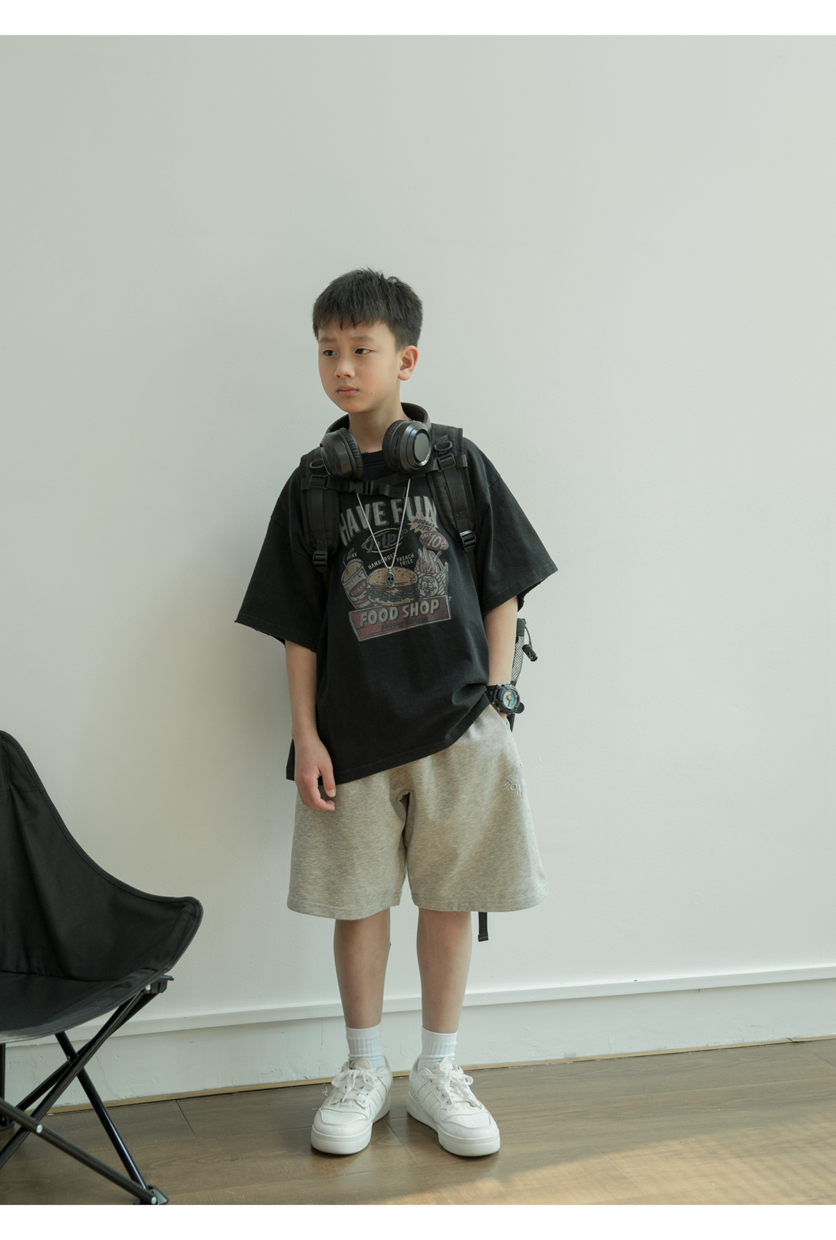 男童褲子夏薄款五分褲親子裝大童夏季寬松衛褲黑色短褲灰色休閒褲