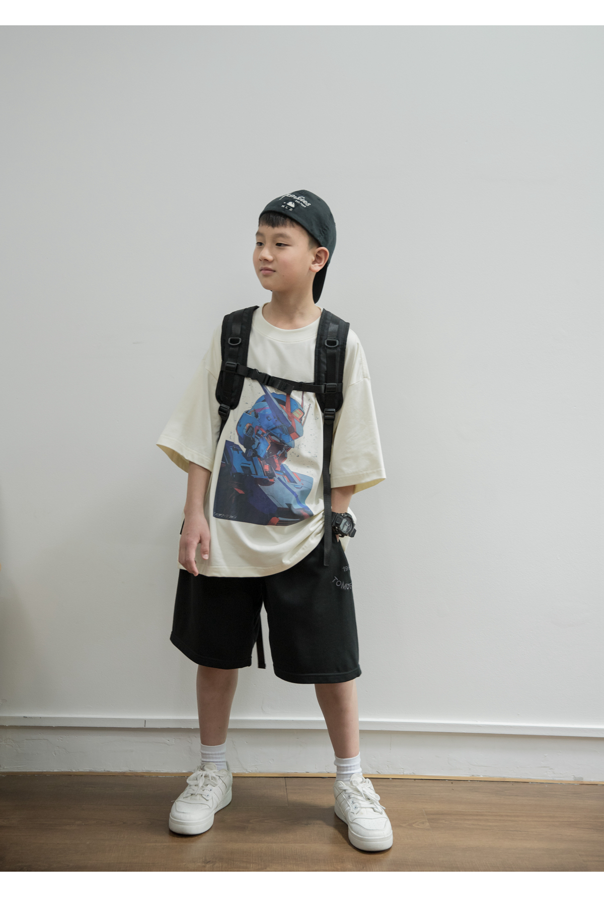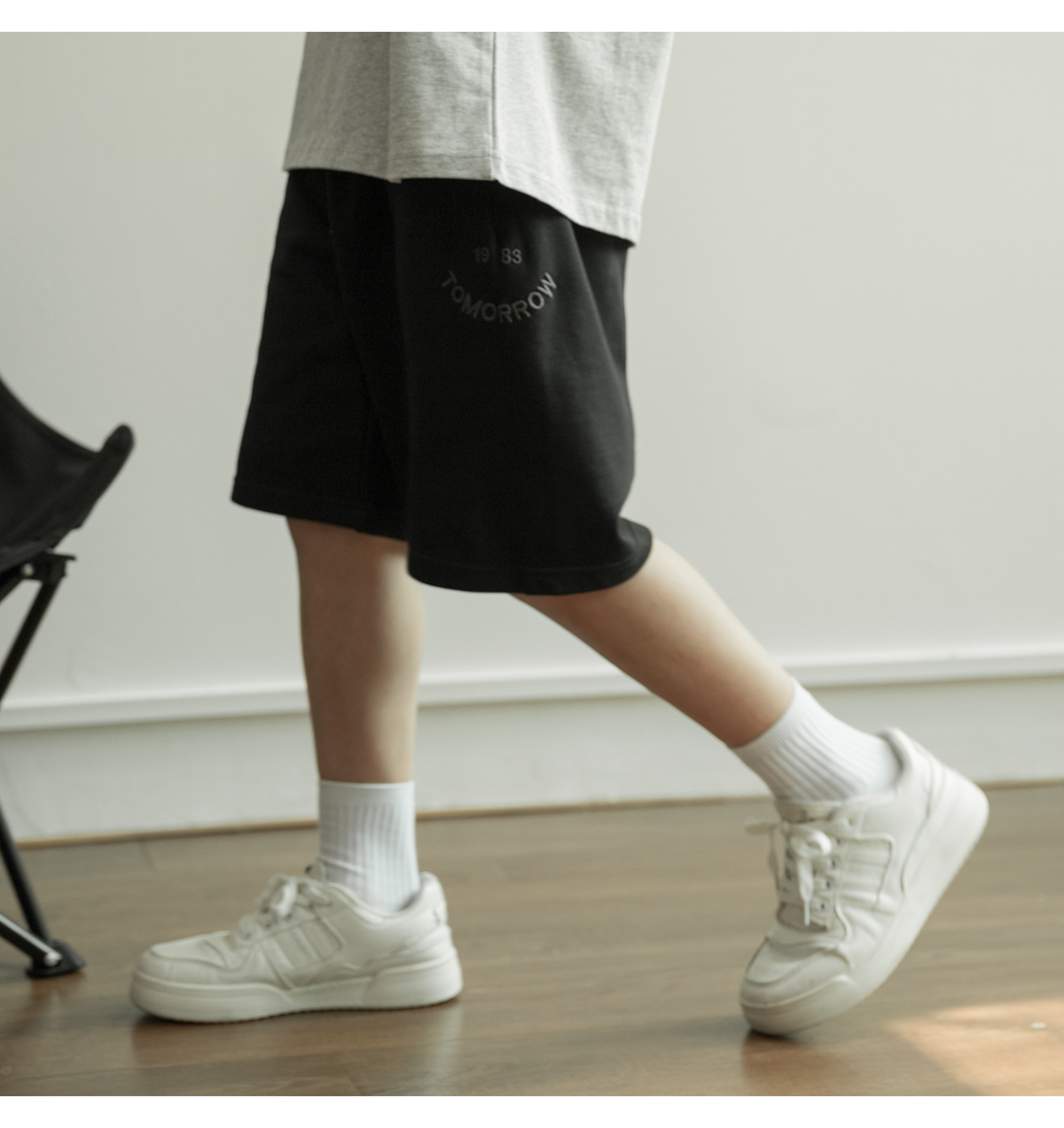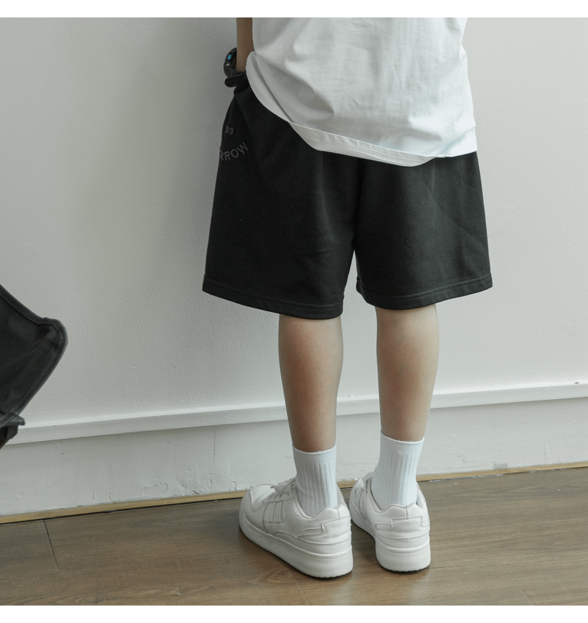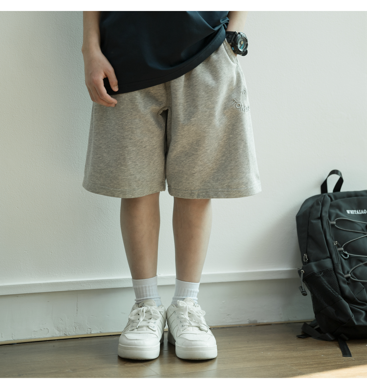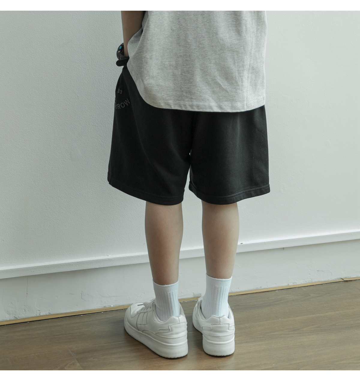 男童褲子夏薄款五分褲親子裝大童夏季寬松衛褲黑色短褲灰色休閒褲