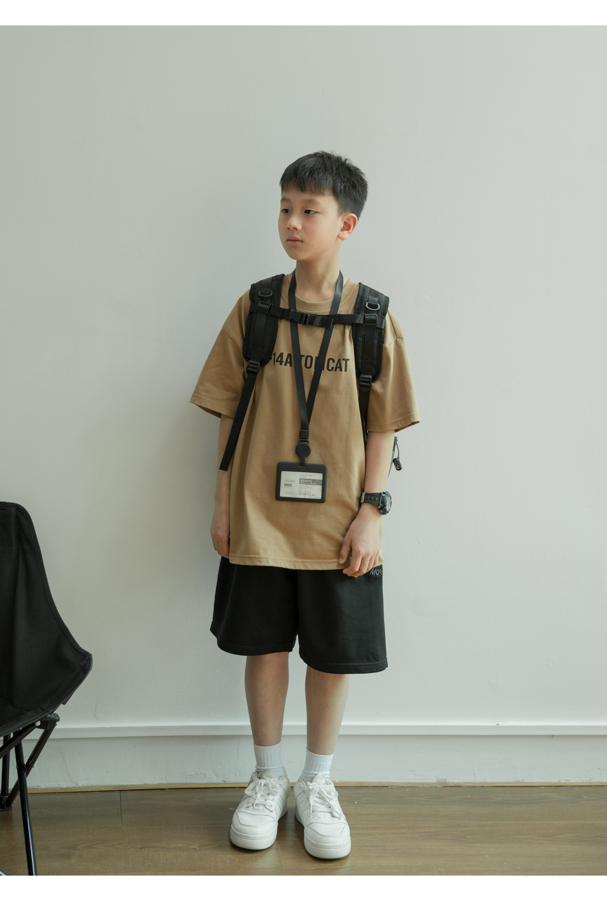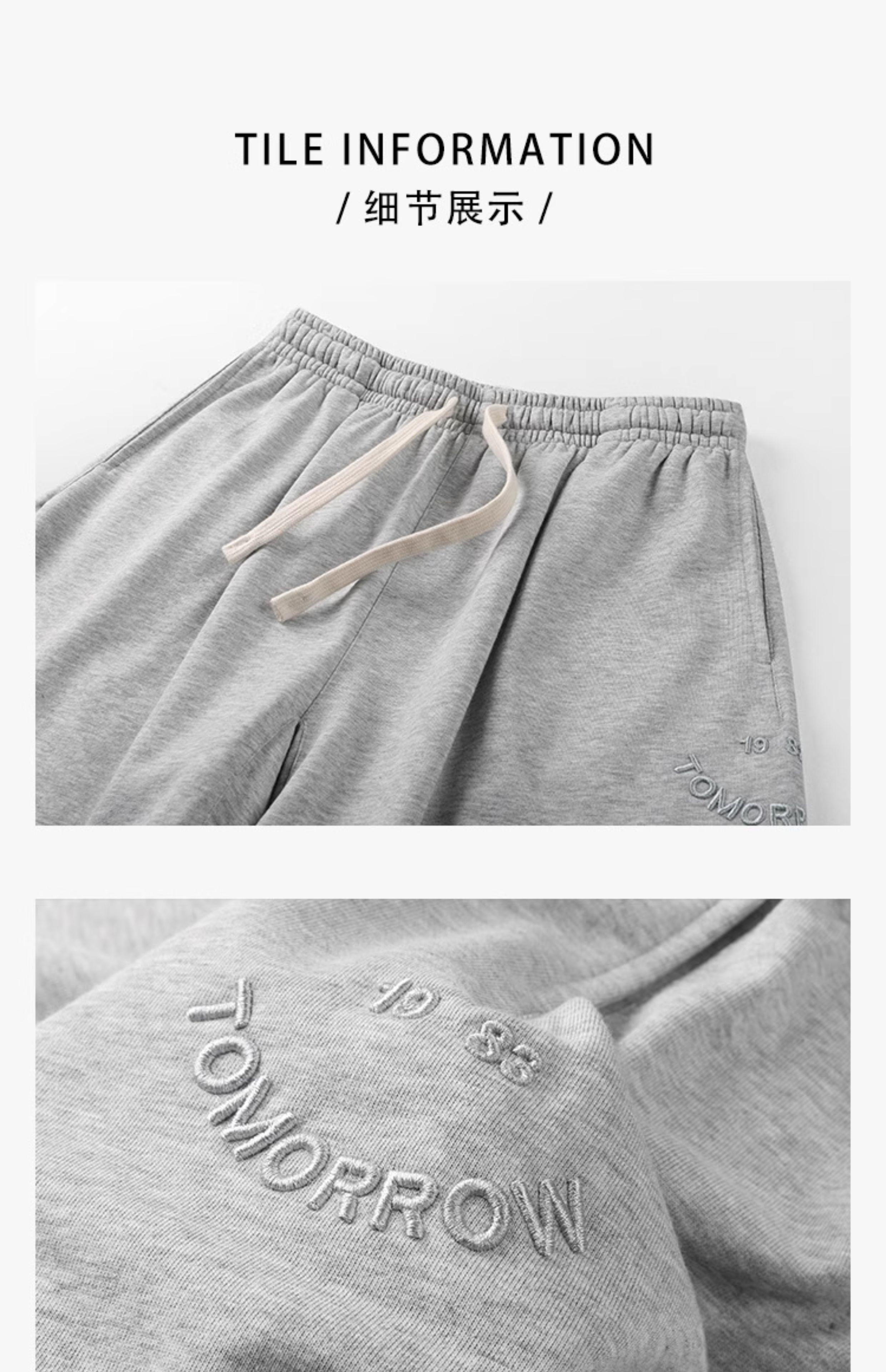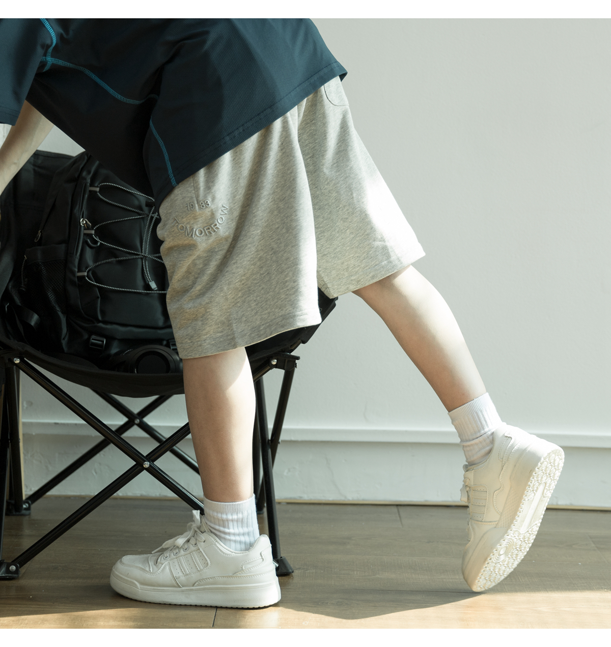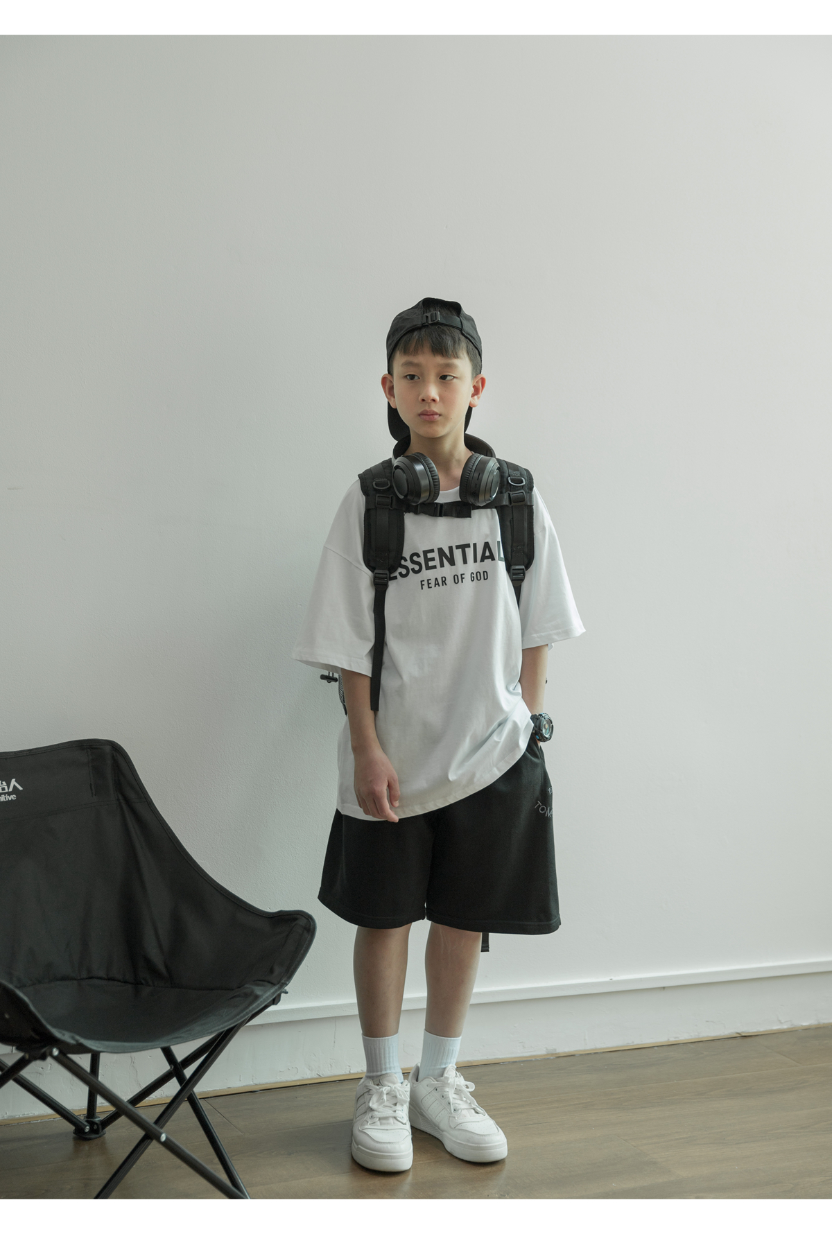男童褲子夏薄款五分褲親子裝大童夏季寬松衛褲黑色短褲灰色休閒褲