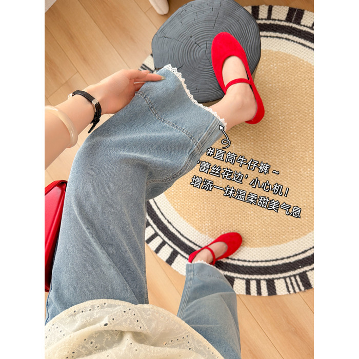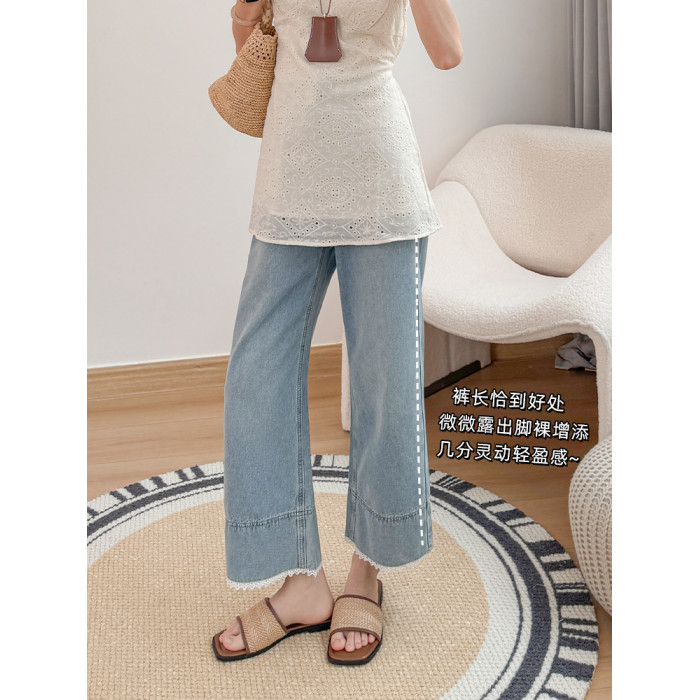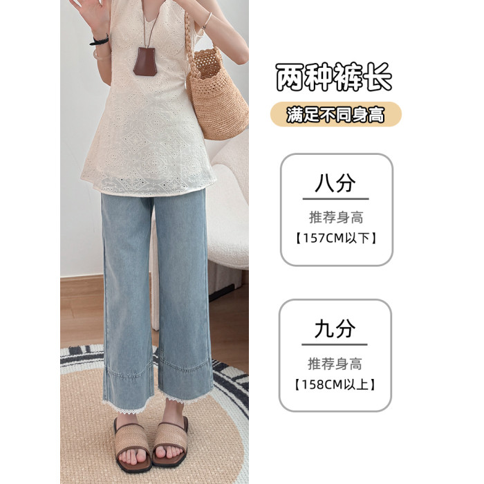 米見直筒牛仔褲女夏季薄款2025年新款高腰八分九分小個子濶腿褲子
