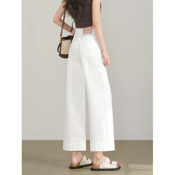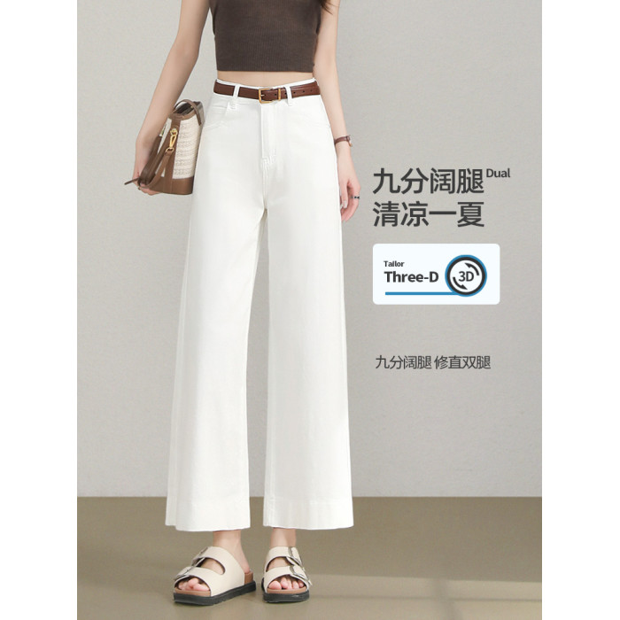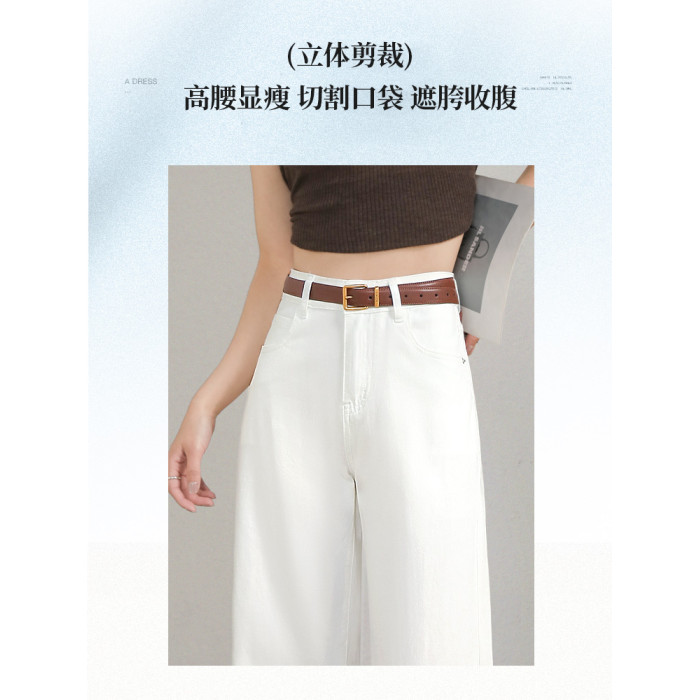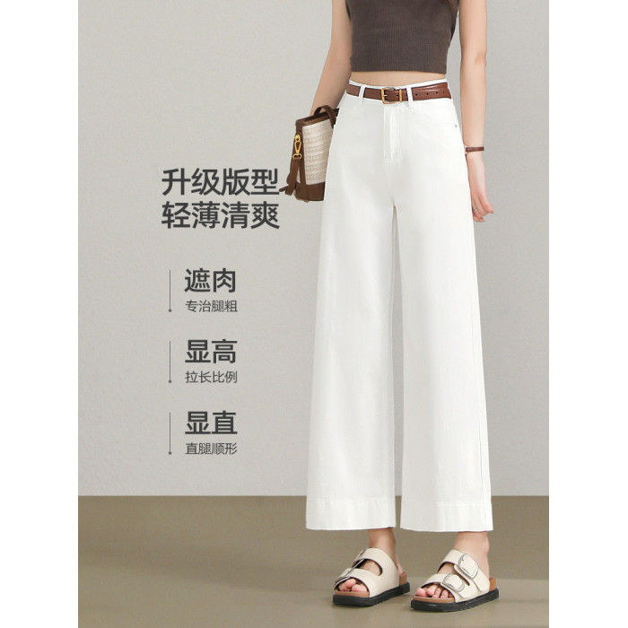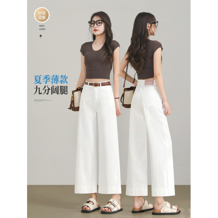 高級白色牛仔褲女夏季薄款高腰小個子寬松顯瘦百搭九分直筒濶腿褲