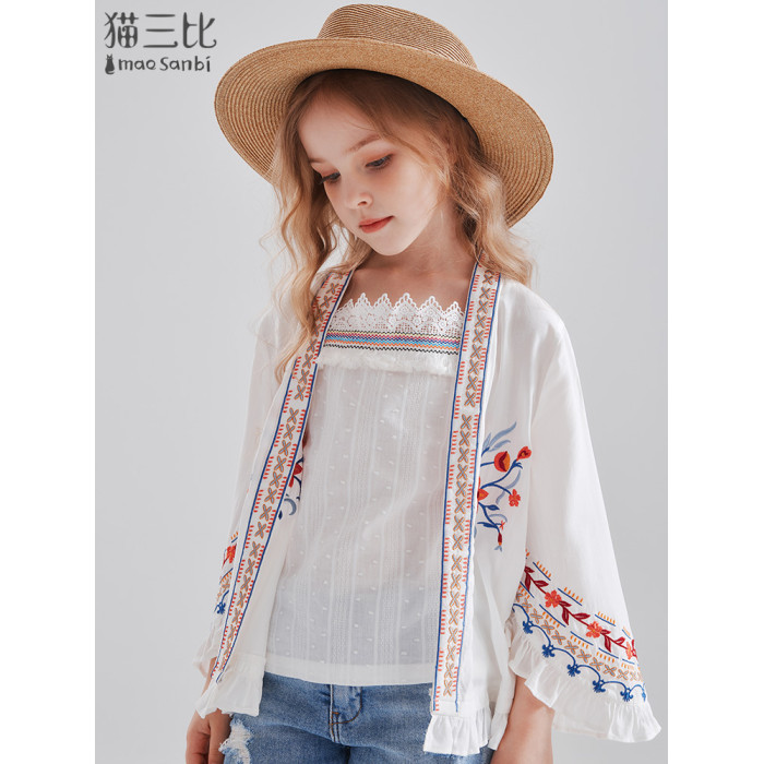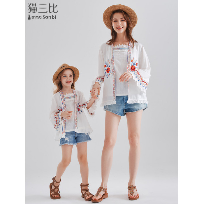 三亞度假親子裝防曬衣2025夏季新款中大童披肩刺綉兒童皮膚衣母女
