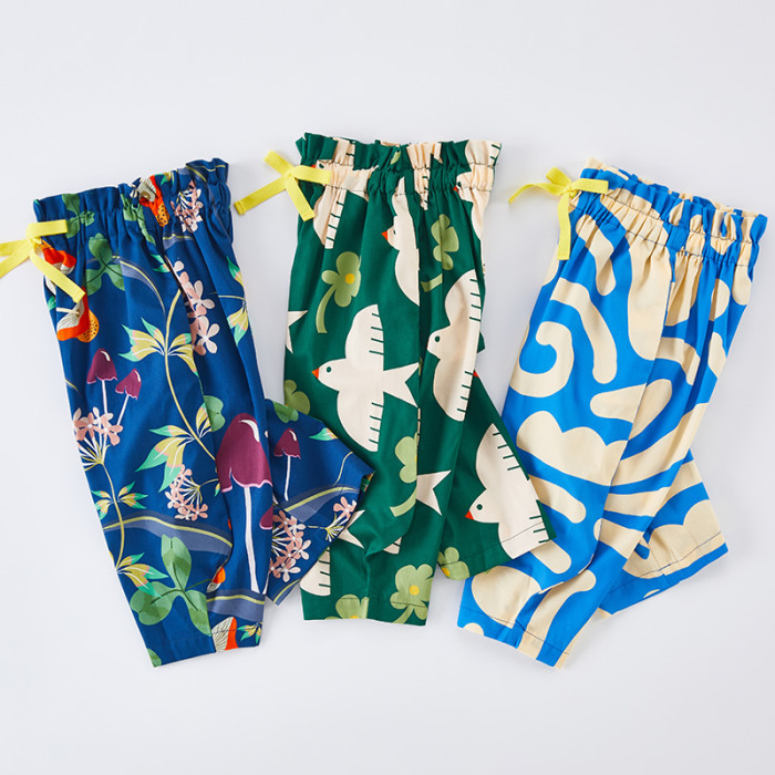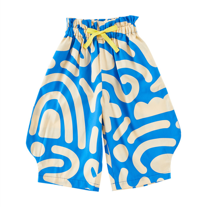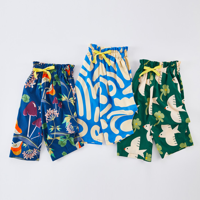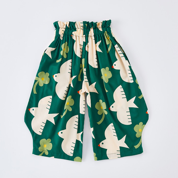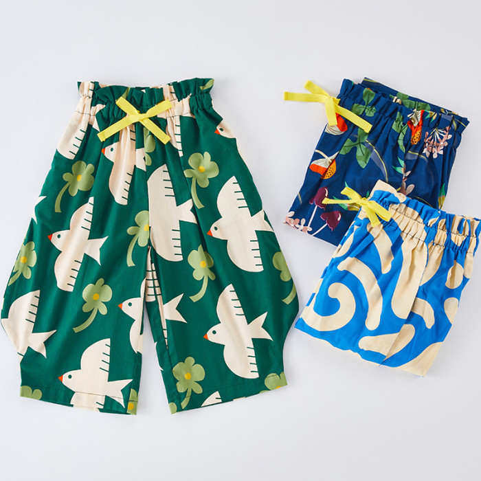 兒童純棉防蚊濶腿褲夏季薄款女童花苞褲男童燈籠九分褲印花親子裝