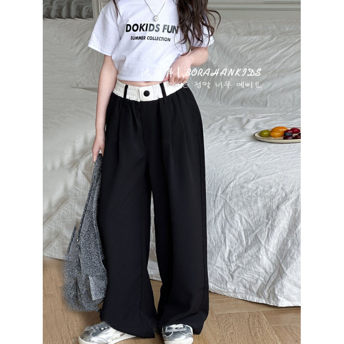 女童輕薄防蚊褲中大童涼涼速乾褲休閒2025夏季兒童寬松直筒濶腿褲