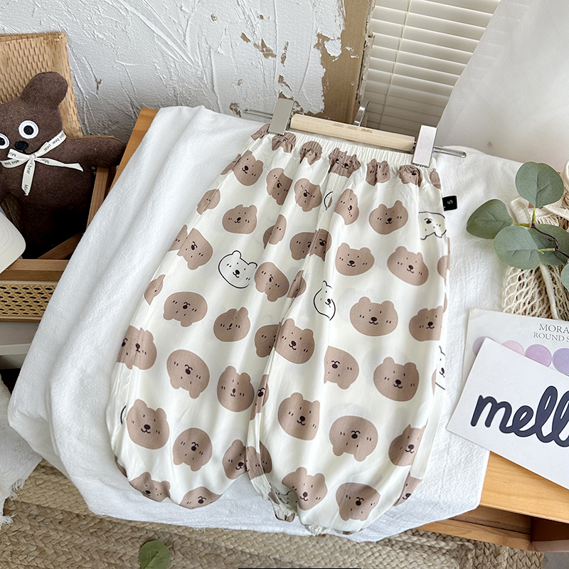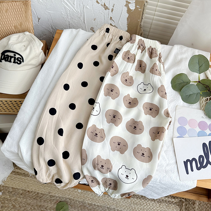 寶寶防蚊褲2025新款1-3嵗嬰兒棉綢褲子女童夏款長褲男孩子燈籠褲