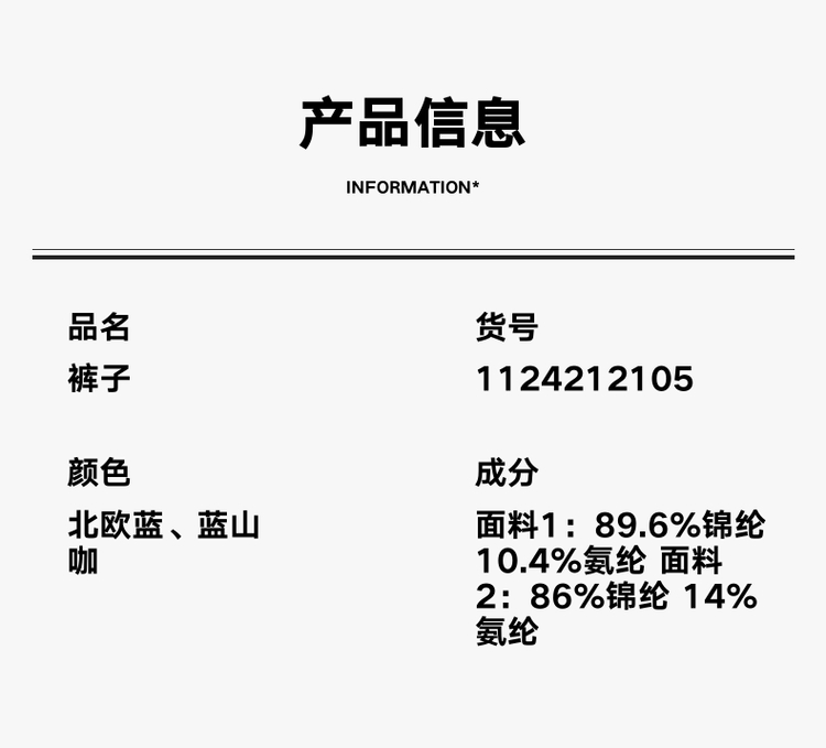 材質成分 | 聚醯胺纖維(錦綸)89.6% 聚氨酯彈性纖維(氨綸)10.4% |