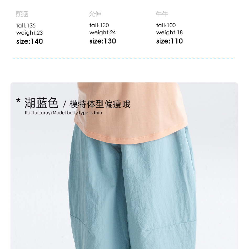 咕嚕日記童裝兒童休閒褲親子裝25夏季廓形九分褲百搭男女童褲子