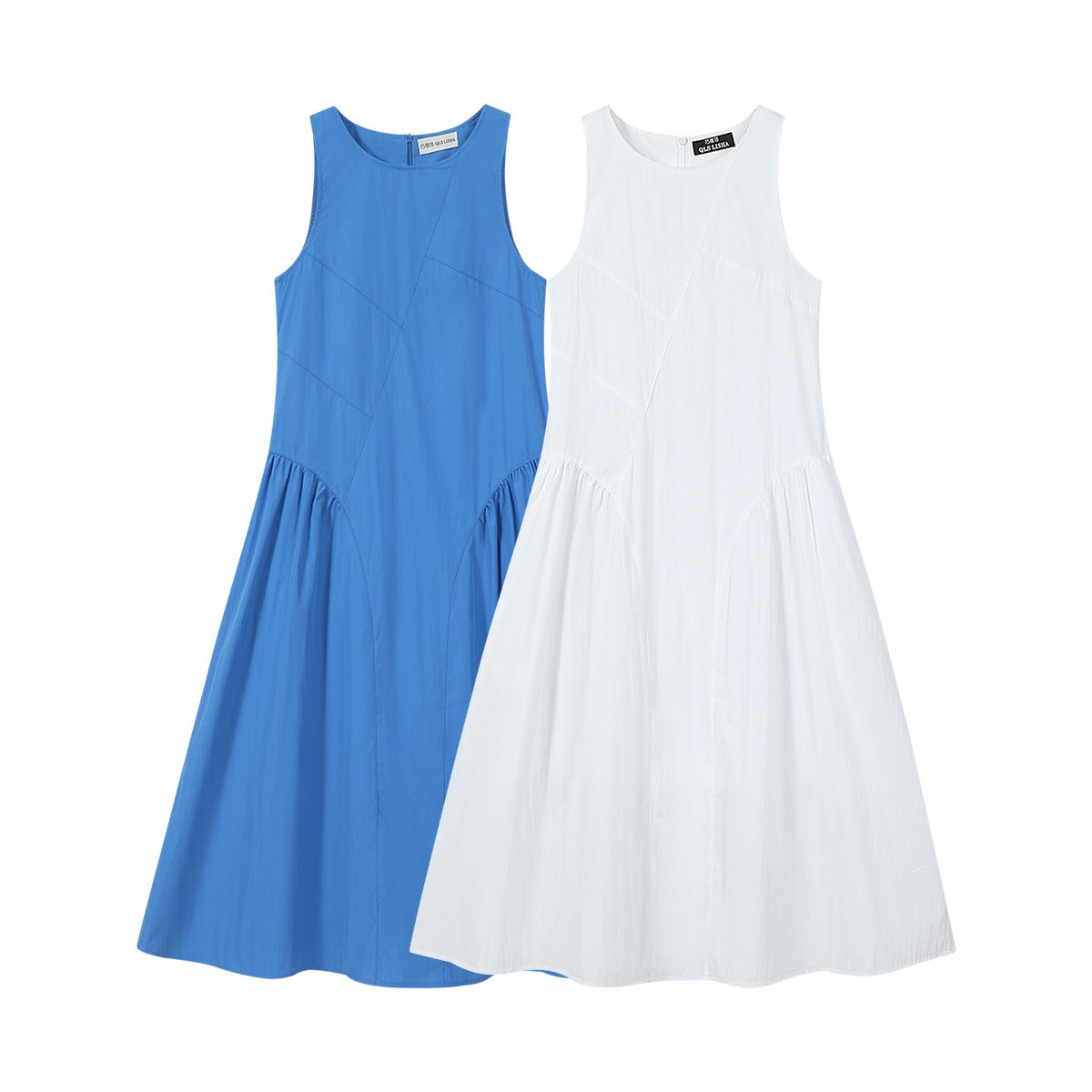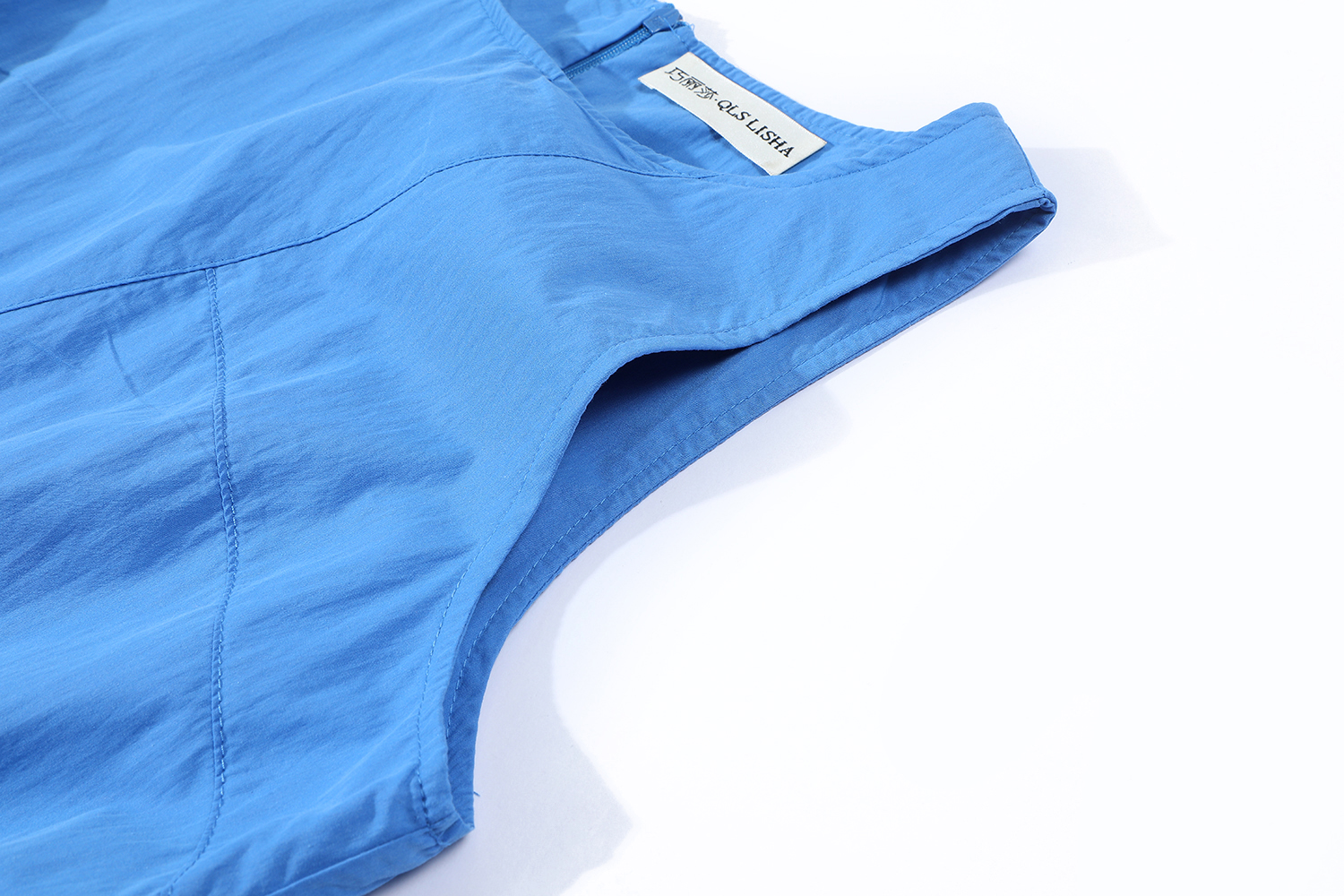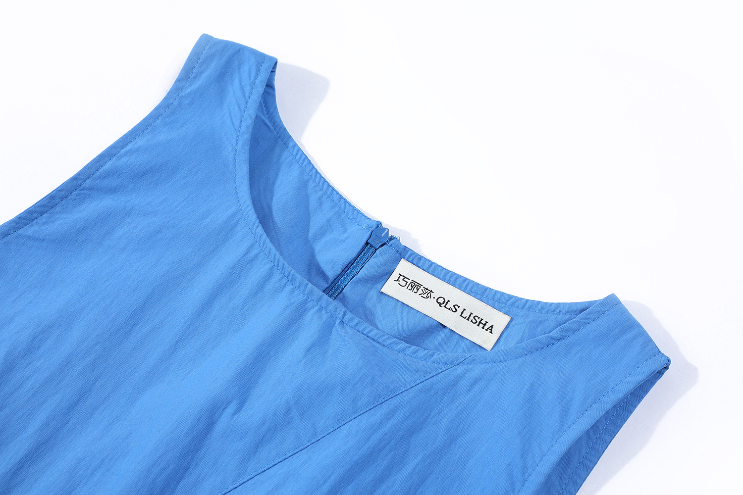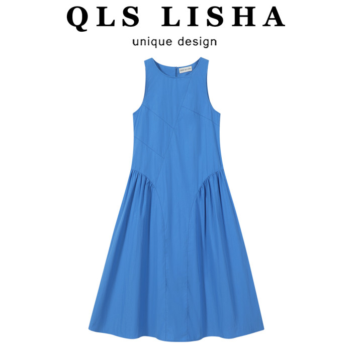 巧麗莎超好看獨特漂亮克萊因藍長裙子女夏2025新款無袖氣質連衣裙