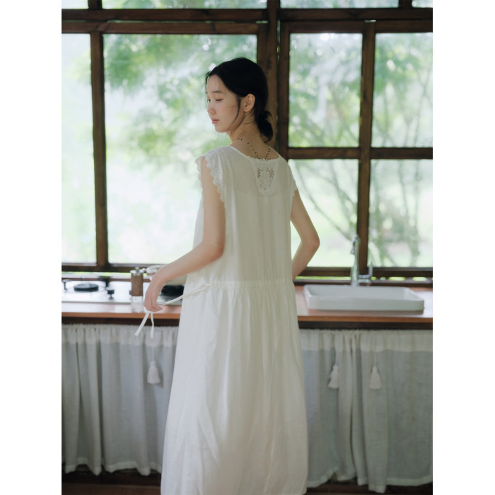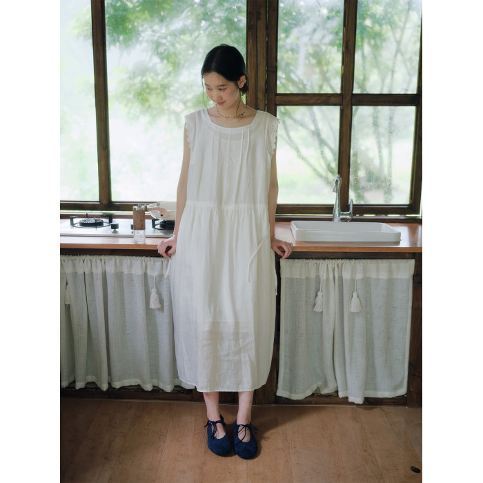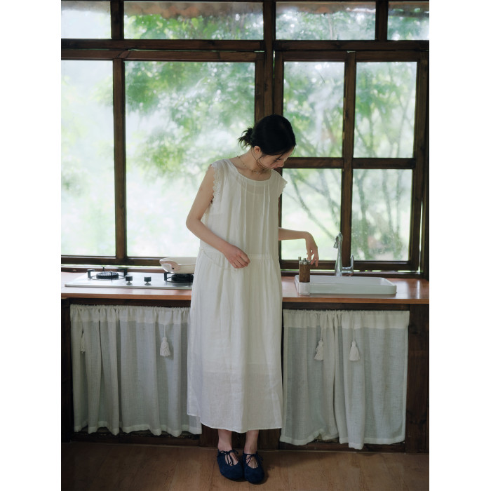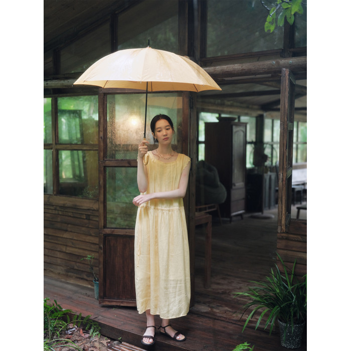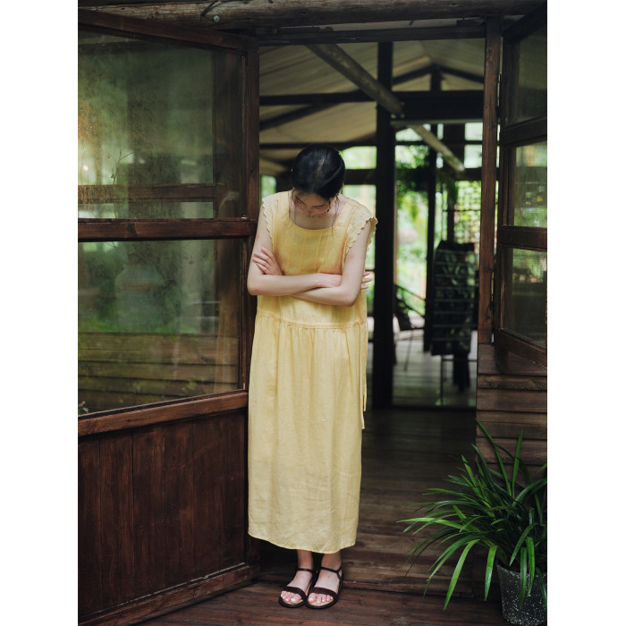 說與山聽「雙色玫瑰」100%亞麻無袖背心連衣裙復古感日系女夏2490