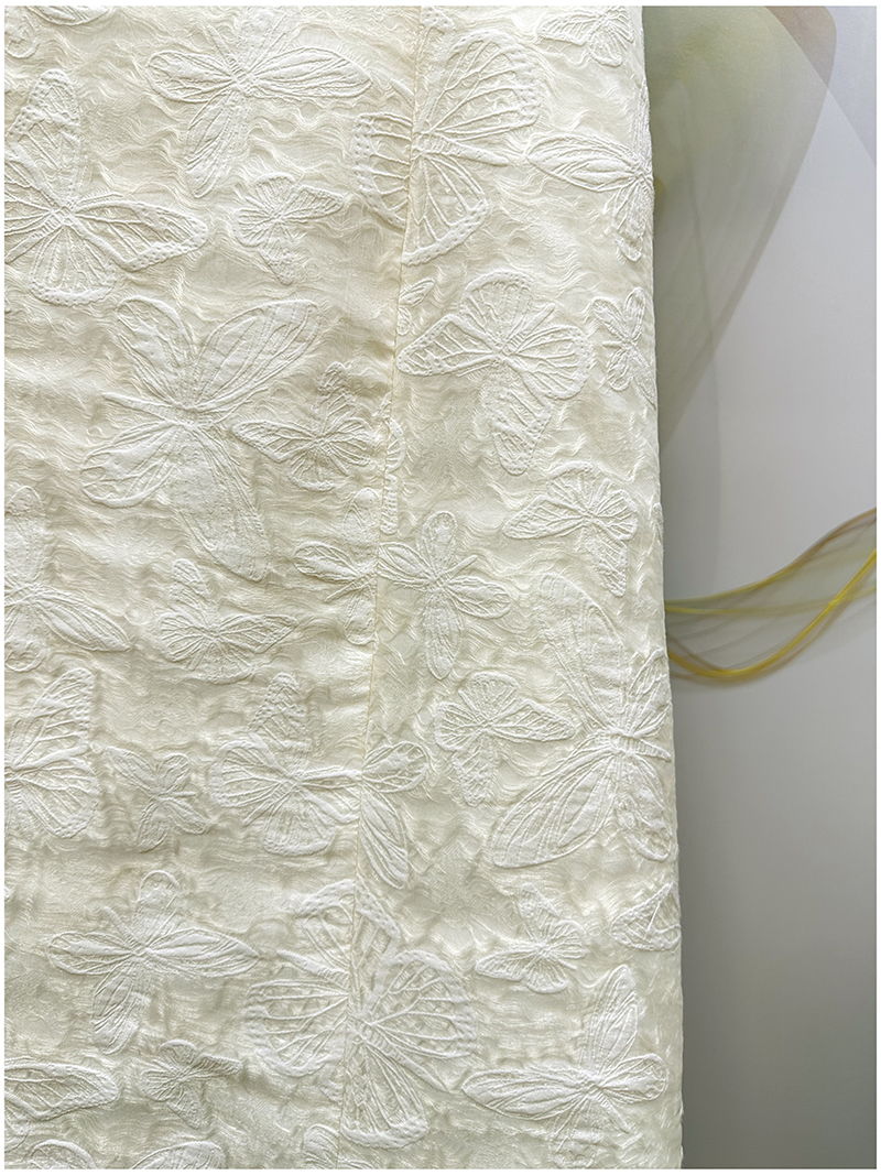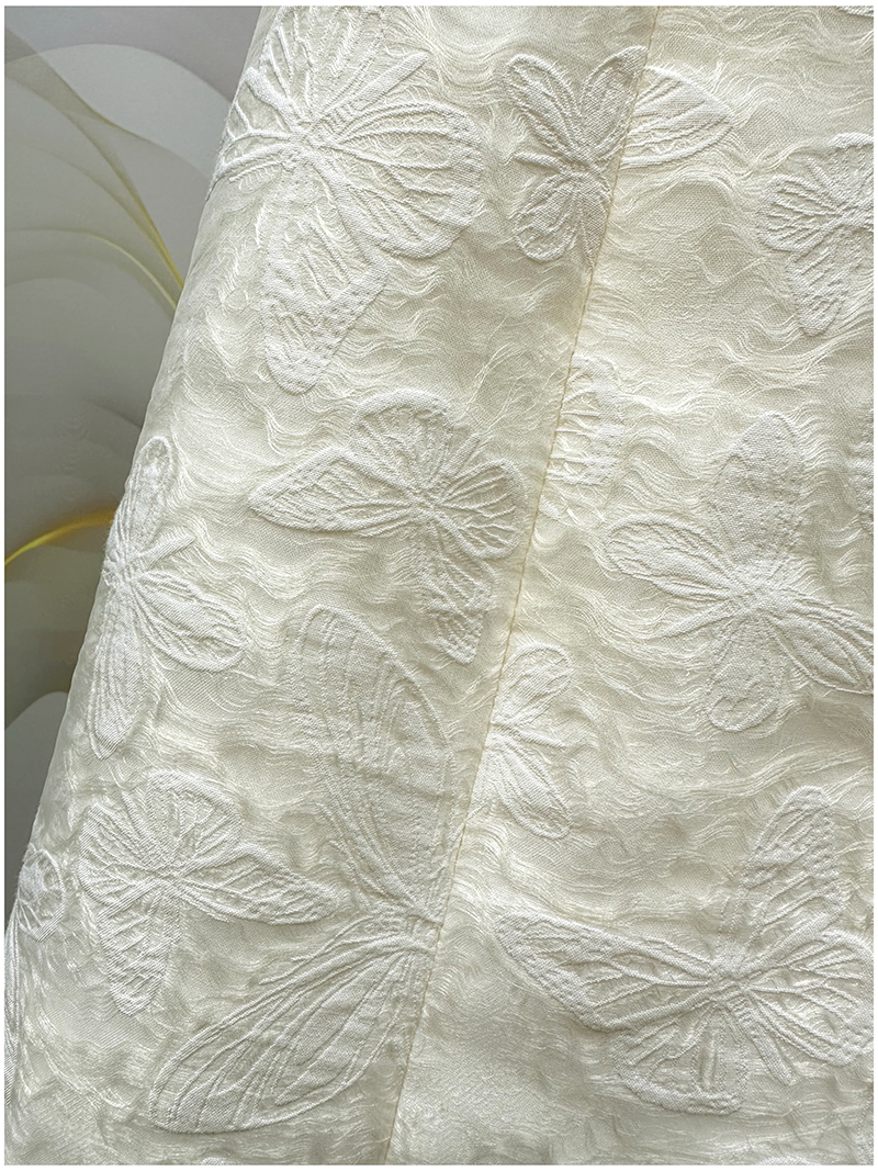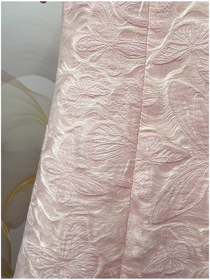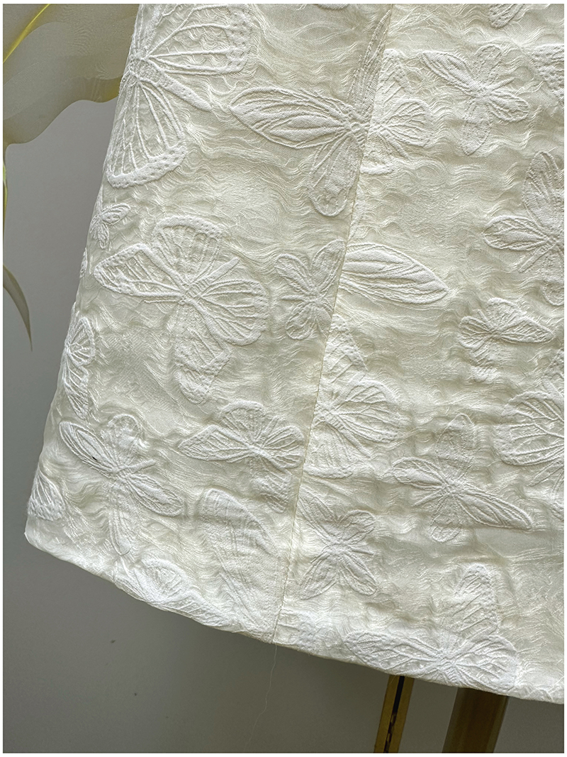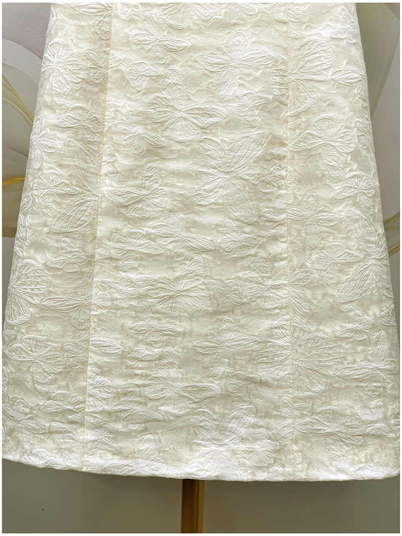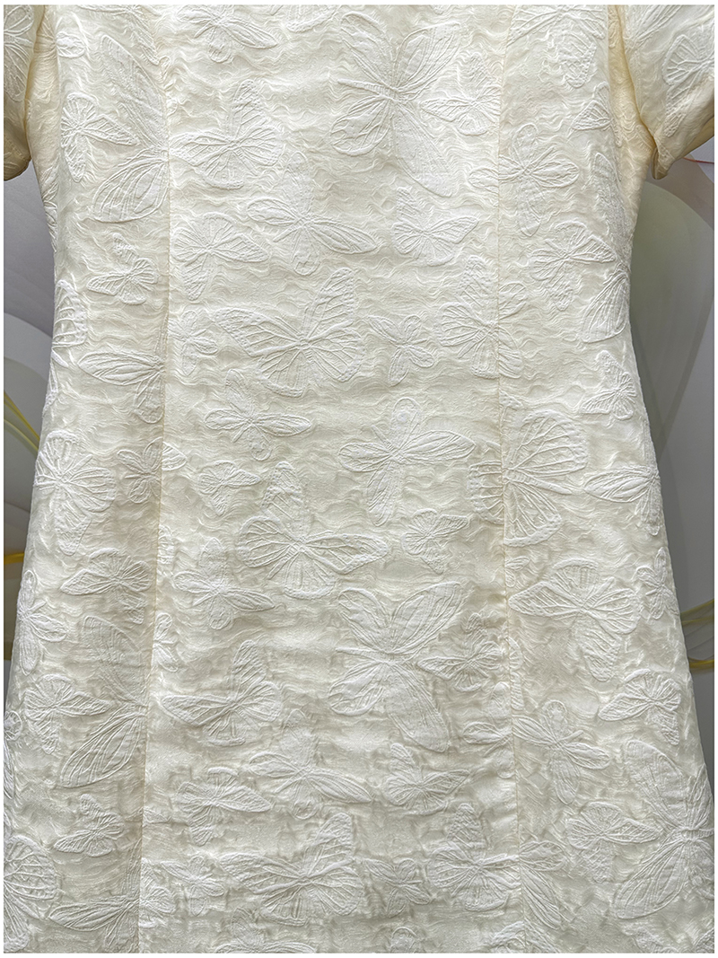 名媛通勤~進口天絲棉絨線刺綉釘珠圓領短袖a字裙高級感輕奢連衣裙