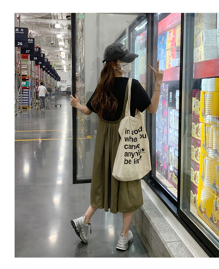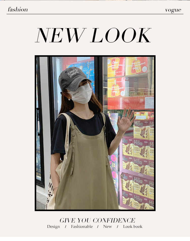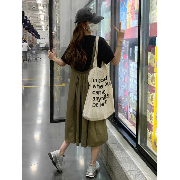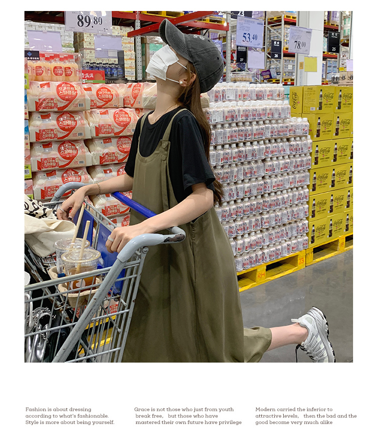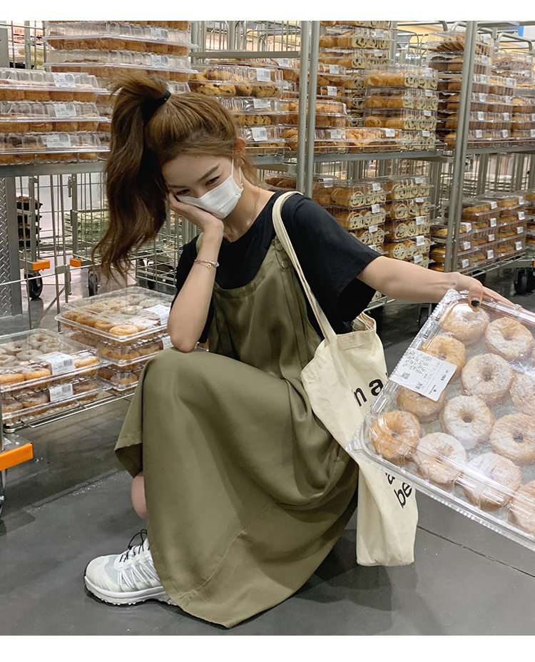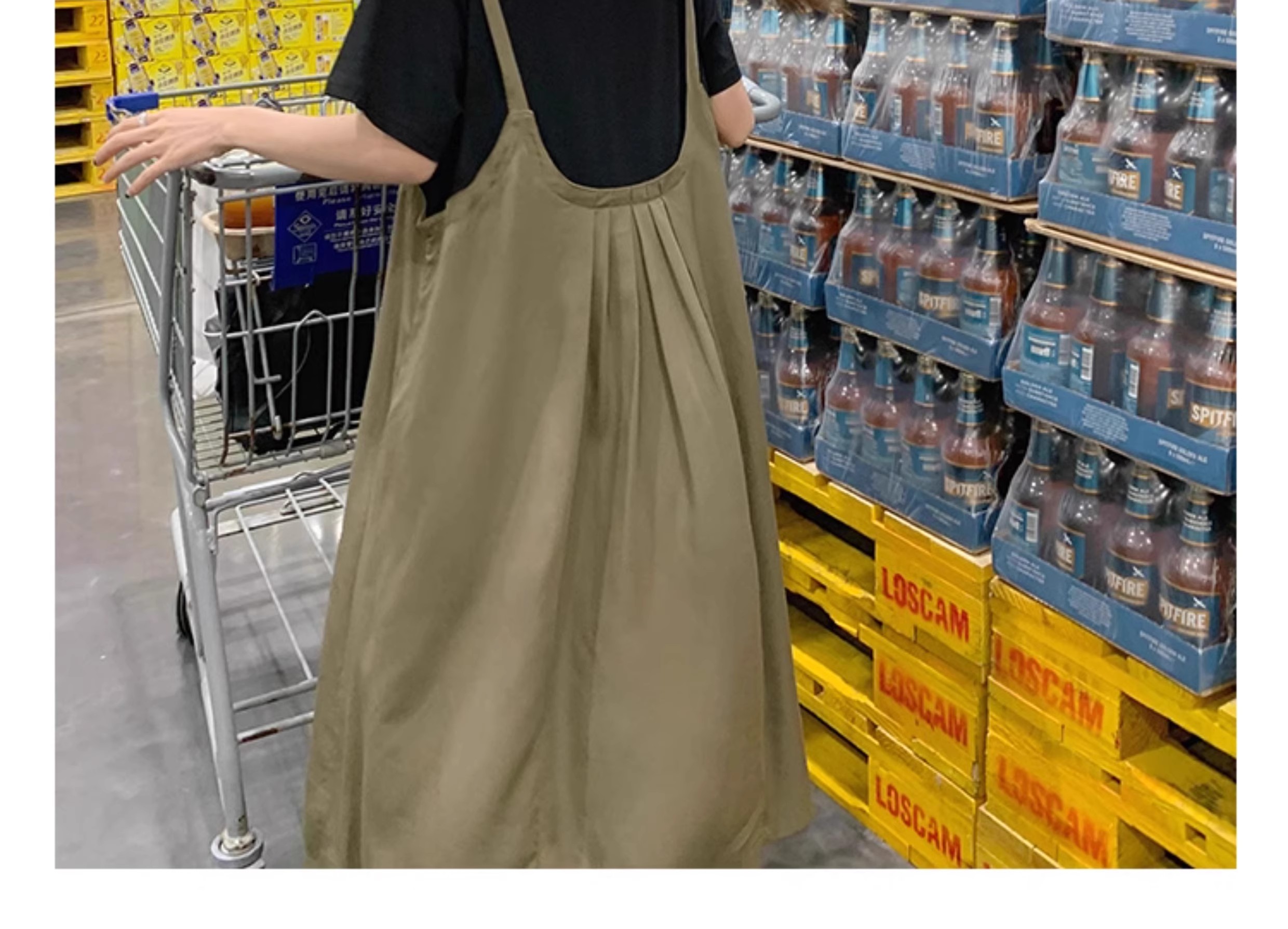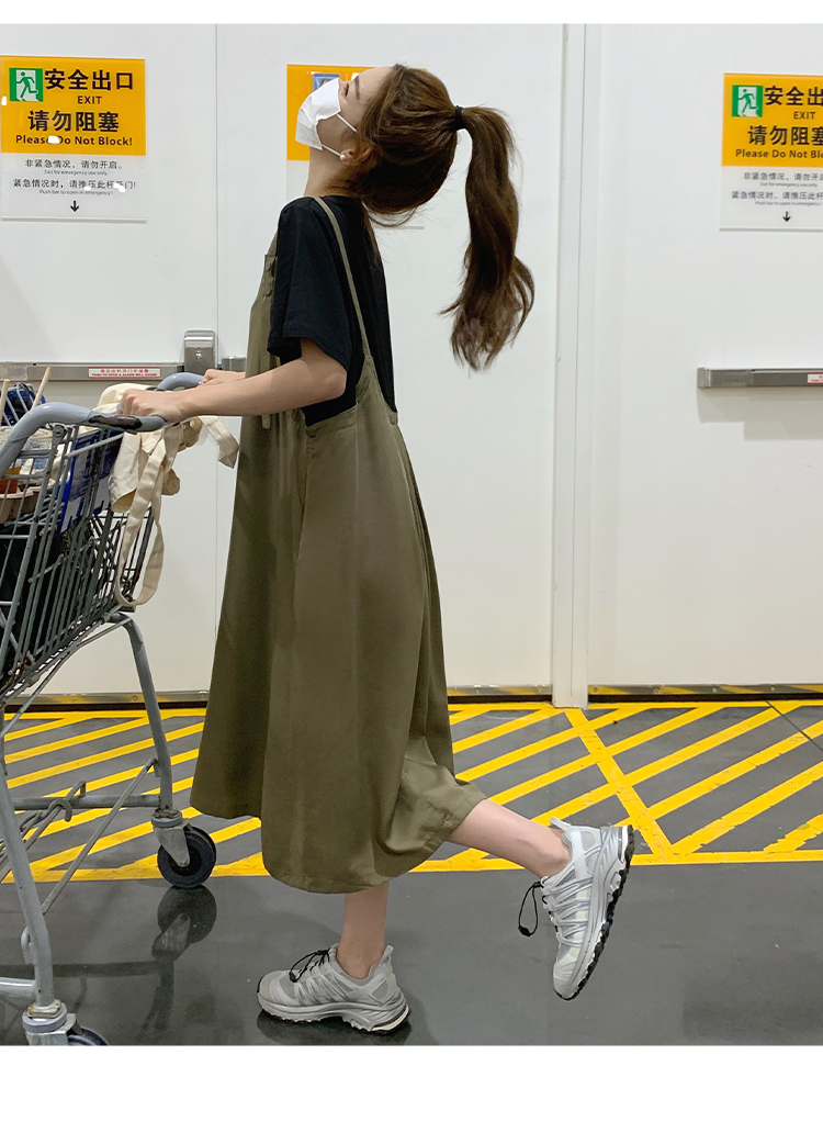假兩件連衣裙女夏季寬松大碼微胖mm孕婦遮肚子減齡顯瘦中長背帶裙