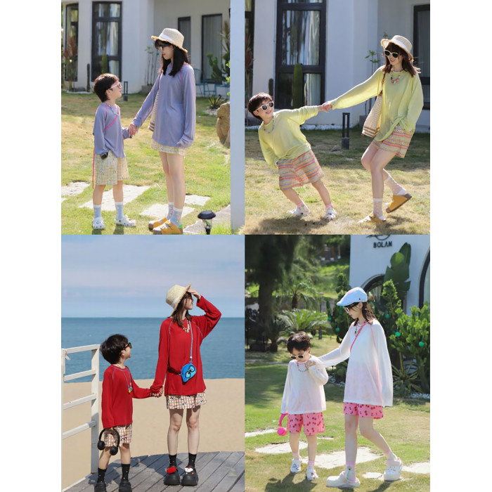 防曬衣女童親子裝一家三口四口夏季母子母女全家裝沙灘海邊度假夏
