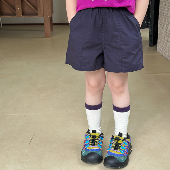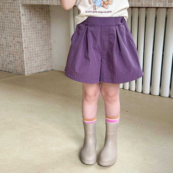 艾摩貝貝2025夏兒童韓版休閒寬松純棉熱褲女童純色壓褶兩粒釦短褲