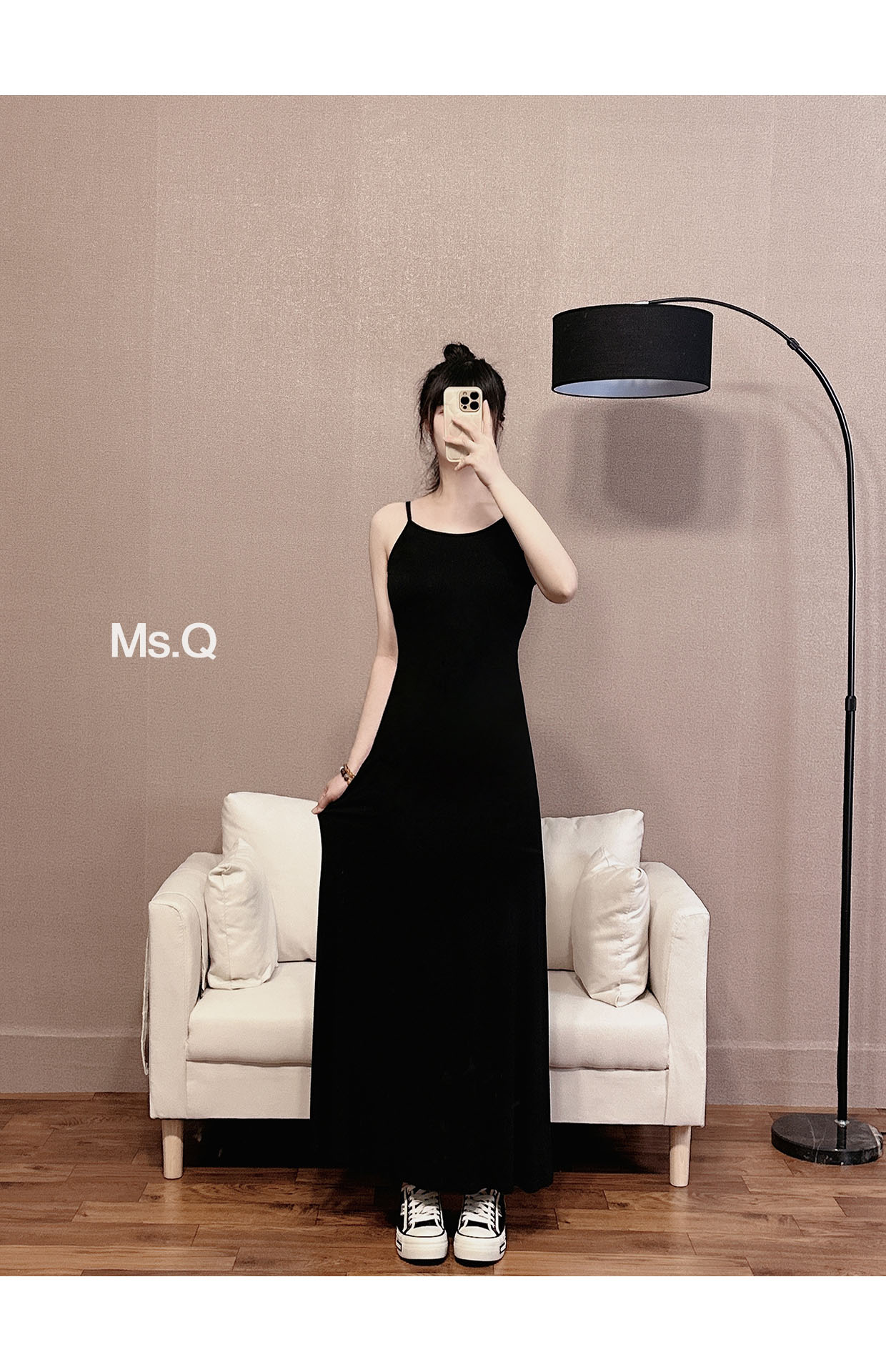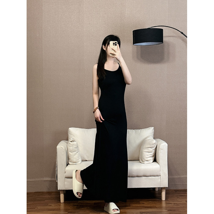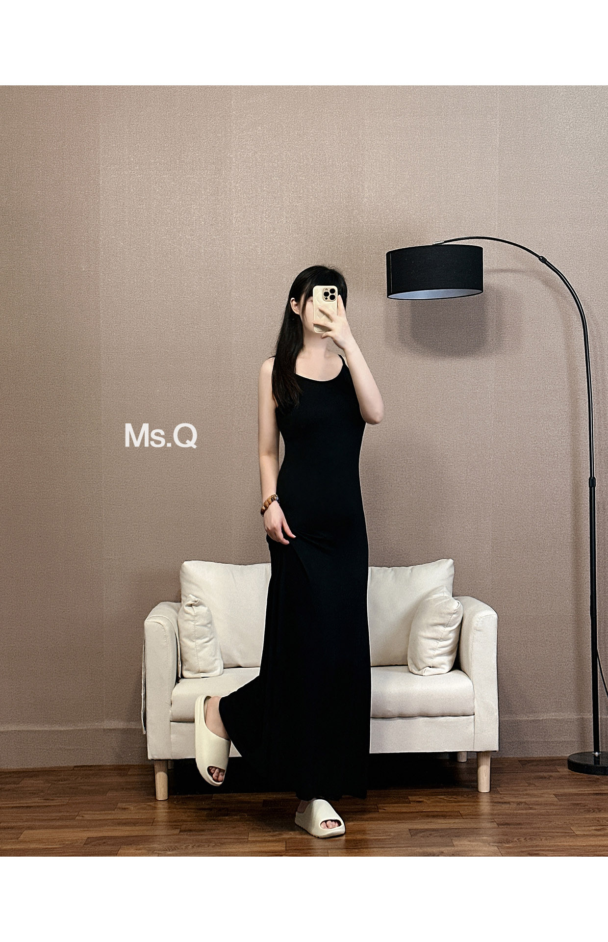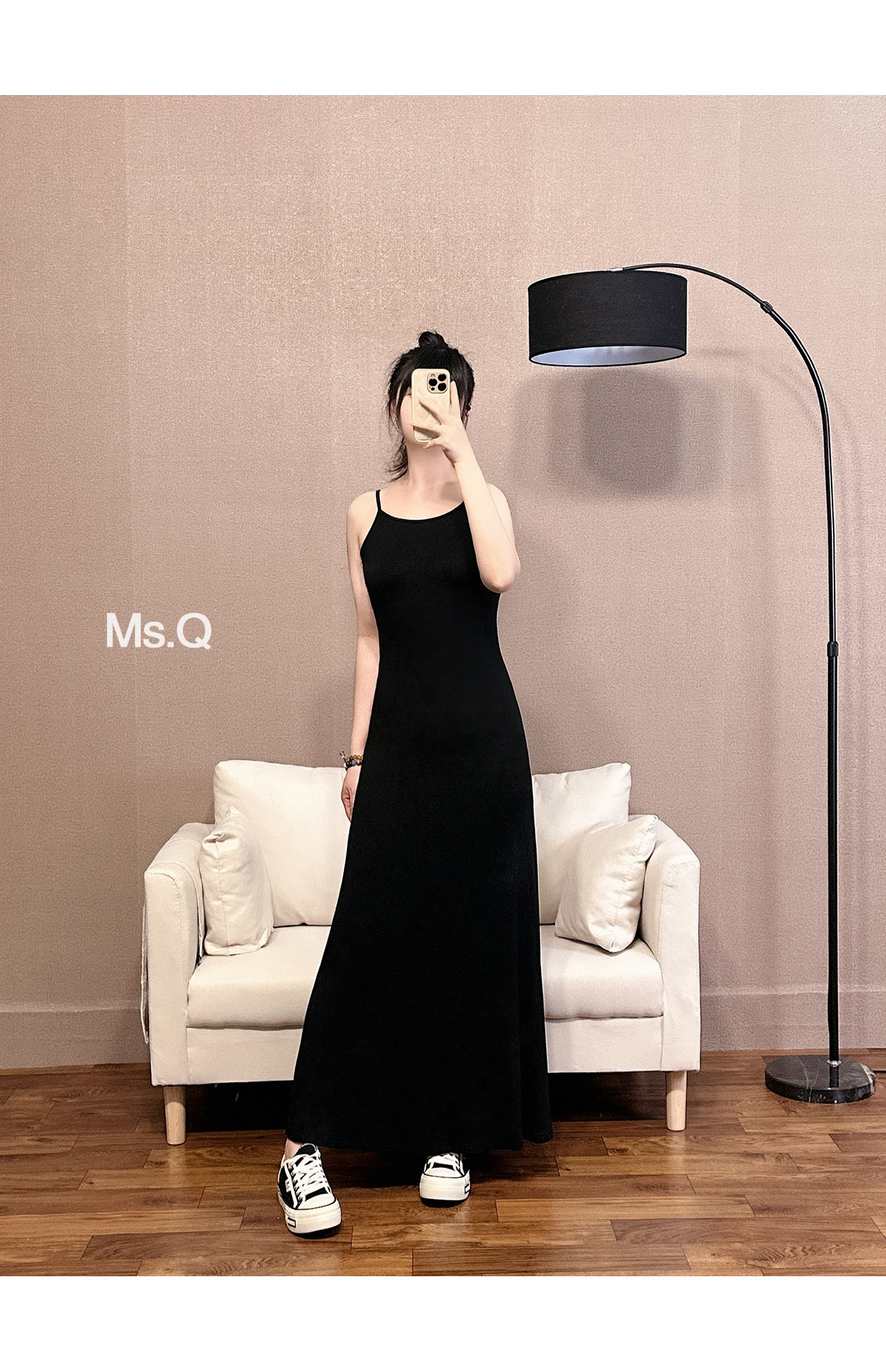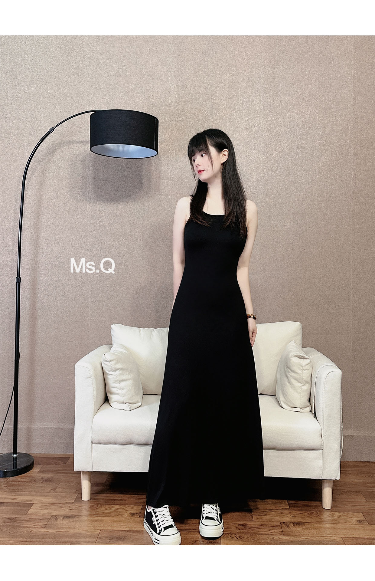 MSQ垂感莫代爾連衣裙女吊帶裙2025夏收腰露肩無袖大擺裙打底長裙