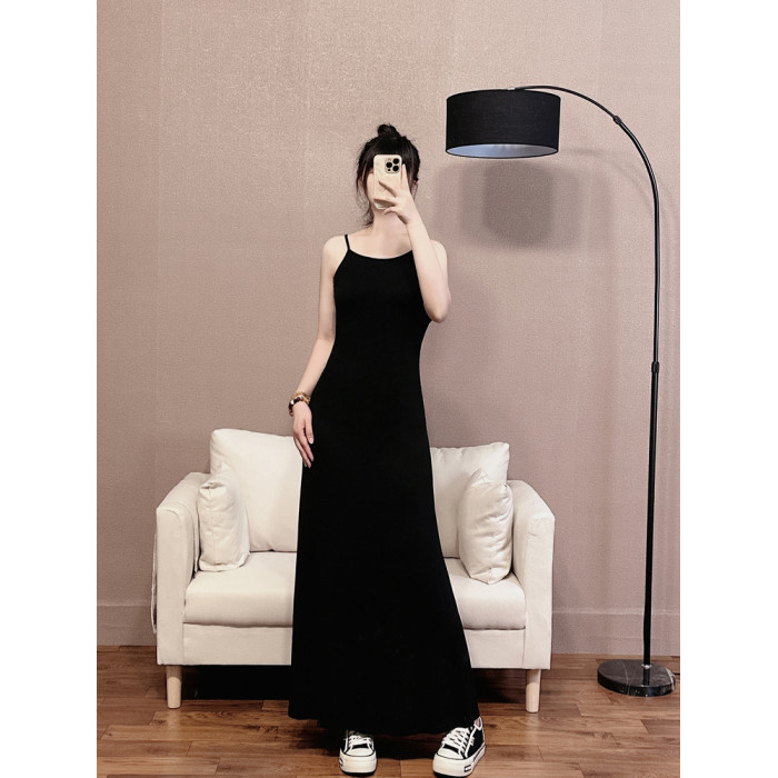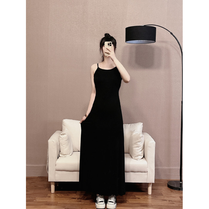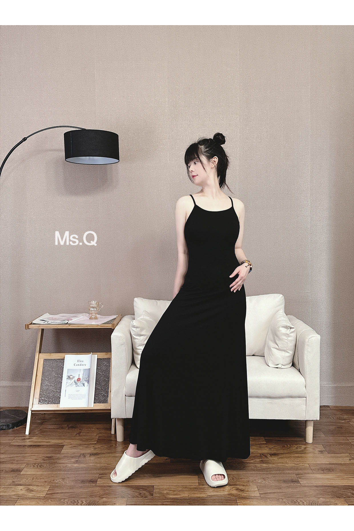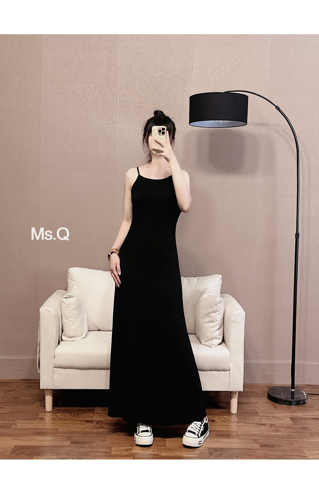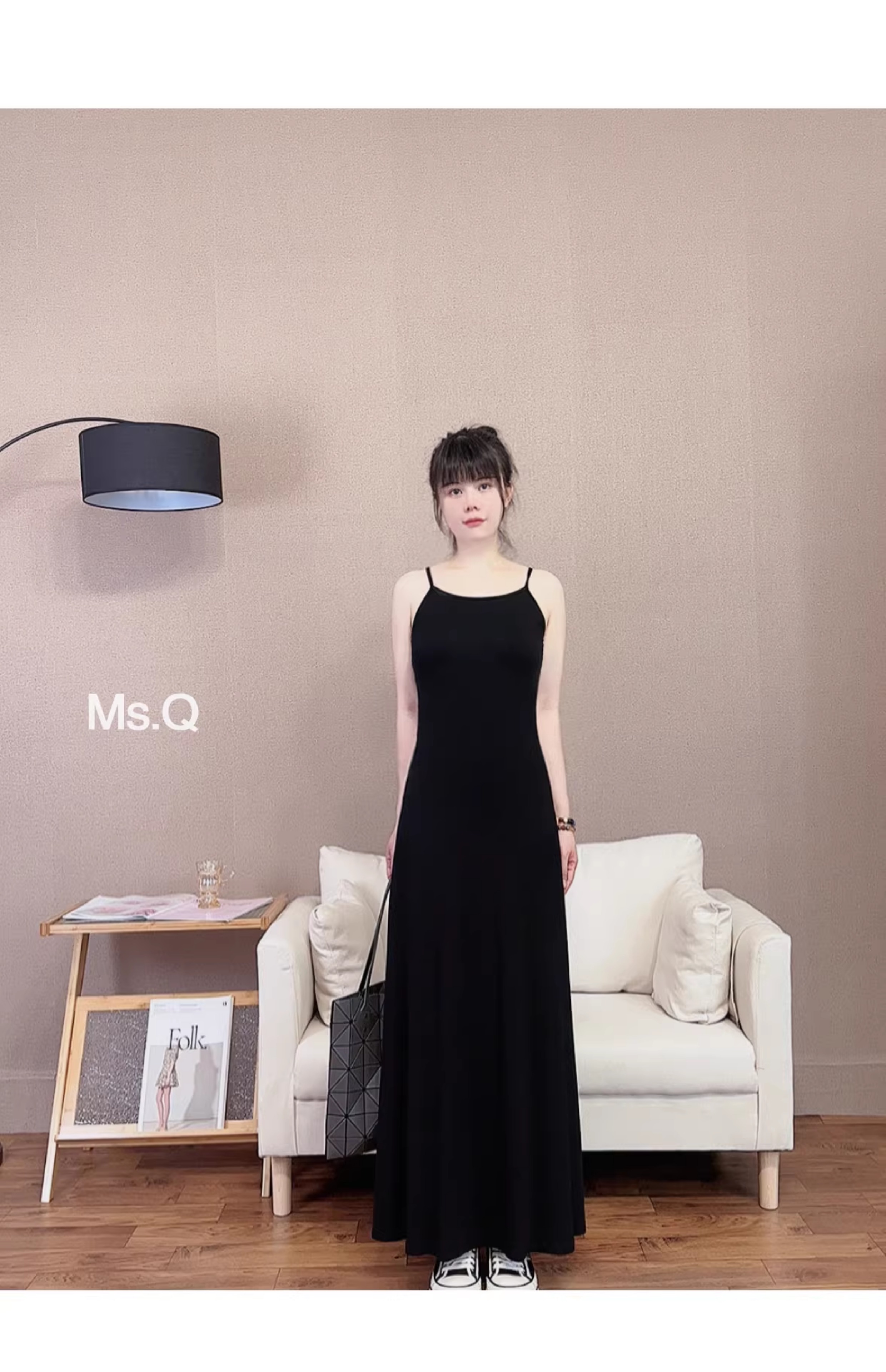 MSQ垂感莫代爾連衣裙女吊帶裙2025夏收腰露肩無袖大擺裙打底長裙