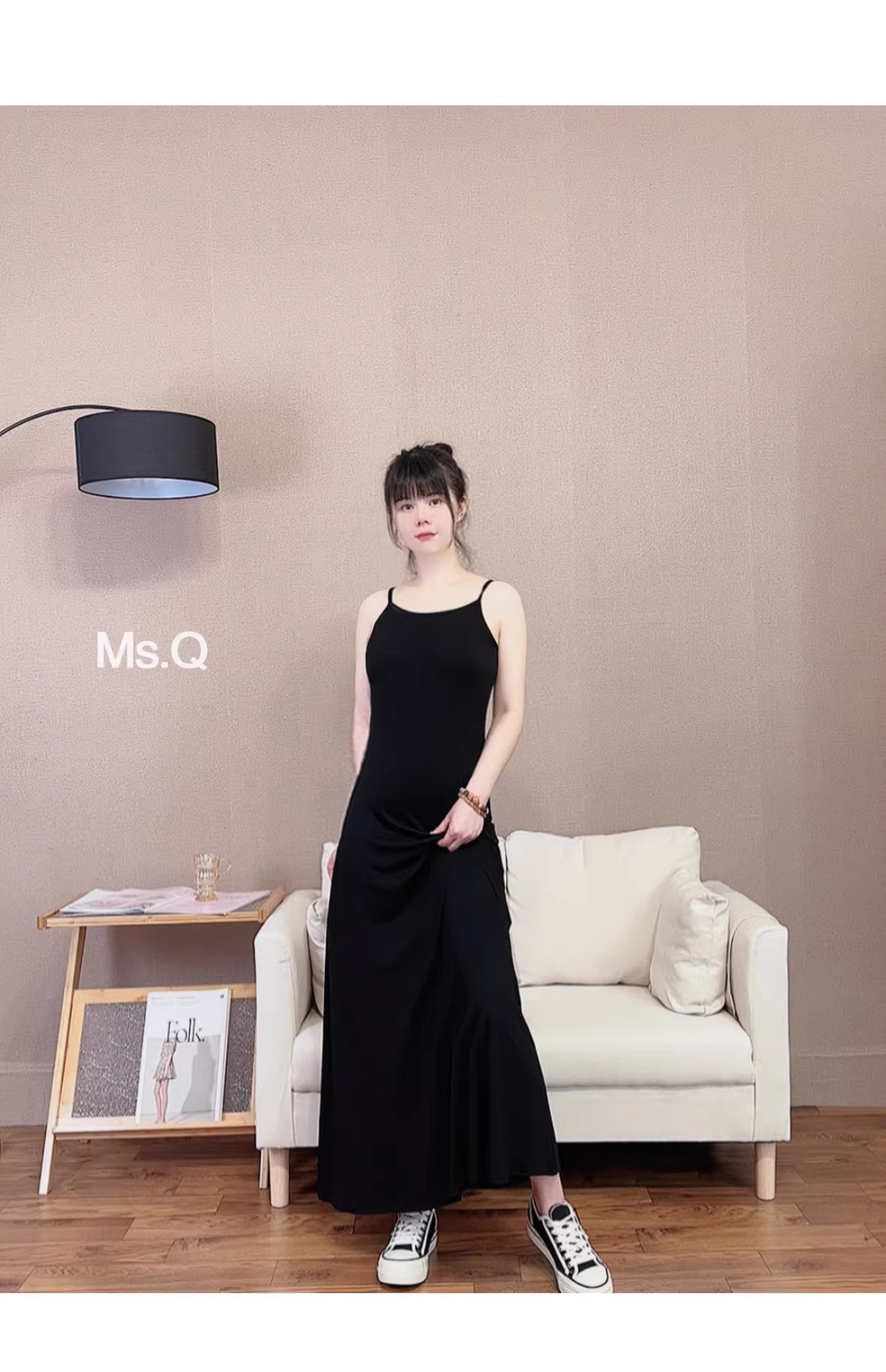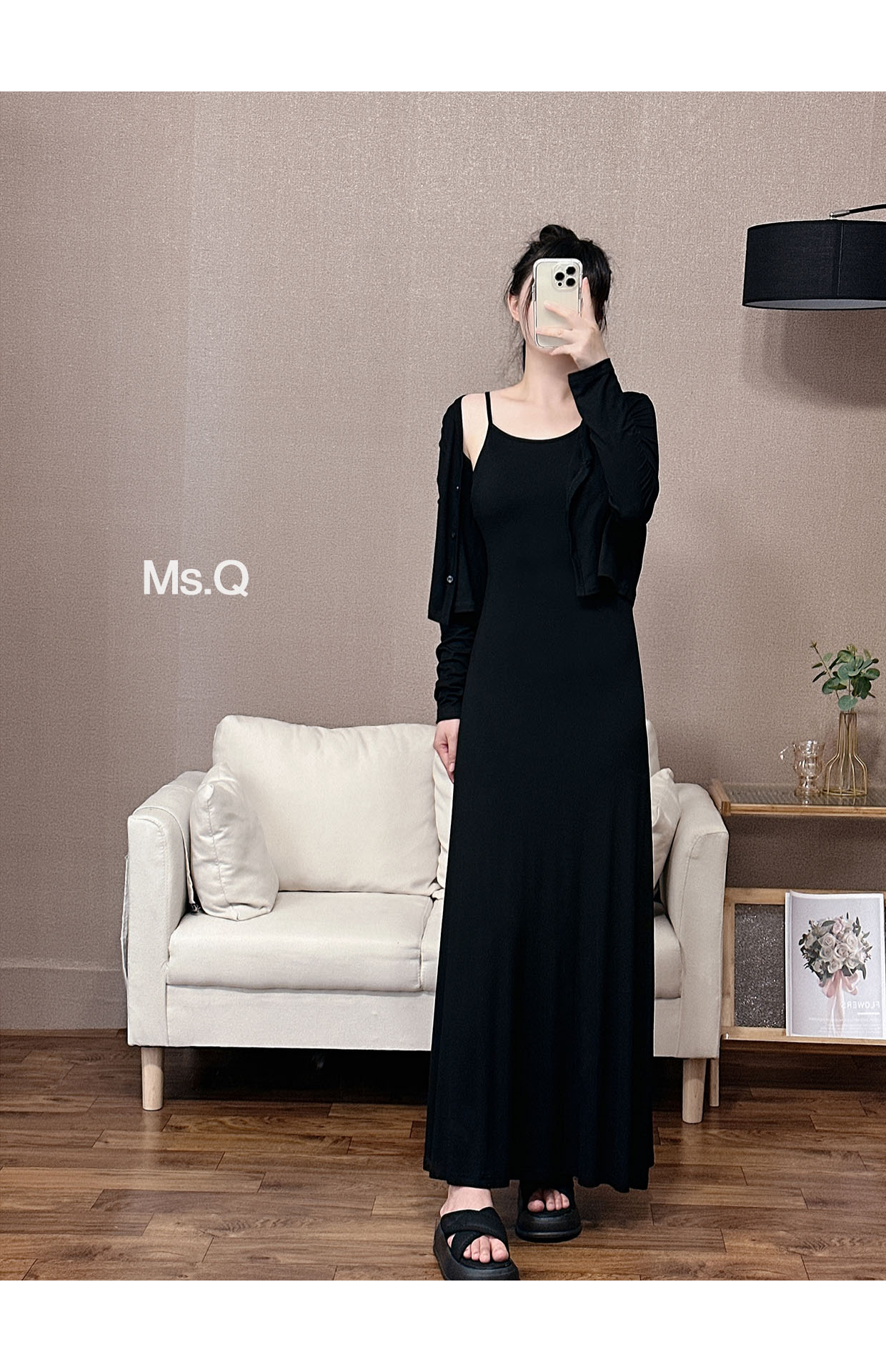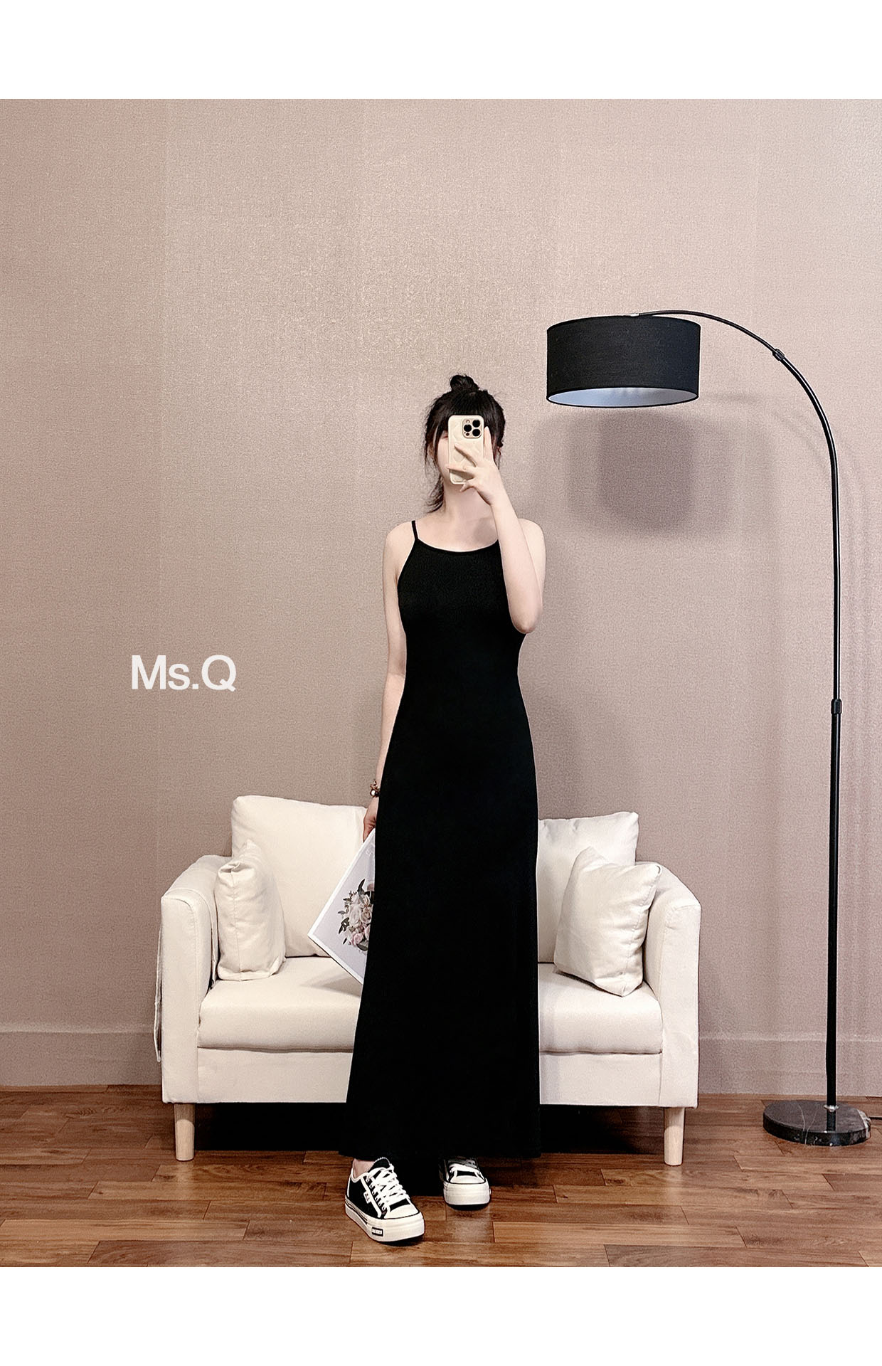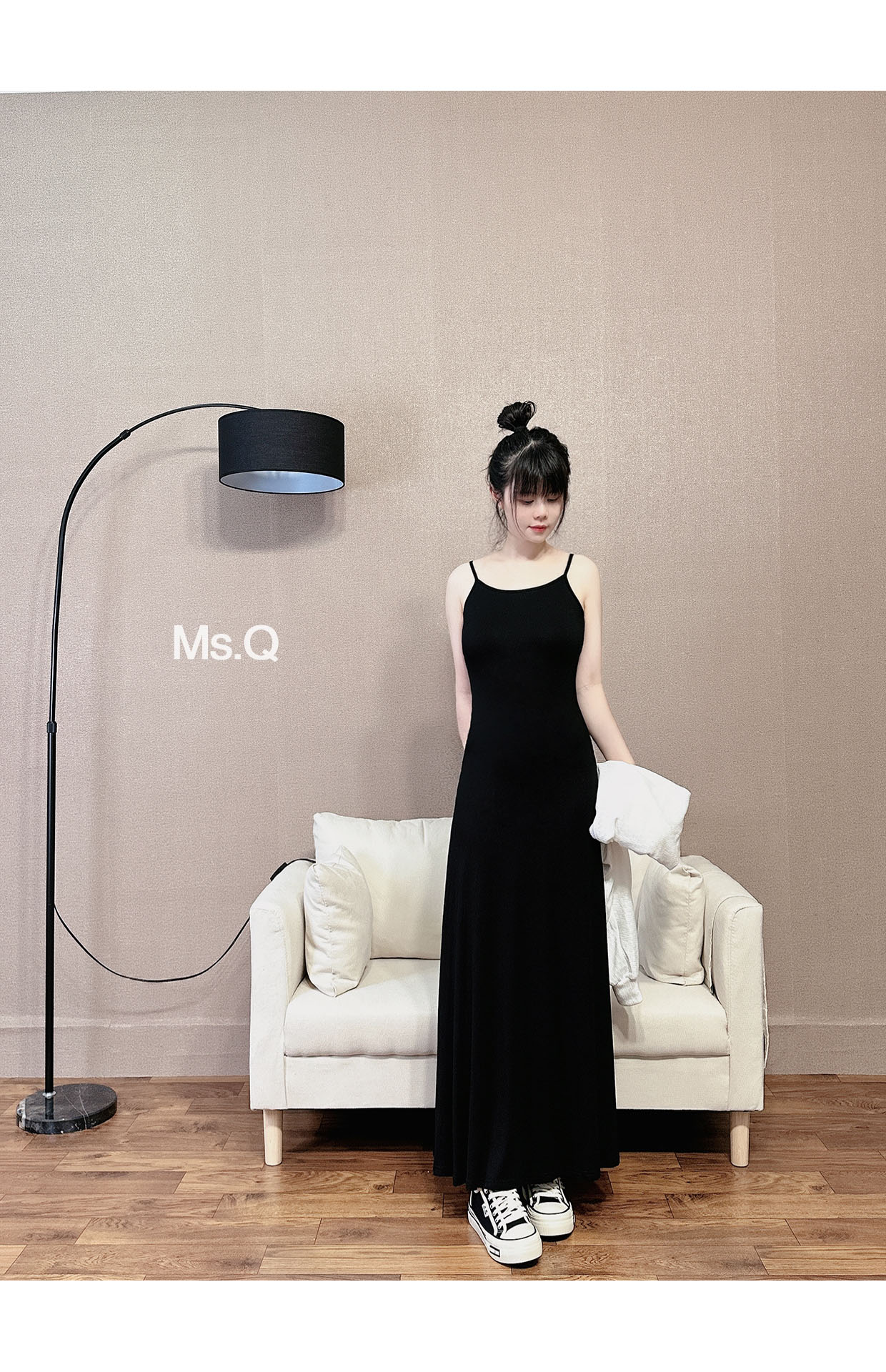 MSQ垂感莫代爾連衣裙女吊帶裙2025夏收腰露肩無袖大擺裙打底長裙