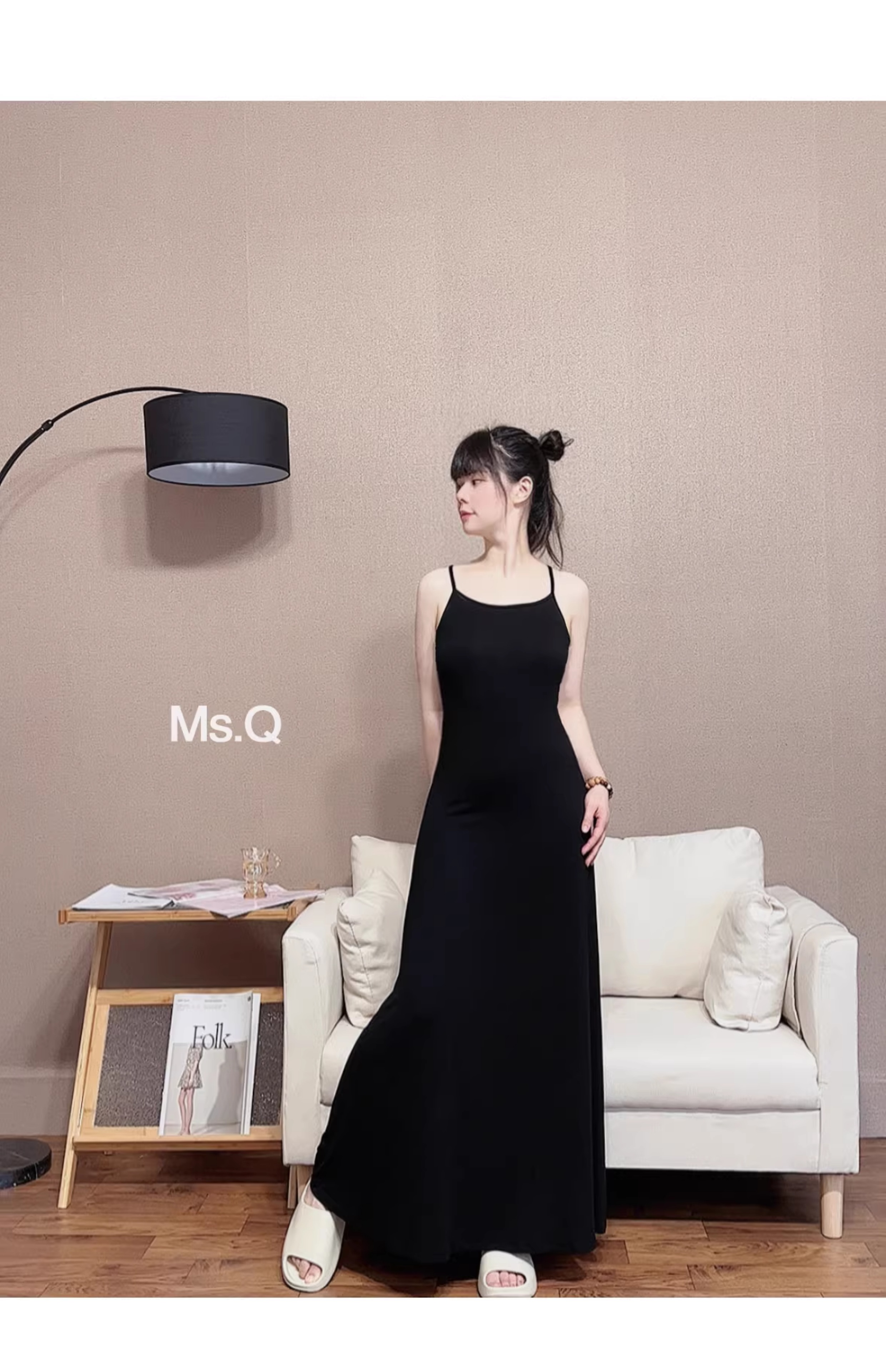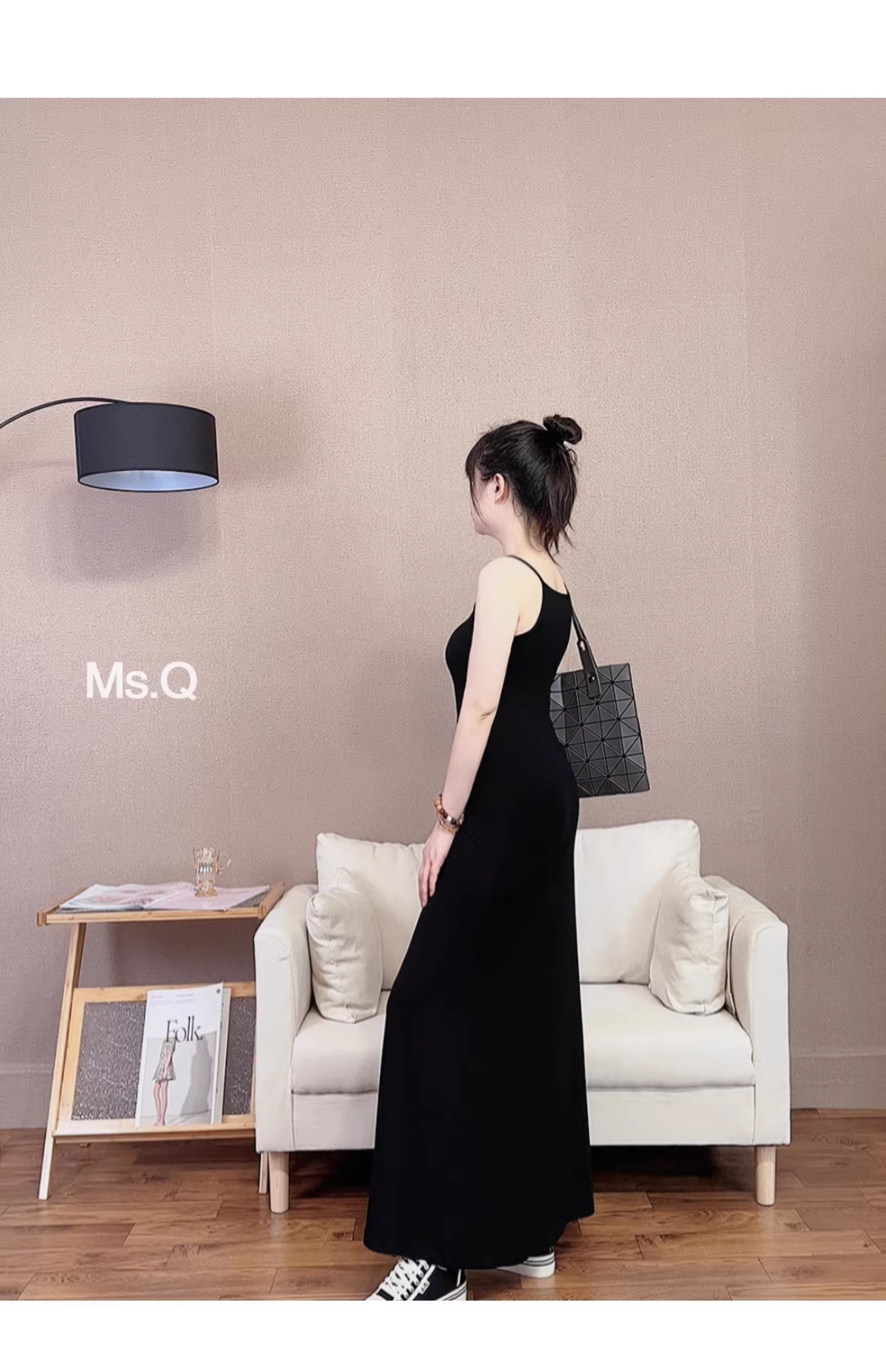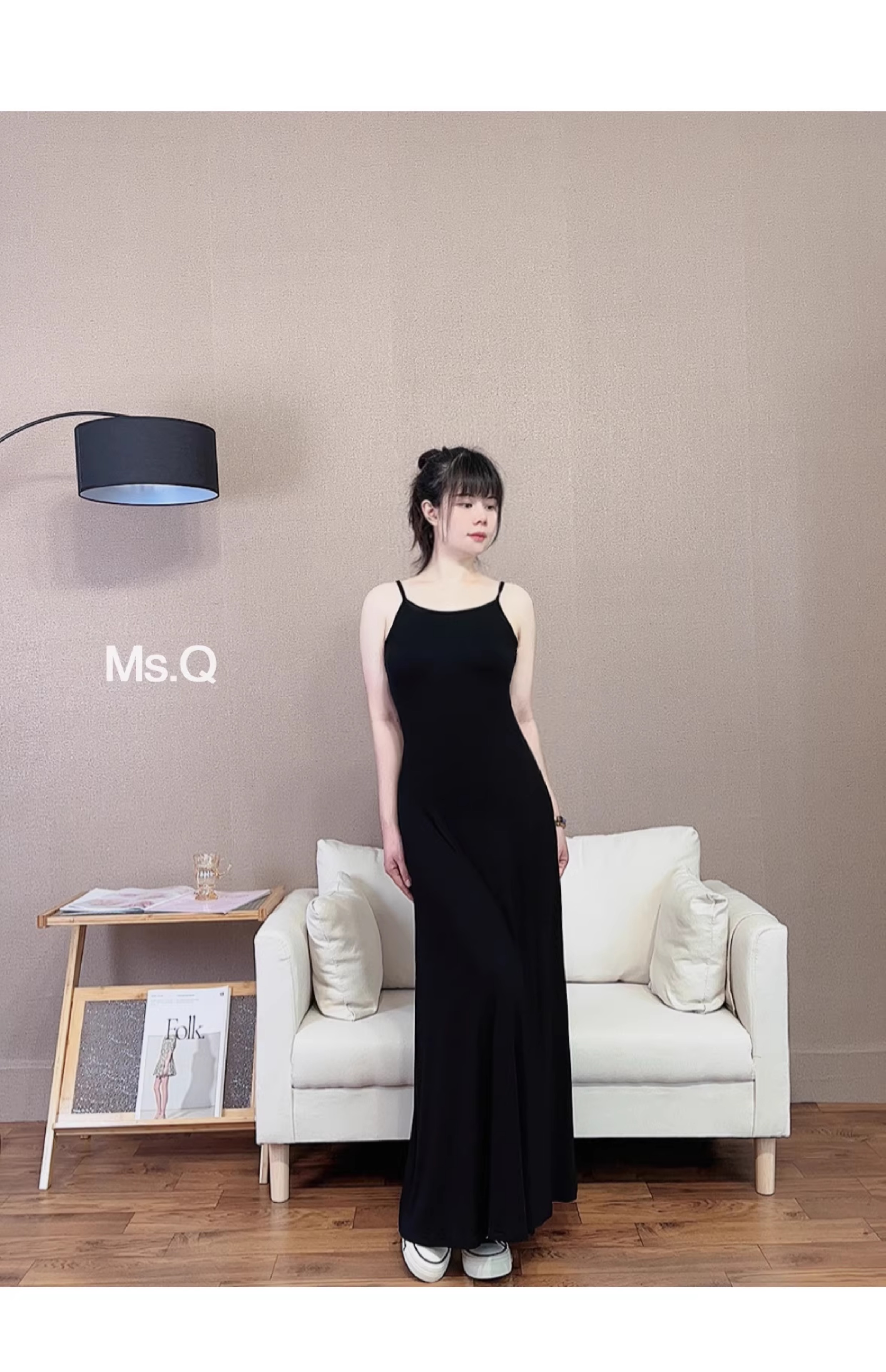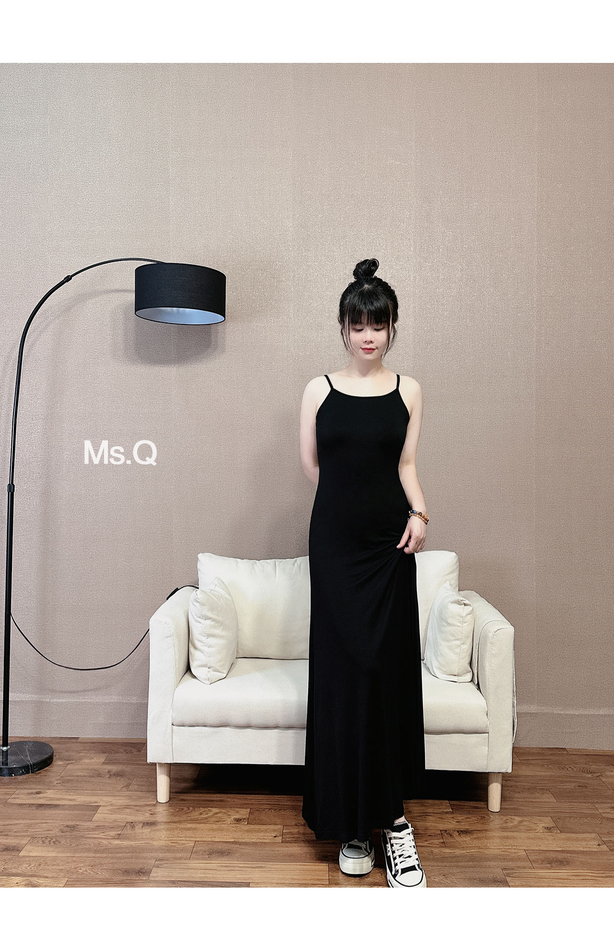 MSQ垂感莫代爾連衣裙女吊帶裙2025夏收腰露肩無袖大擺裙打底長裙