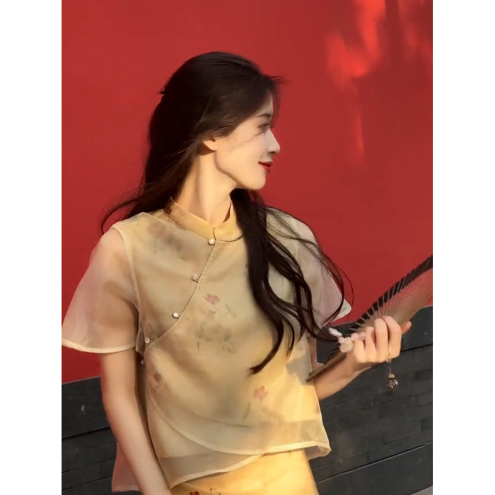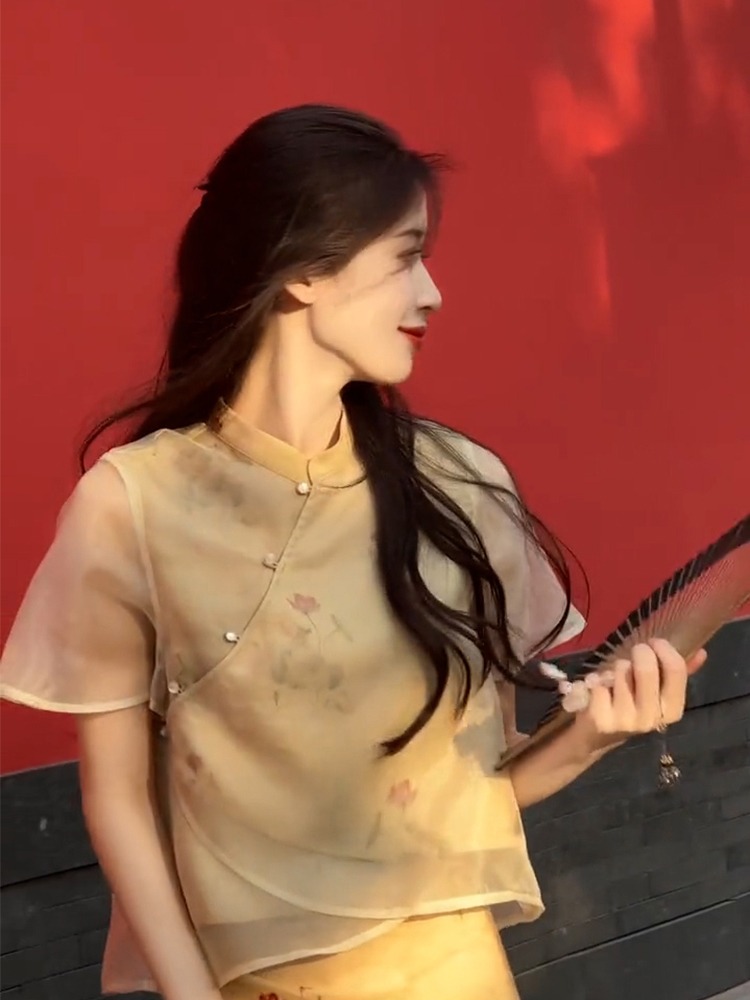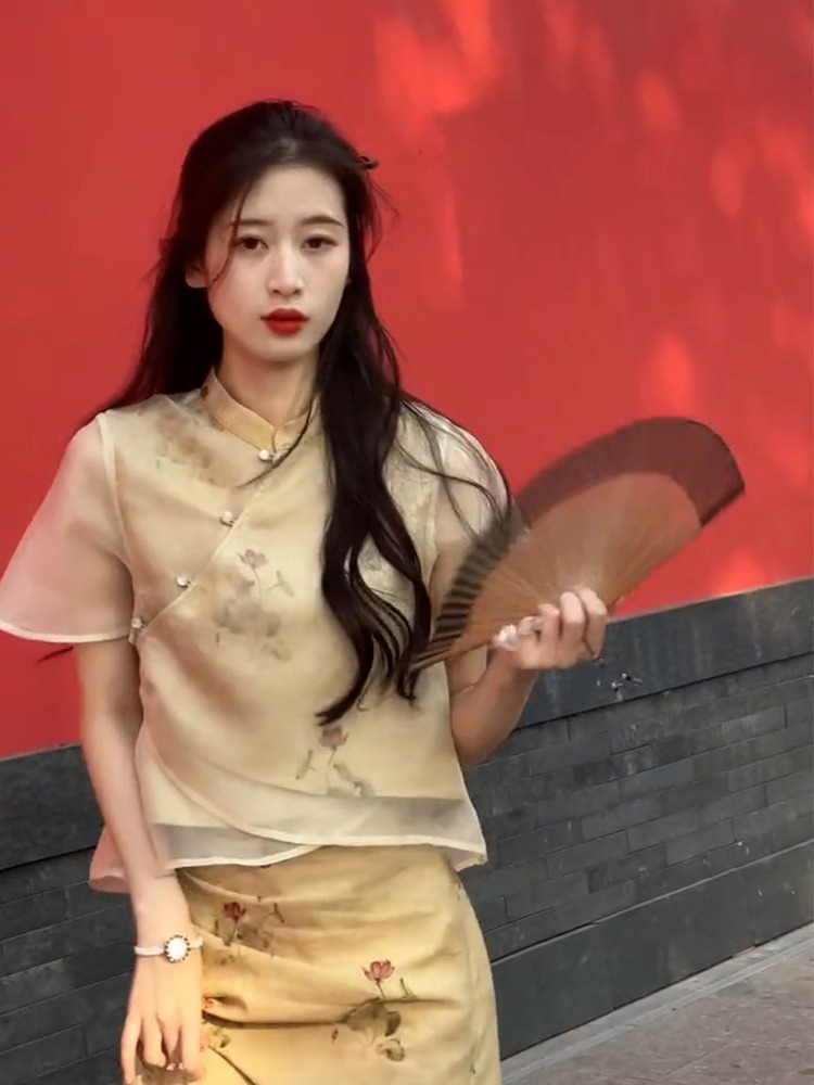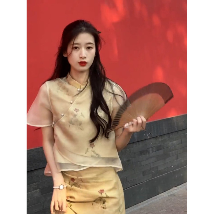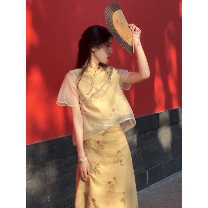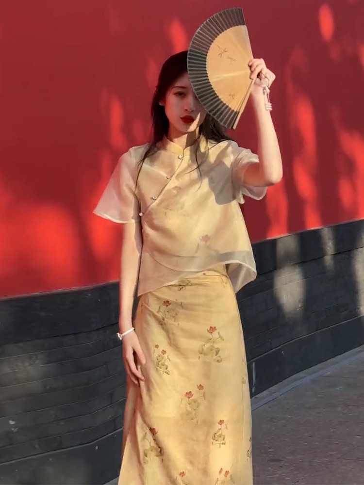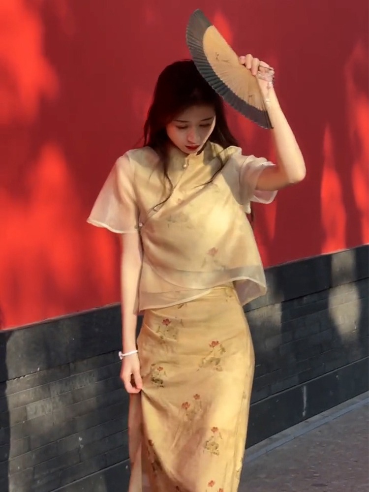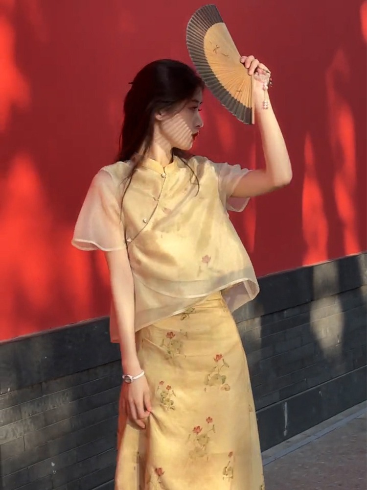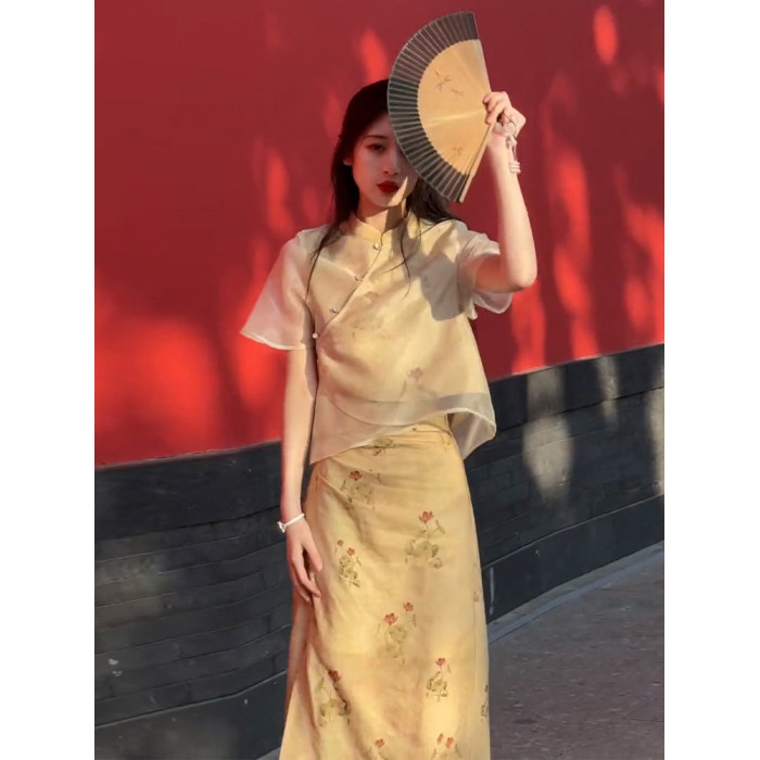 XZOXZO2025新款氣質高級感新中式國風改良旗袍印花連衣裙套裝裙夏