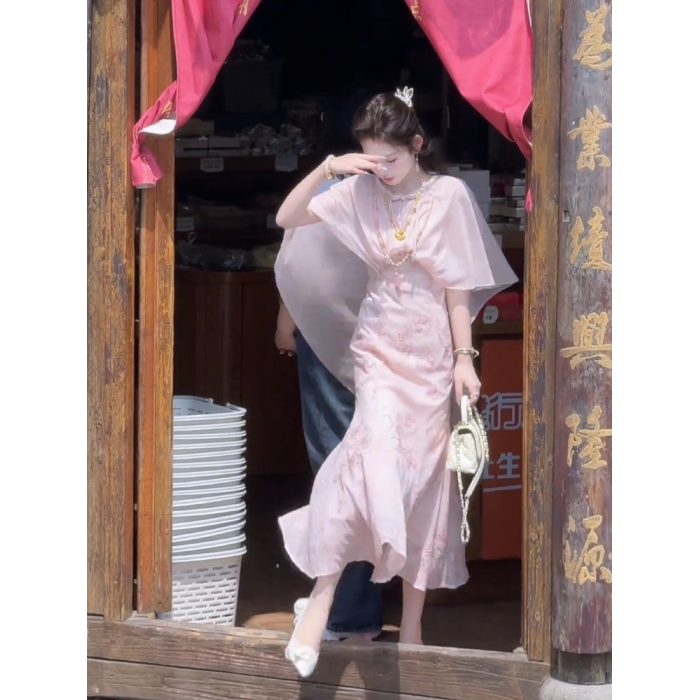 2025夏季法式獨特漂亮氣質女神範高級感小香風顯瘦粉色碎花連衣裙