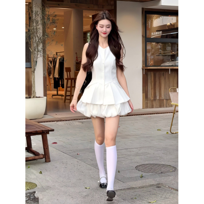 白色收腰顯瘦套裝女2025夏無袖氣質馬甲連衣裙兩件套小個子女神範