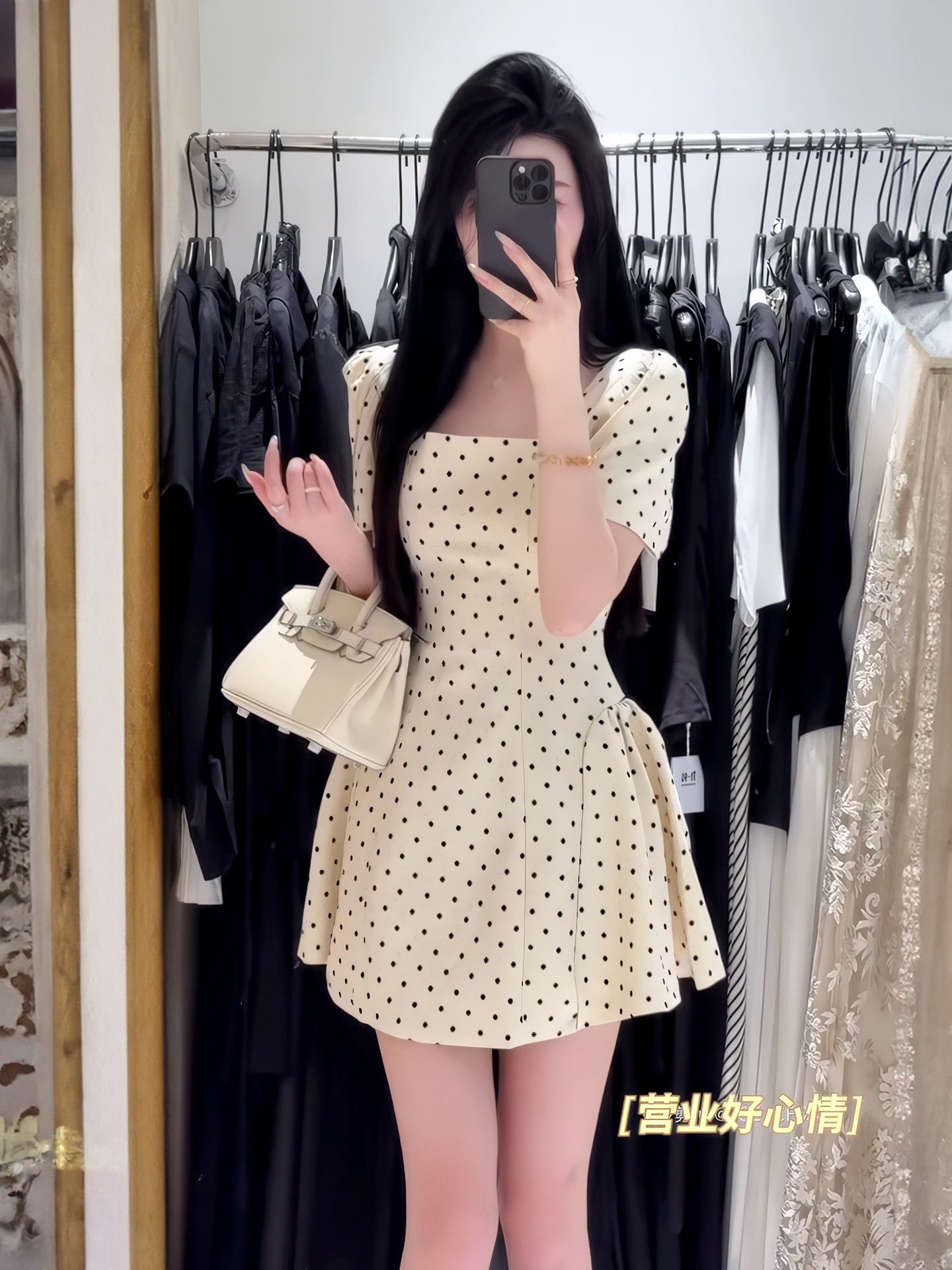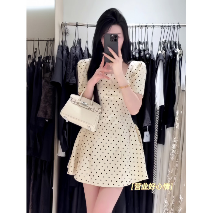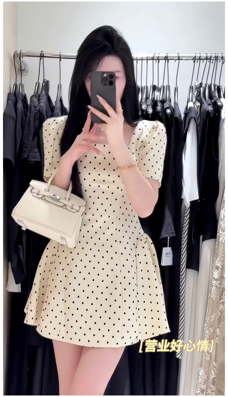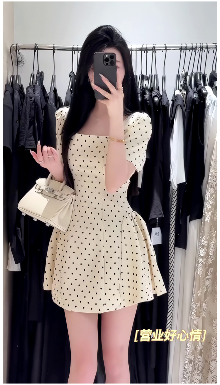 法式氣質方領高級感波點連衣裙女春夏季溫柔甜美收腰顯瘦a字短裙