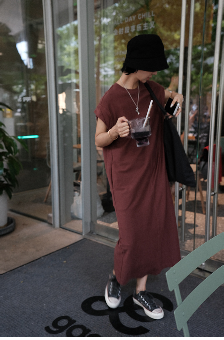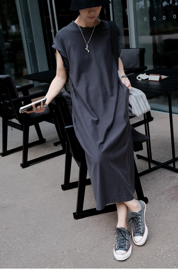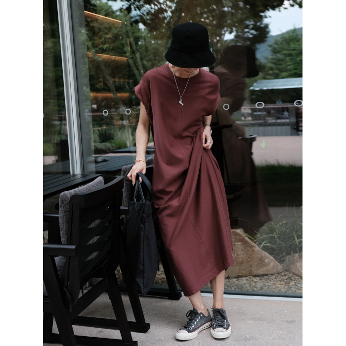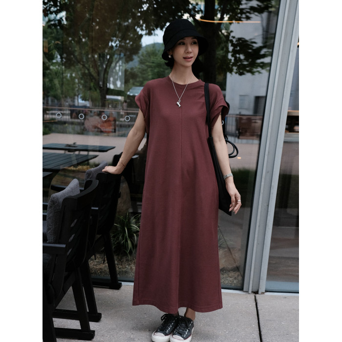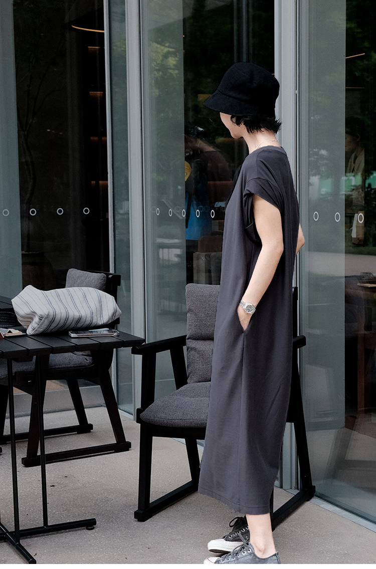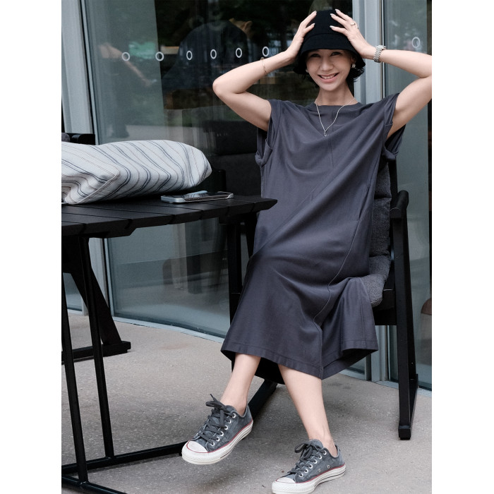 TT設計師【婉約】高級感氣質大碼T恤裙直筒連衣裙女長款2025新款