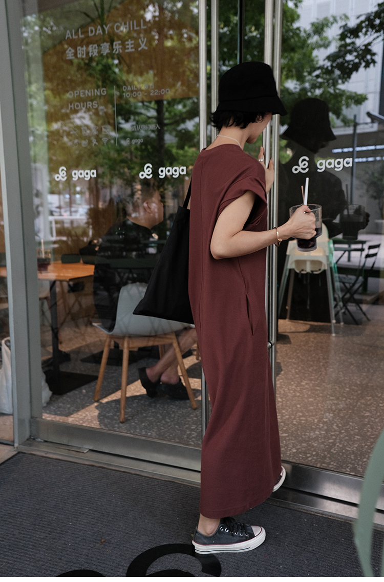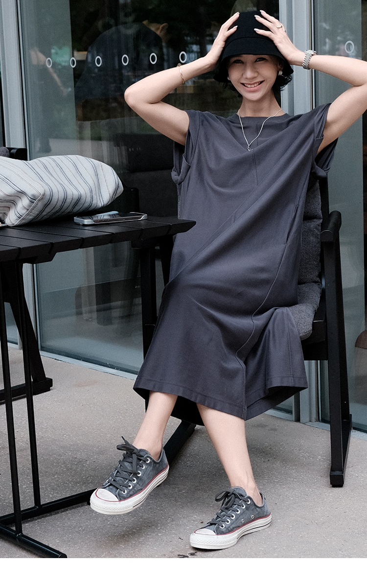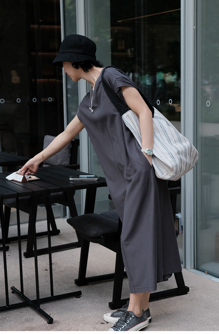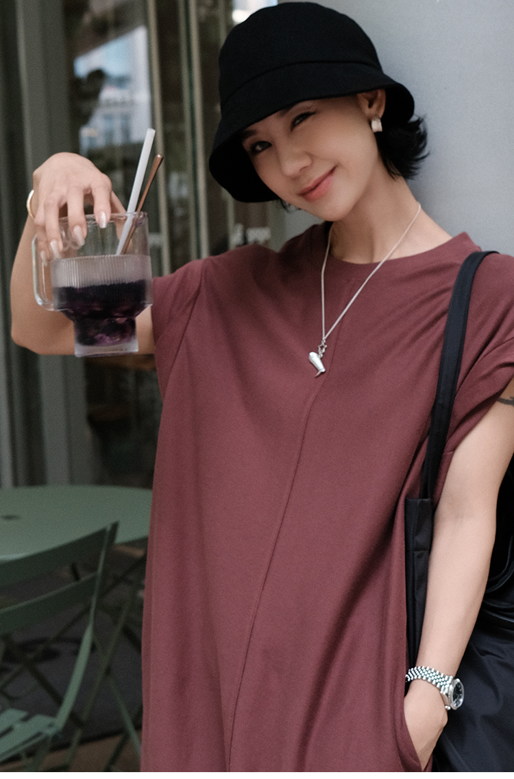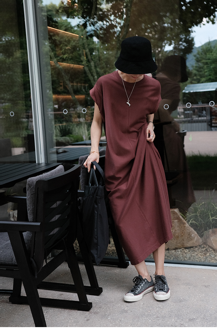 TT設計師【婉約】高級感氣質大碼T恤裙直筒連衣裙女長款2025新款