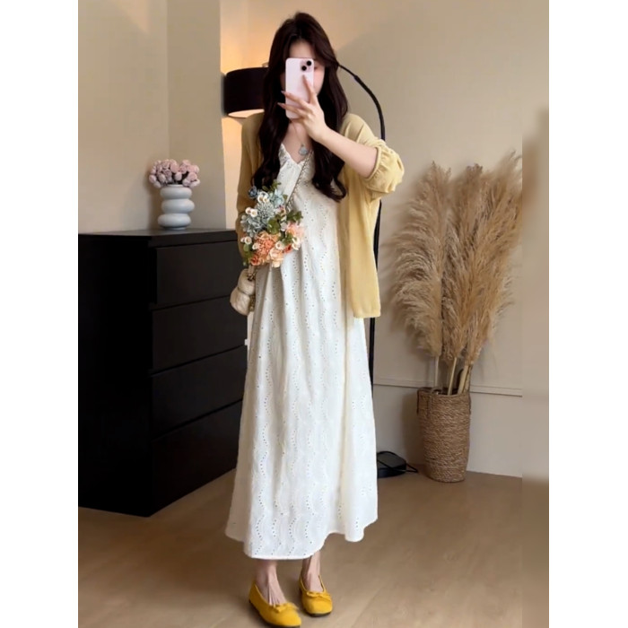 嬭黃色開衫【單件】【特別漂亮掐腰裙/小個子/夏季連衣裙/氣質/海邊度假/高級感/新款/法式/夏日漂亮小裙子】