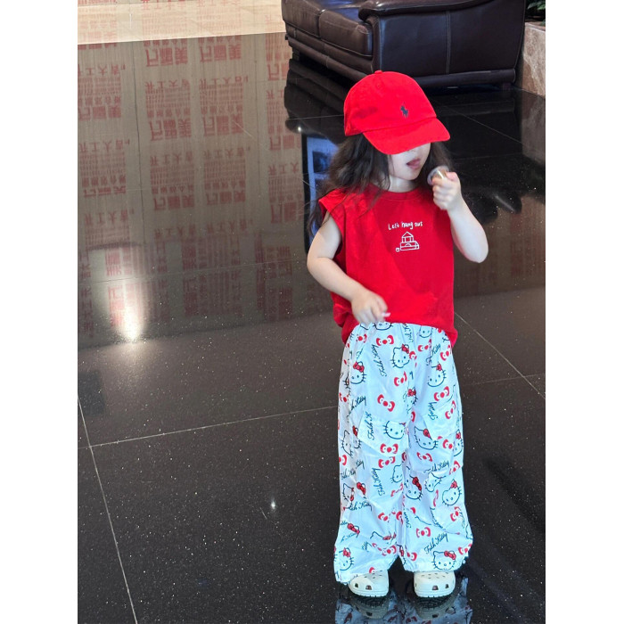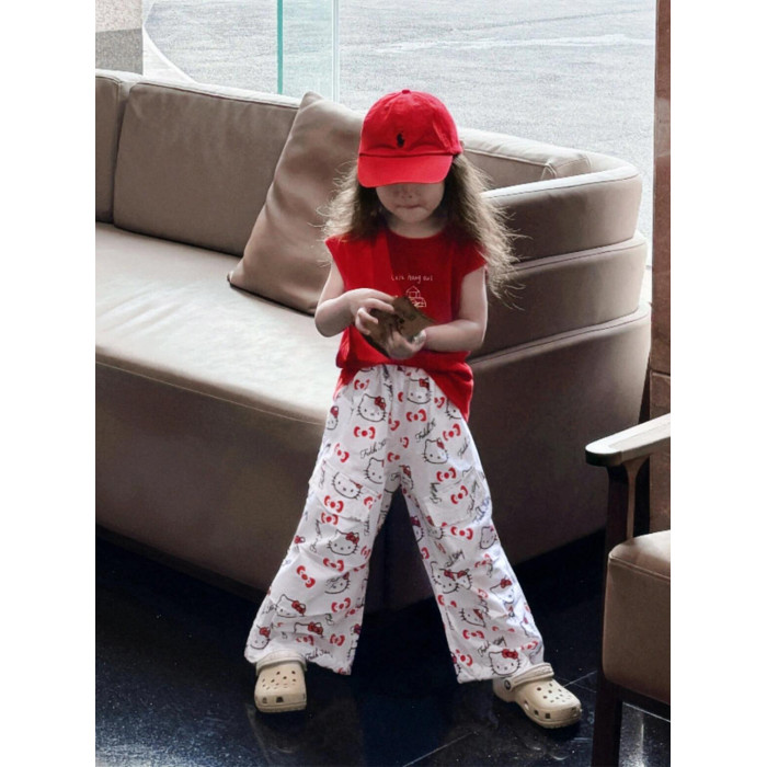 helloKitty女童2025新款褲子夏薄款潮酷工裝褲兒童休閒防蚊褲