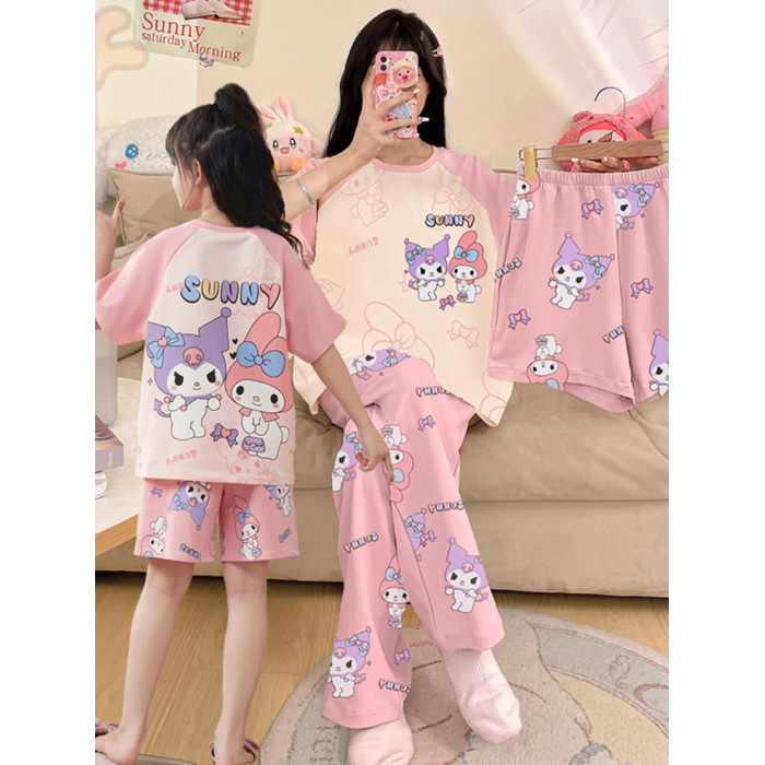 親子裝睡衣母女夏季2025新款純棉短袖薄款女童大童兒童家居服套裝